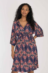 - Ideal printed midi jersey dress - Blue-Pink(222)