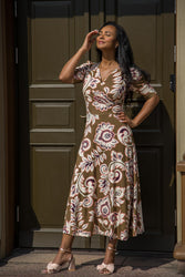 - Puff sleeve short wrap jersey dress - Pink flowers(52)