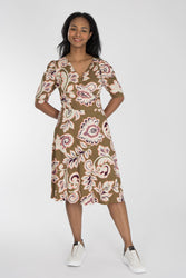 - Closed wrap midi jersey dress - Blue-Pink(102)