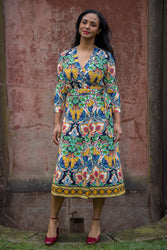 - Closed wrap midi jersey dress - Blue-Pink(102)