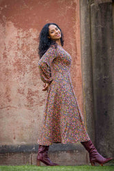 - Pleated waist midi jersey dress - Navy flowers(26)