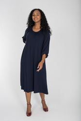 - A-lined belted midi jersey dress - Navy(34)