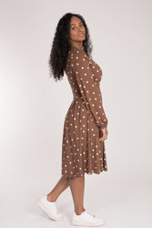 Längder på klänningar kommer och går medan knälångt alltid består. Det är den perfekta längden att bära på jobbet, styla om och klä upp till festen. Den är stilsäker och alltid rätt. Pure females knälånga klänningar kommer i olika modeller, med ett uppiggande mönster eller som enfärgad. De finns i stretchig trikå eller i en vävd kvalitet. Oftast i viskos då det är ett material vi gillar bäst.
