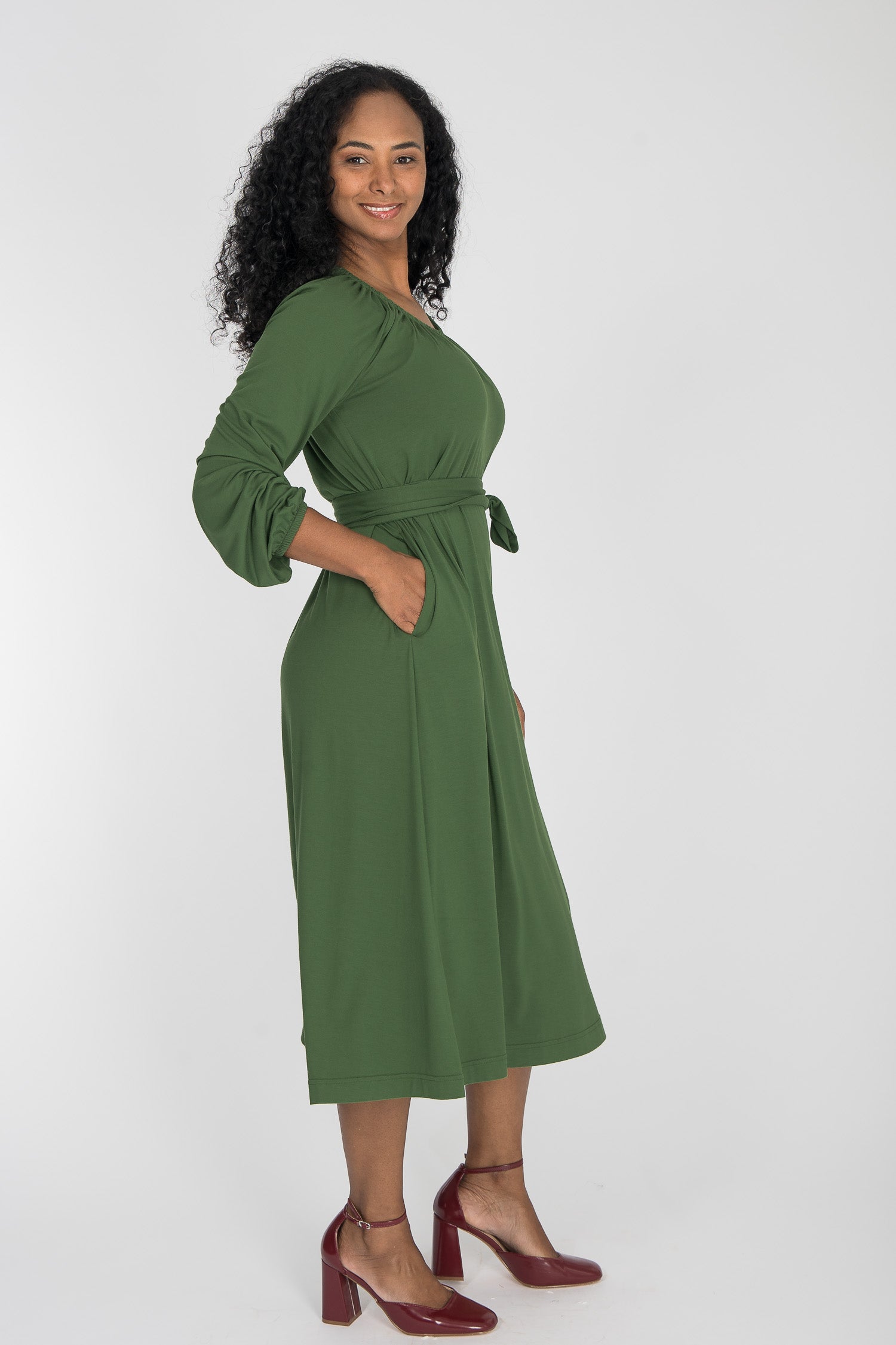 Tyget är i färgen mossgrön – en dov, naturlig grön med mjuk, varm underton.
