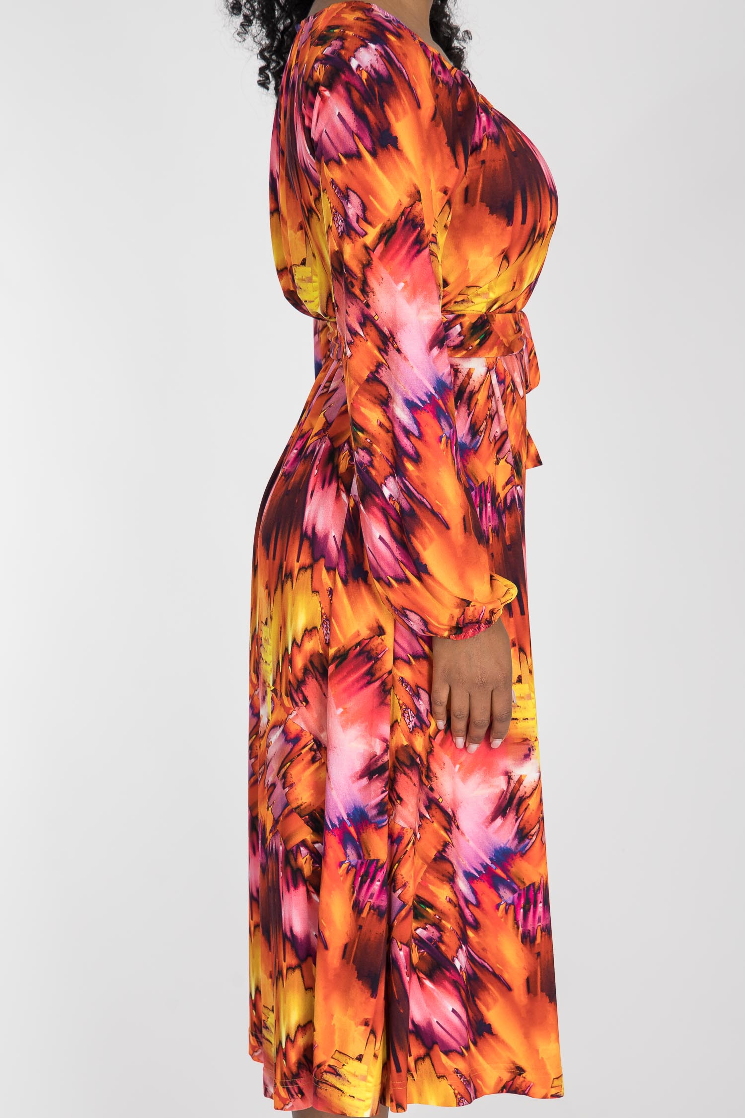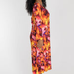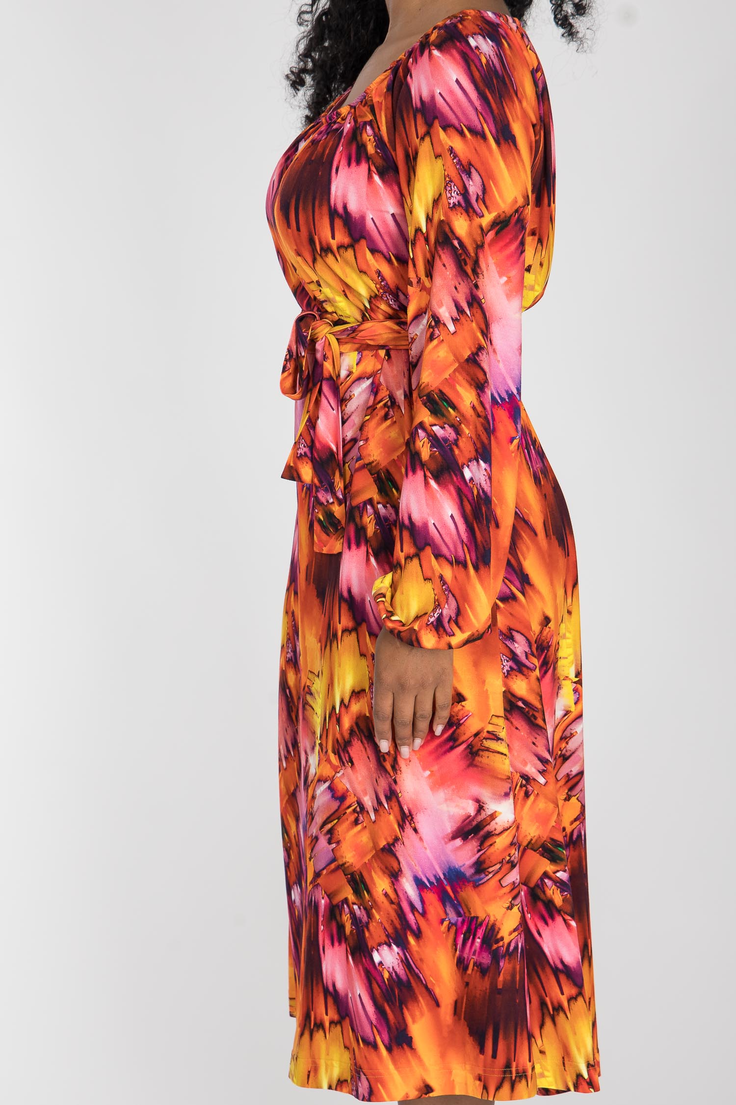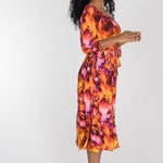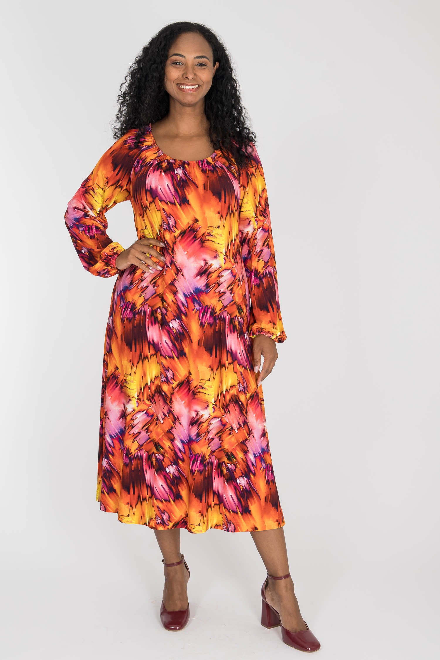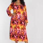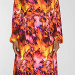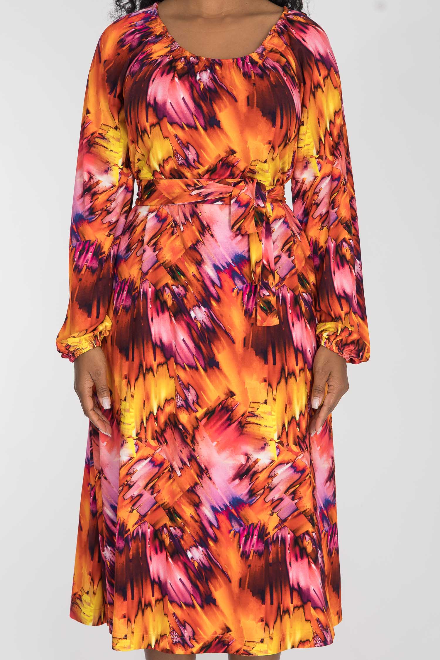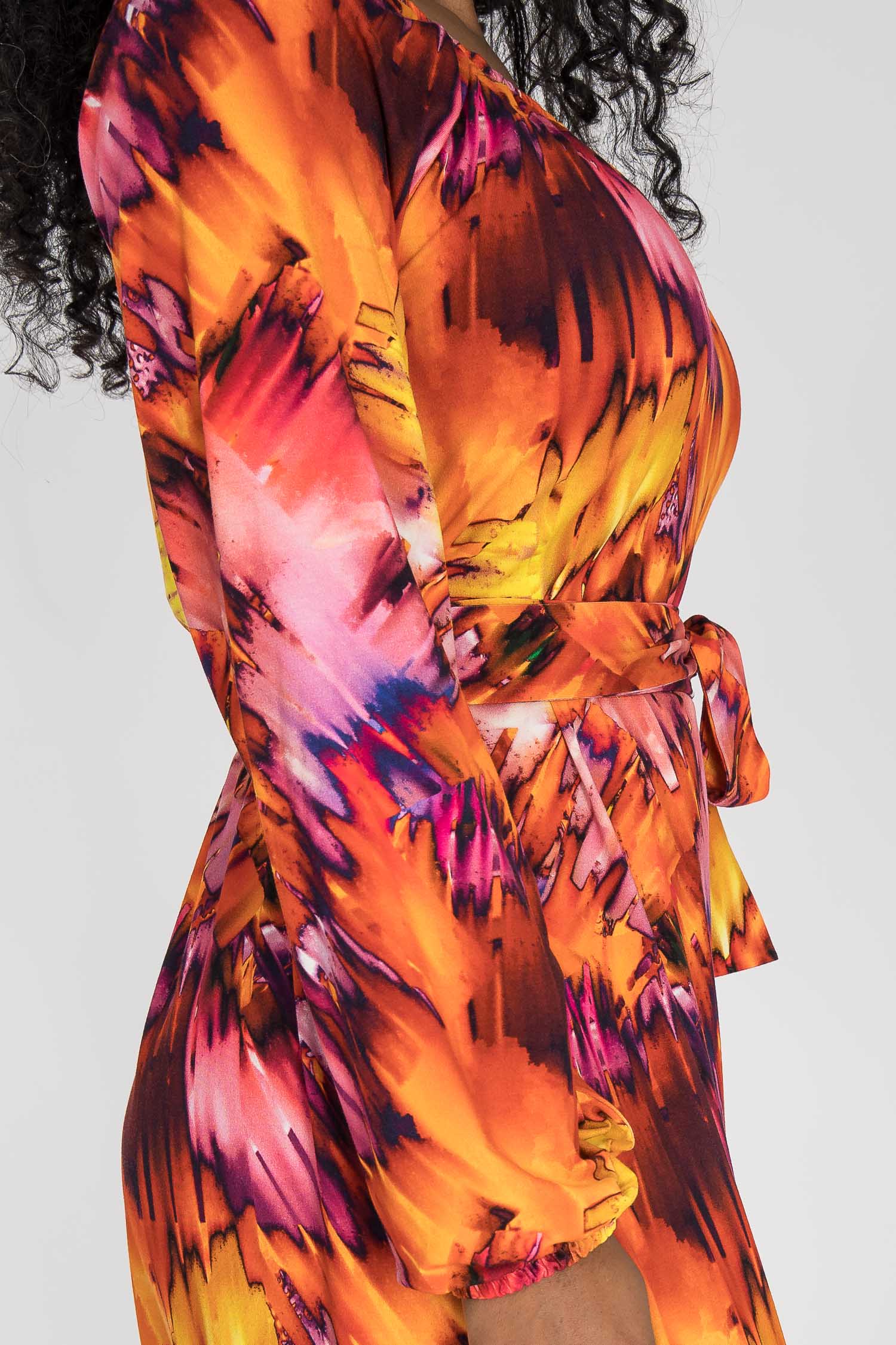 Mönstret bjuder på en varm mix av orange, rosa, lila och en hint av gult – färger som tillsammans ger en livfull känsla utan att ta över.