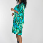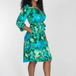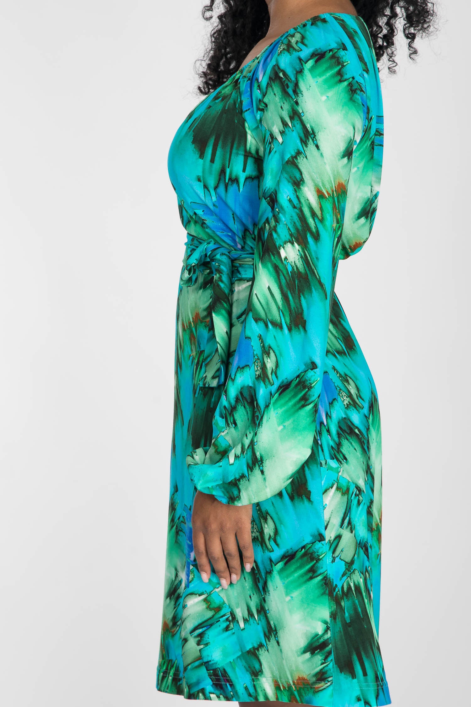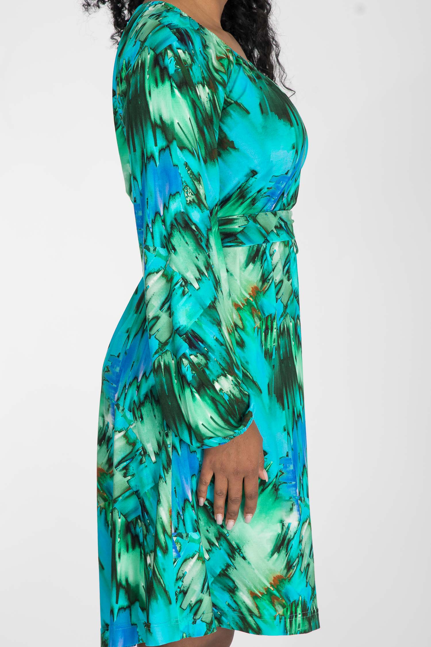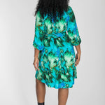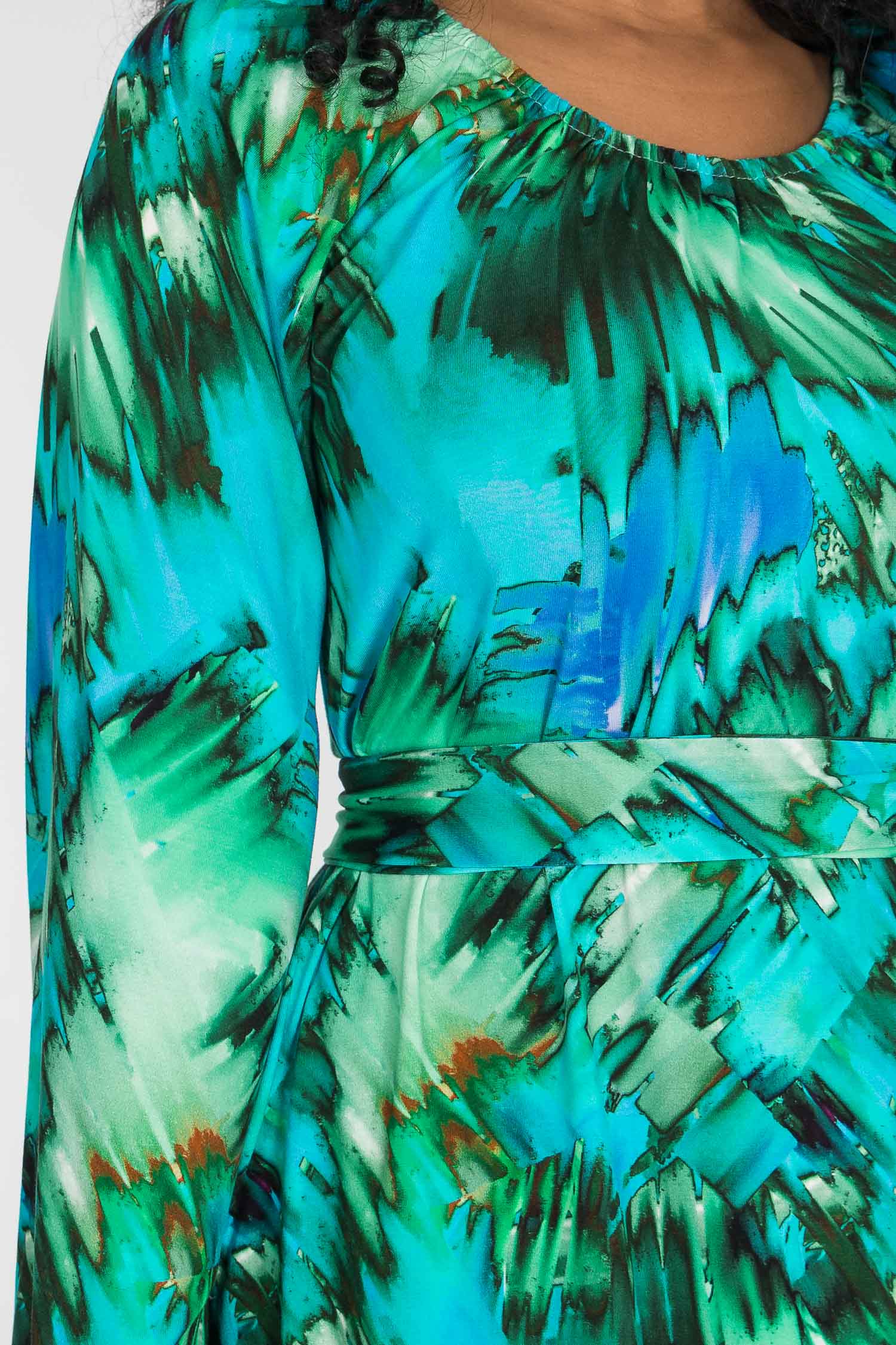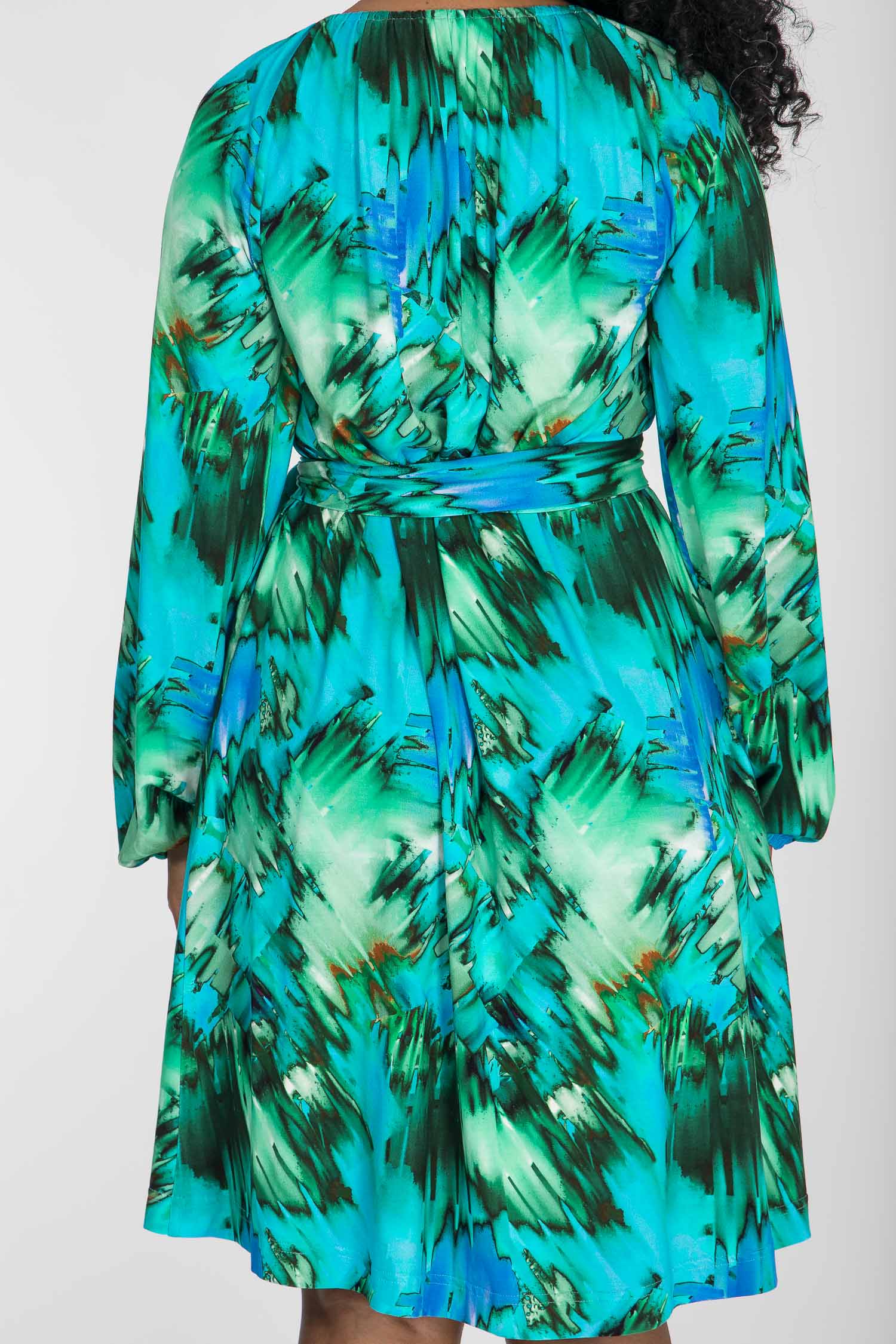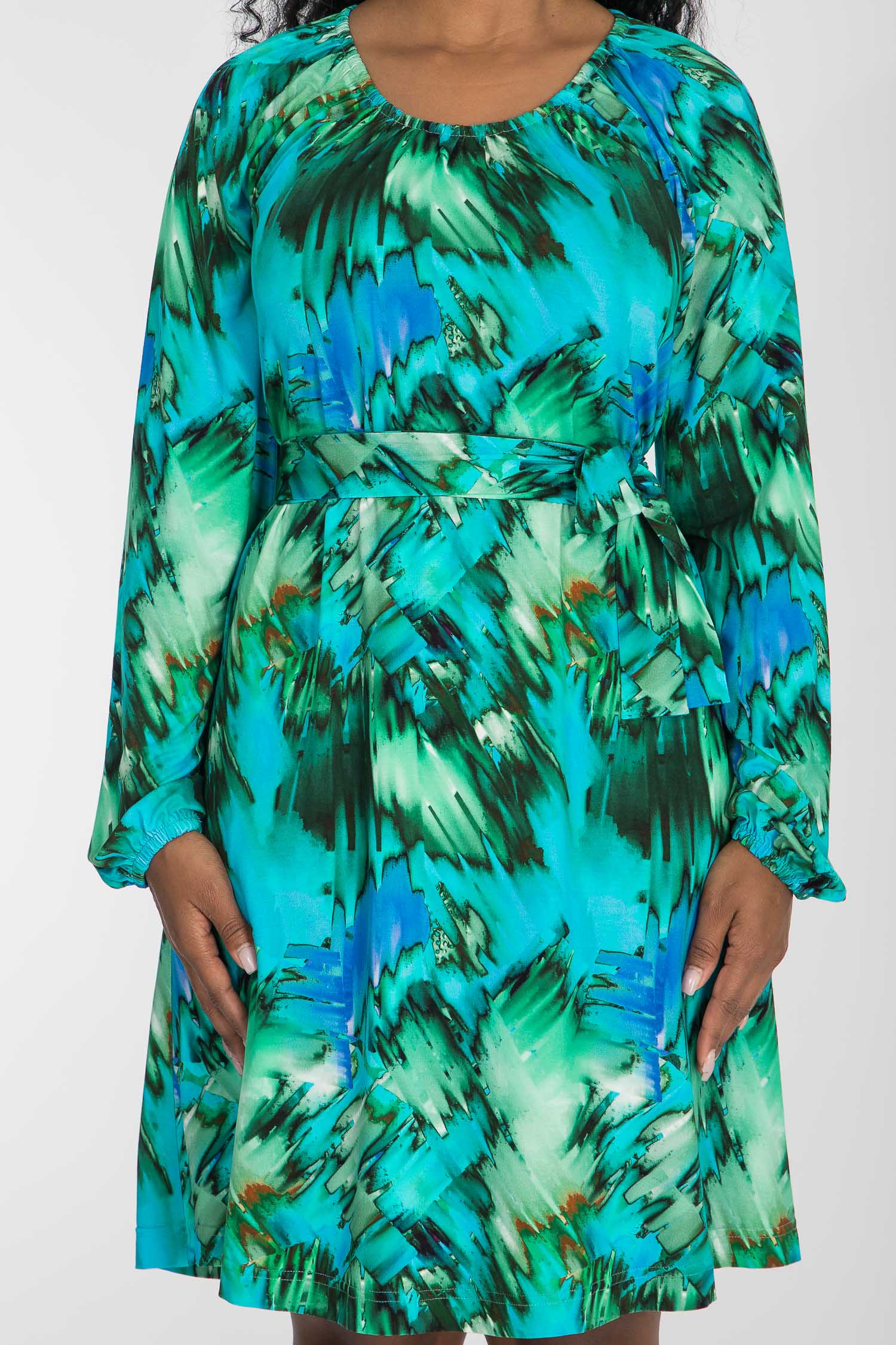 A-lined belted short jersey dress - Blue-green
