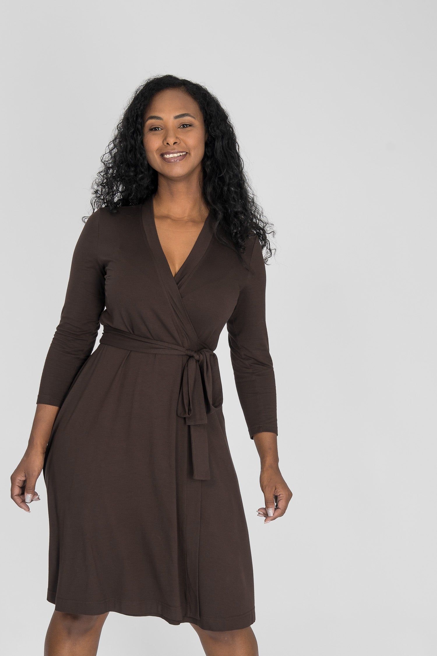 Bestie wrap short jersey dress - Chocolate brown