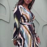 Puff Sleeve Wrap Dress i nytt mönster – en omlottklänning för dagar då du vill känna dig både bekväm och elegant. Modellen har en klassisk omlottskärning med mycket tyg som går omlott, vilket ger en perfekt passform och en ringning som sitter tryggt utan att behöva linne under. De långa ärmarna med lätt puff och rynk vid axeln ger klänningen ett mjukt, feminint uttryck, och det knytbara bandet i midjan låter dig justera silhuetten precis som du vill.