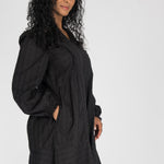 En stil med bohemisk elegans och feminin känsla – lika självklar med stövlar till vardags som med klackar till fest. Klänningen finns i två längder: en kortare knälång och en vadlång variant, så du kan välja den längd som känns rätt för dig.
