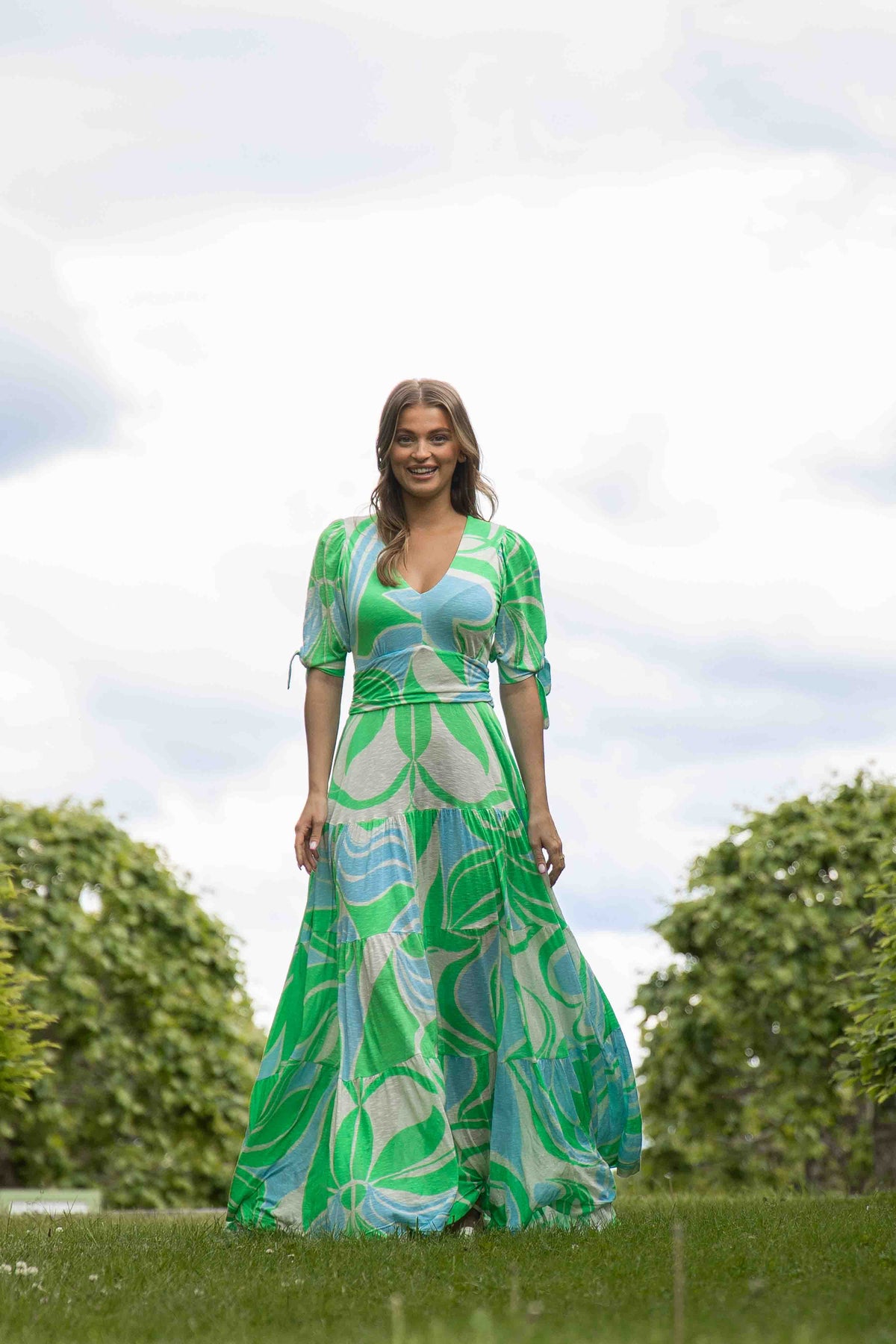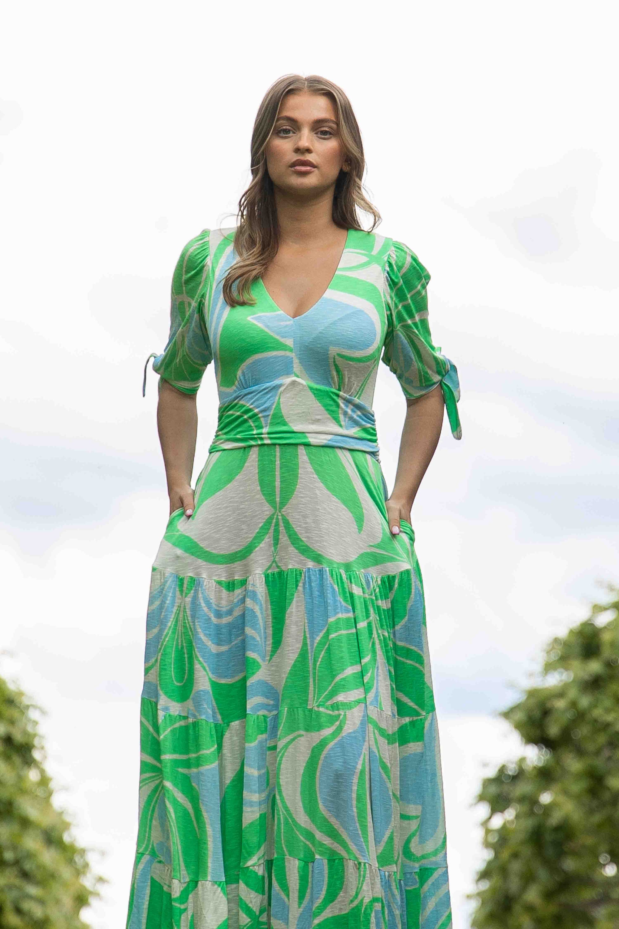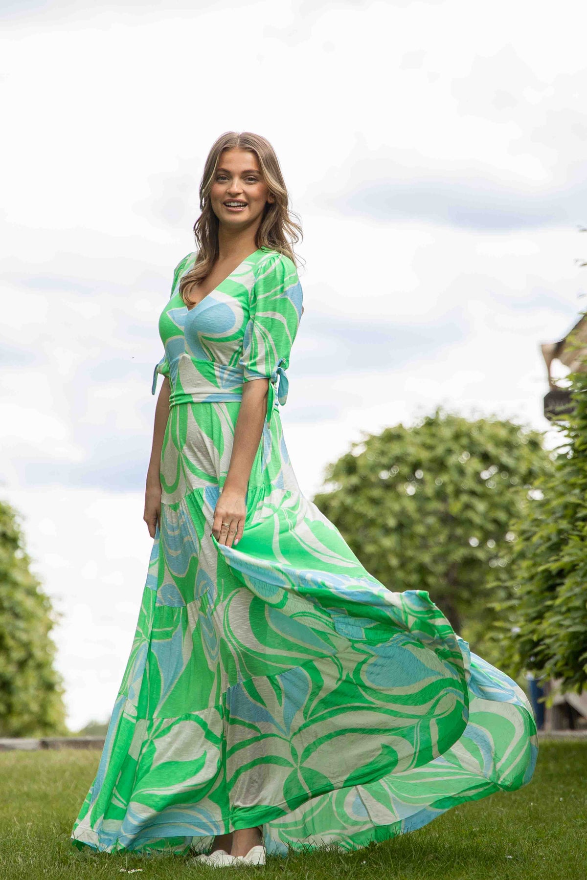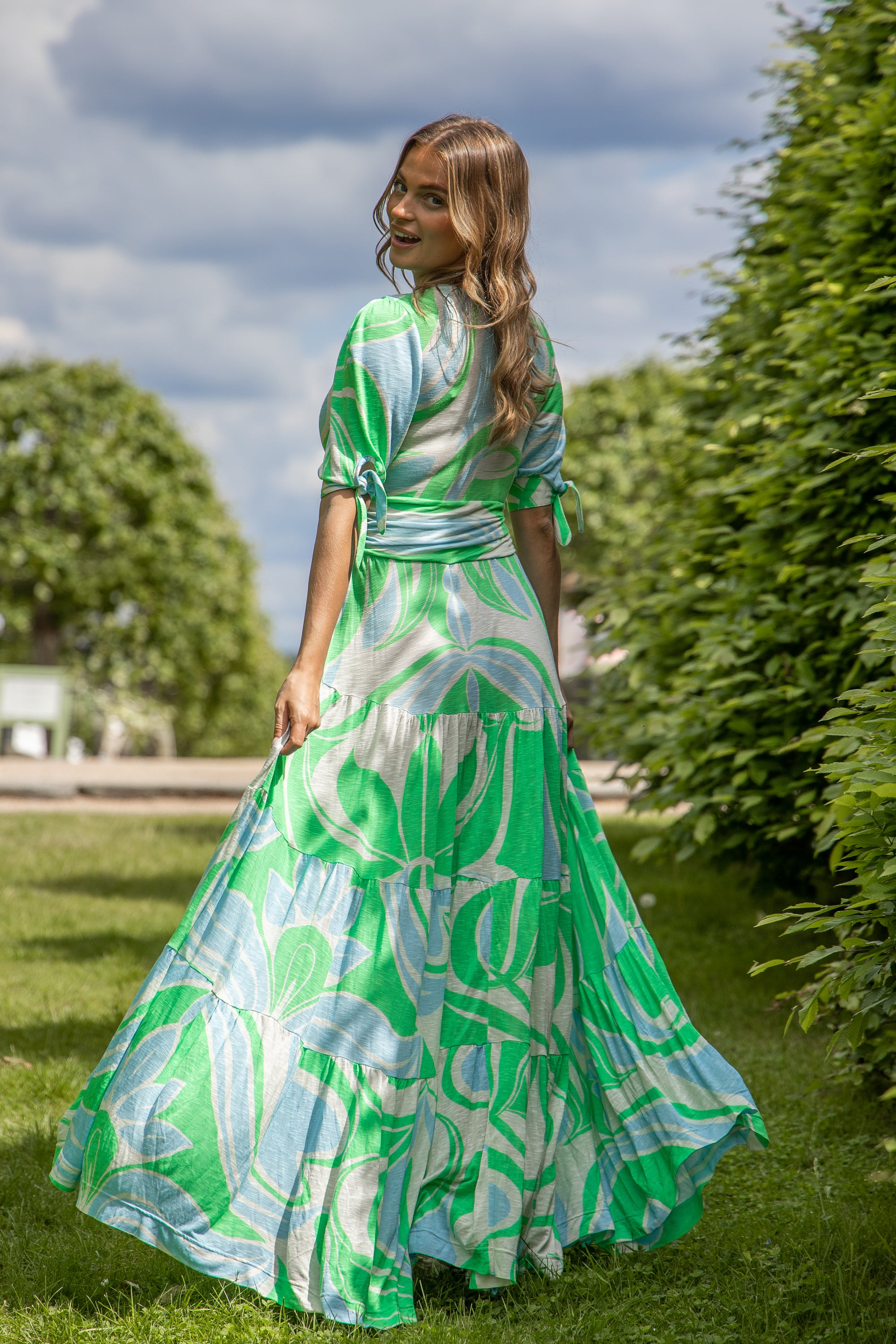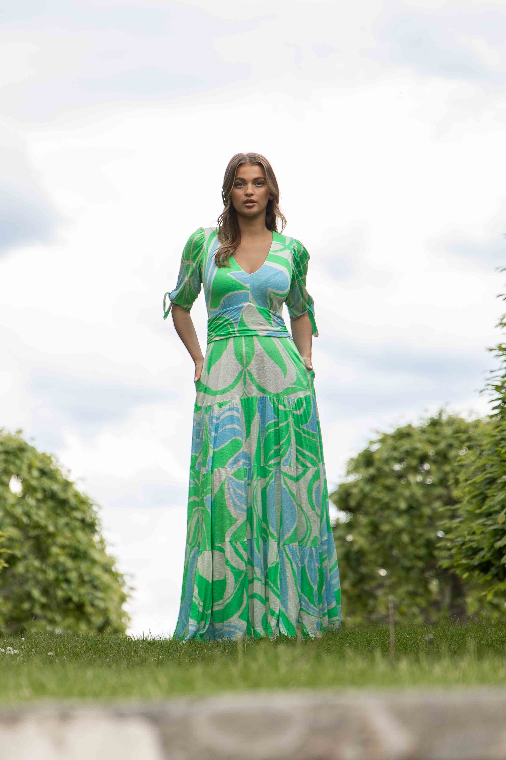 Vår Flowy maxi jersey dress är en sommardröm i form av en maxad maxiklänning. Tillverkad i mjuk viskostrikå med en vid kjol i våder, är denna klänning perfekt för dig som älskar bohemisk stil. Den kombinerar elegans och bekvämlighet på ett sofistikerat sätt. Med en figursydd överdel, puffiga ärmar och draperat midjeband skapas en balans mellan enkelhet och sofistikation. För extra bekvämlighet har klänningen sköna fickor i sidan.