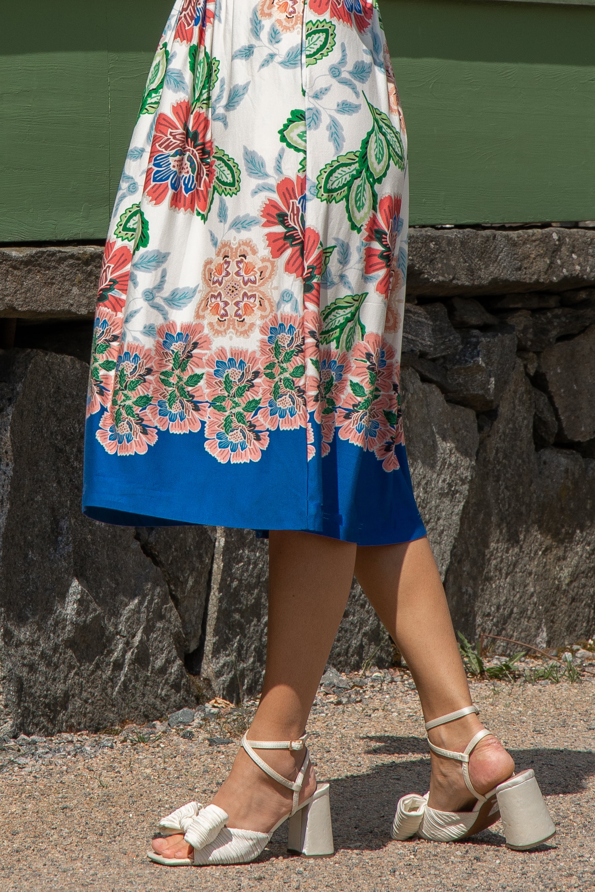 Klänningen är sydd i Bulgarien på en mindre fabrik med lång erfarenhet och mycket kunskap. Som alltid är klänningen designad hos oss i Borås.