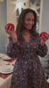 Klänningen har ett format midjeband fram som ger en smickrande silhuett, medan den elastiska smocken baktill gör den följsam och bekväm. Långa puffärmar med resår i ärmsluten skapar en mjuk volym och gör att ärmarna kan bäras både långa och uppdragna. Praktiska fickor i sidorna adderar ytterligare en detalj.