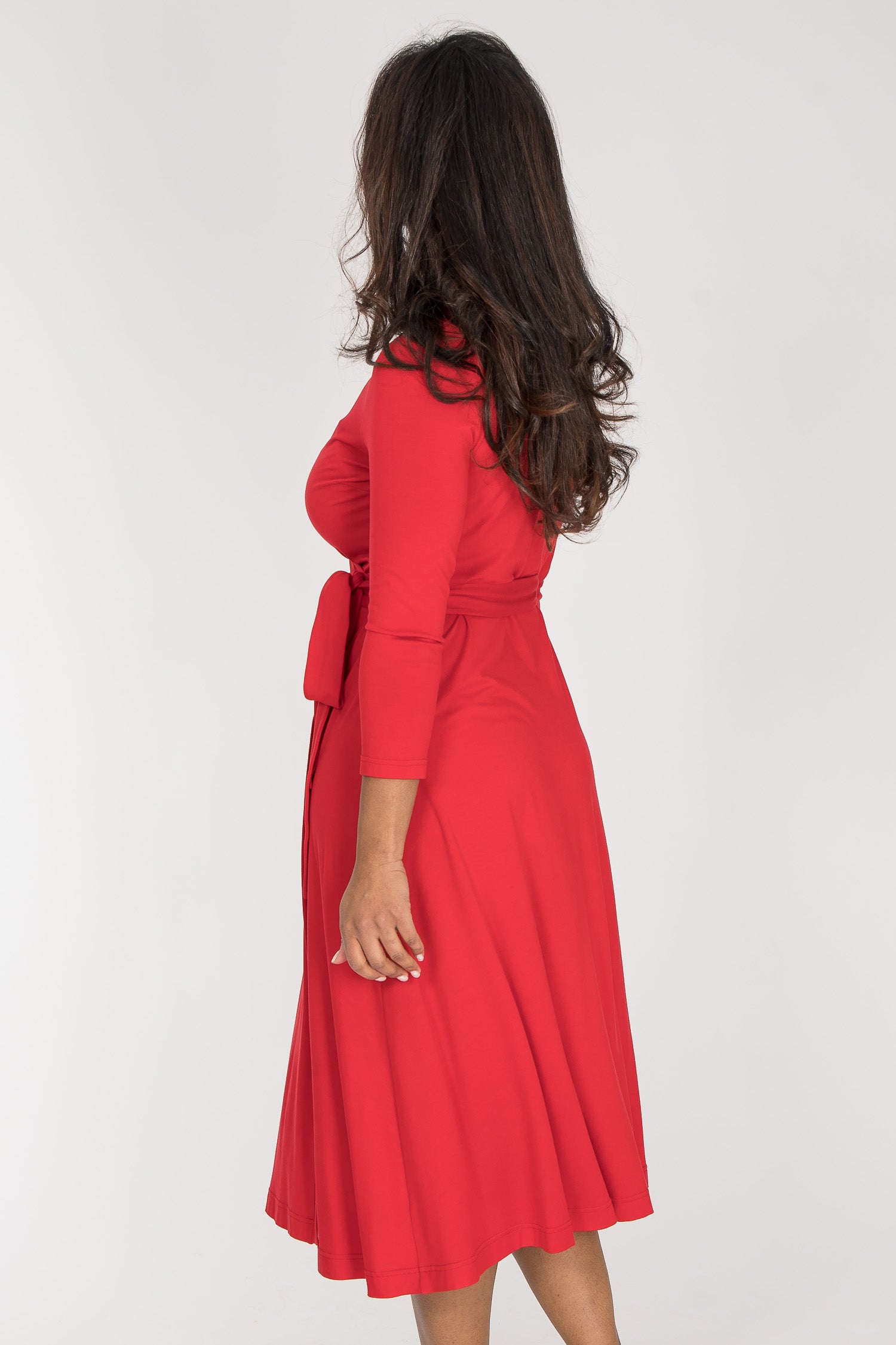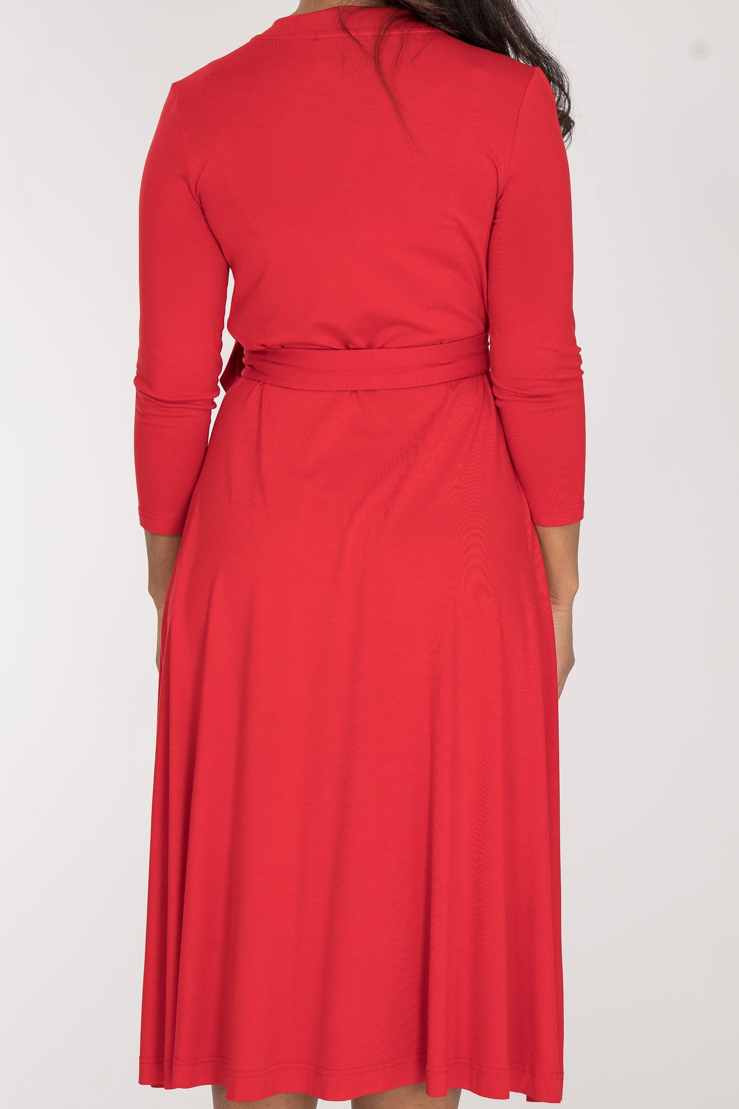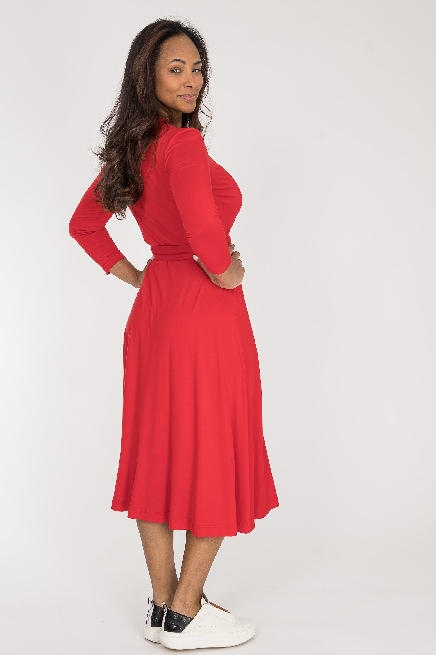 En klänning i True Red är enkel att styla med svart, marinblått eller krispigt vitt för ett modernt intryck. Vill du mjuka upp den fungerar även kall beige eller stengrått. Silvriga accessoarer förstärker det neutrala och klara uttrycket.