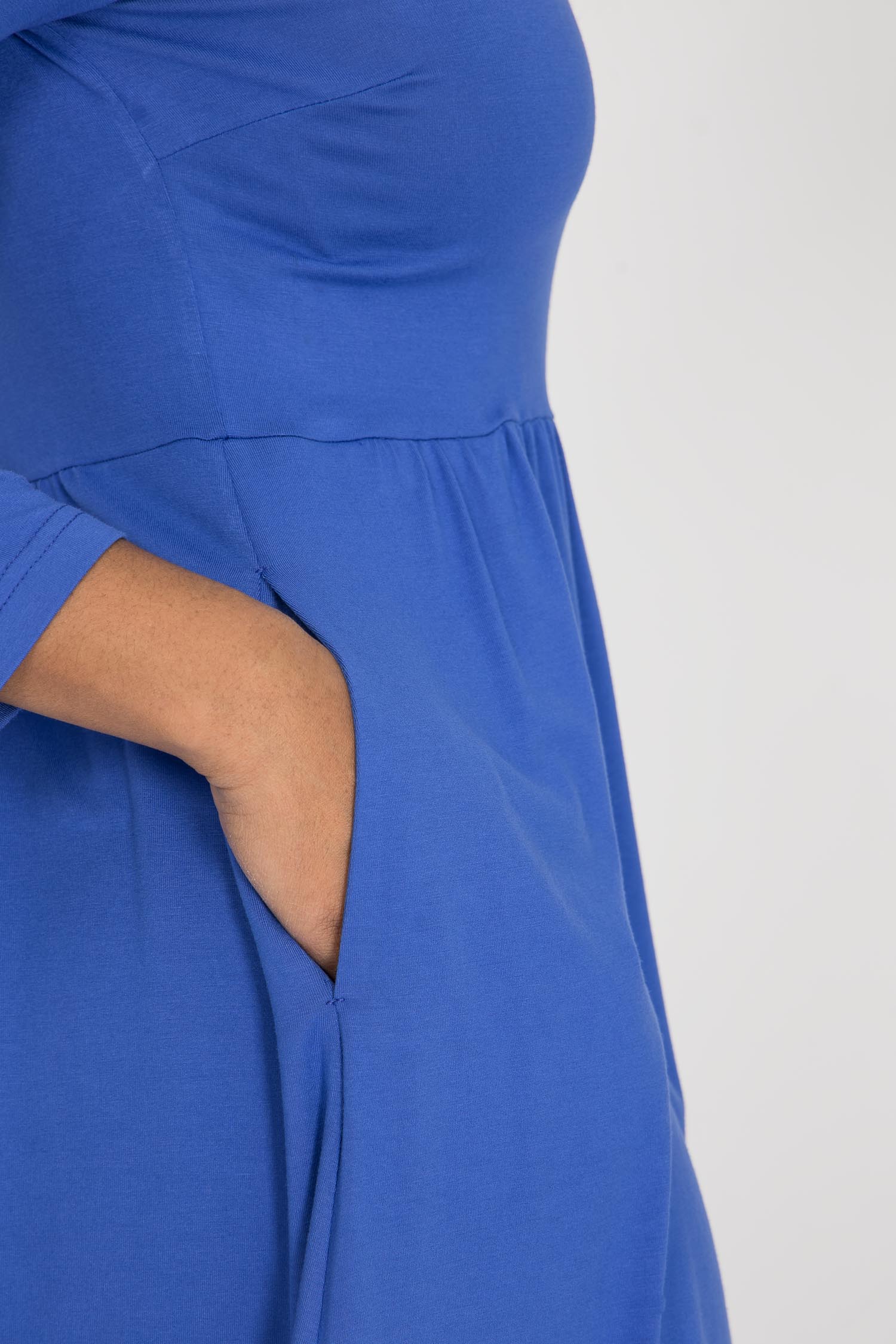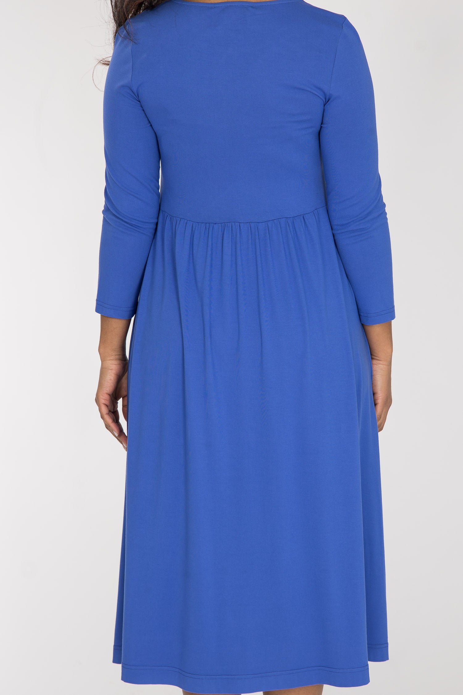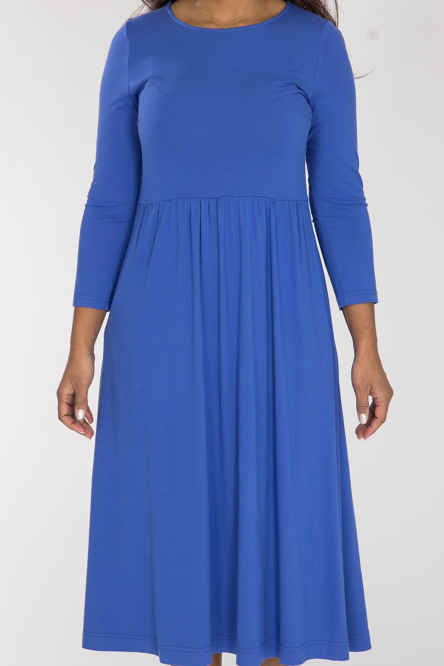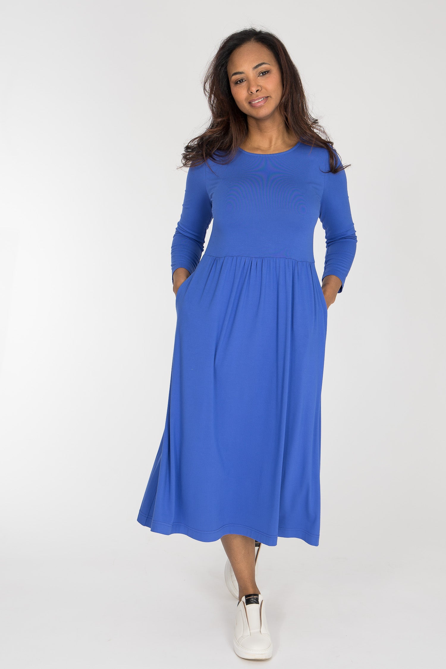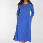 Klarblå, vadlång klänning i trikå