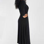 Klänningen är sydd i mjuk, stretchig trikå av högkvalitativ Vortex-viskos och elastan. Tyget har ett tungt fall, är lättskött, skrynklar mindre och är nästan pillingfritt, vilket gör att det håller sig fint över tid.