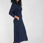 Marinblå, vadlång klänning i trikå