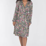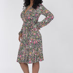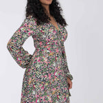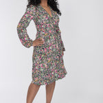 Puff sleeve midi wrap jersey dress - Pink flowers