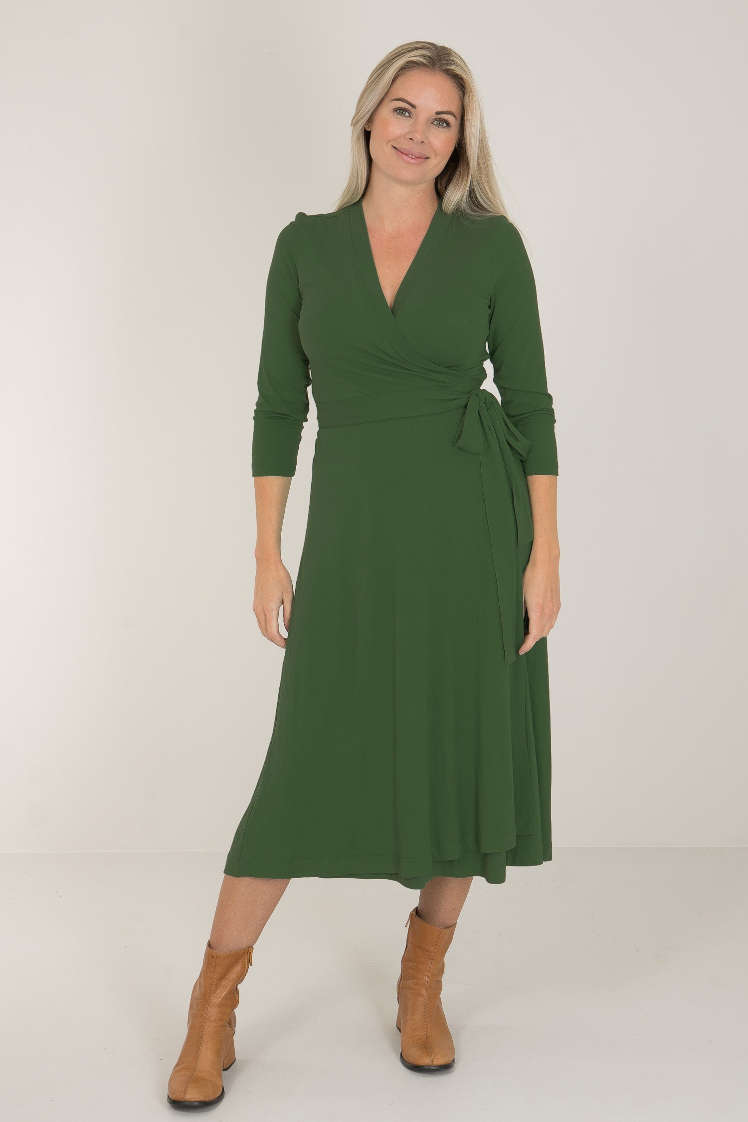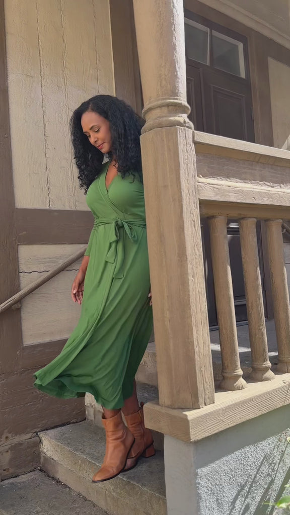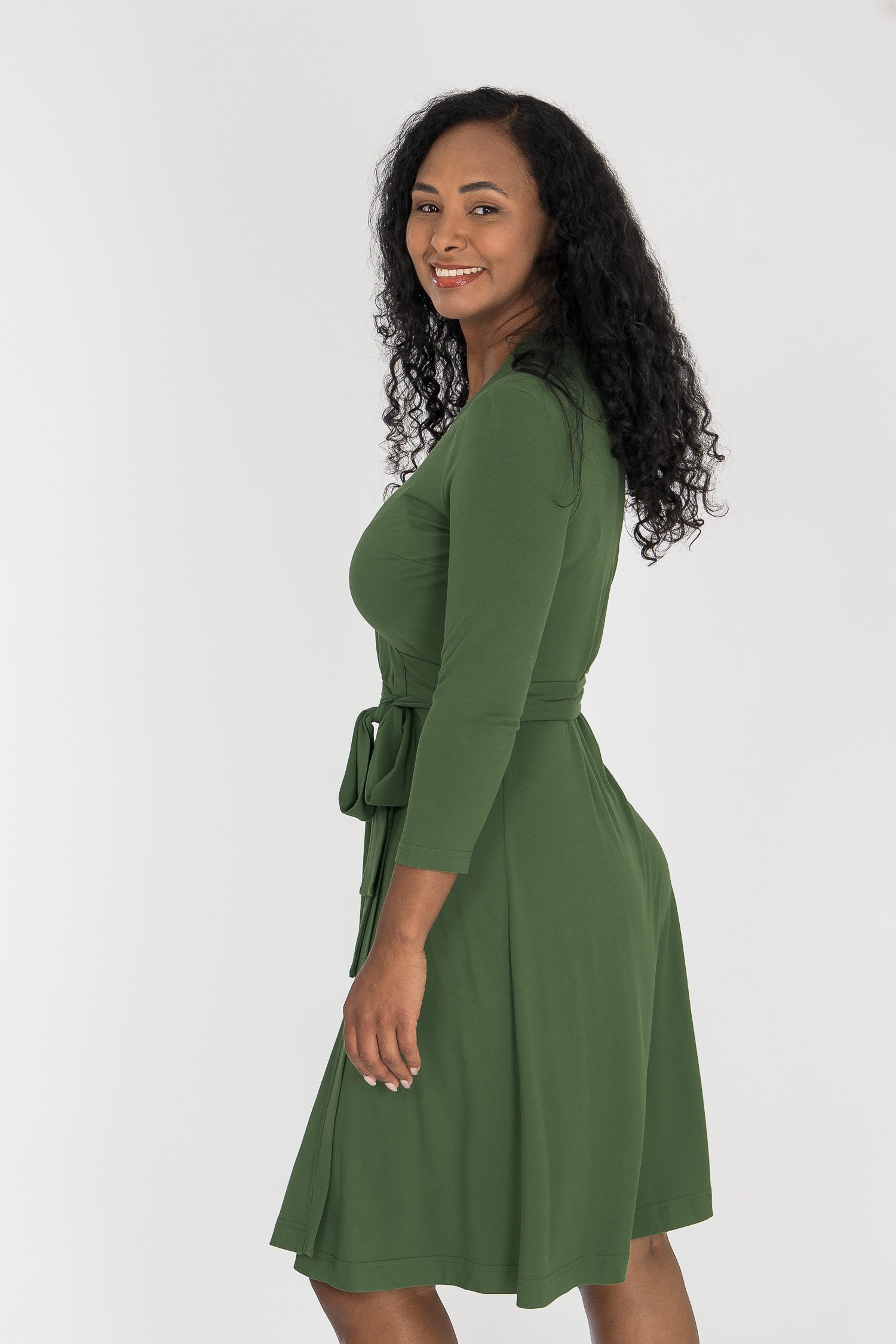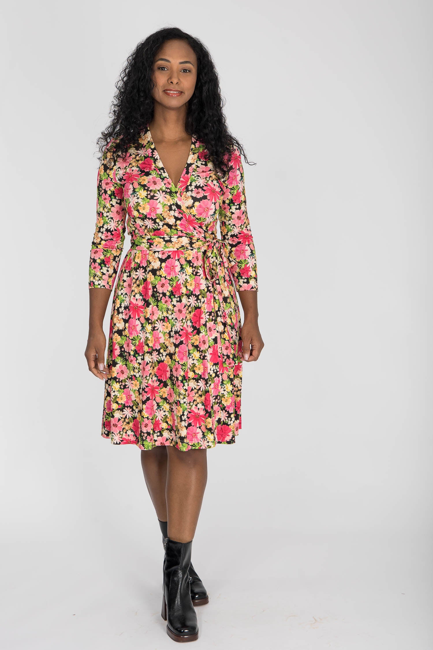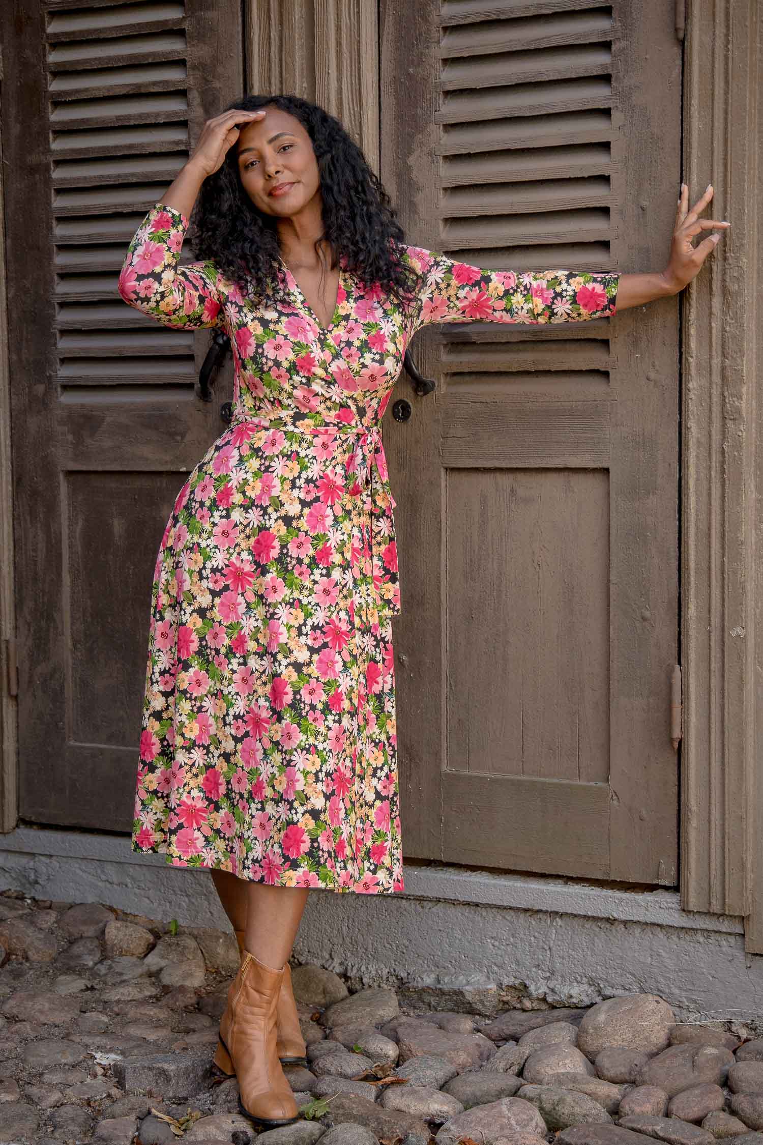 Genom åren har vår kärlek till omlottklänningar inspirerat oss att ta fram olika modeller av omlottklänningar med perfekt passform. Passion och lång erfarenhet har gett oss en stark kompetens och dessutom förstår vi hur viktigt det är att en omlottklänning sitter perfekt. Att säkerställa att våra klänningar har rätt passform är alltid av högsta prioritet för oss. Vi har lyssnat på de utmaningar som många har upplevt, såsom att klänningen kan glida isär eller inte erbjuda tillräcklig täckning. Vår målsättning har varit att lösa dessa problem och erbjuda klänningar som omsluter halsen och axlarna på ett säkert och elegant sätt. Vi snålar inte på tyget över bysten och i kjolen för att säkerställa att omlottklänningen håller sig på plats precis där den ska.