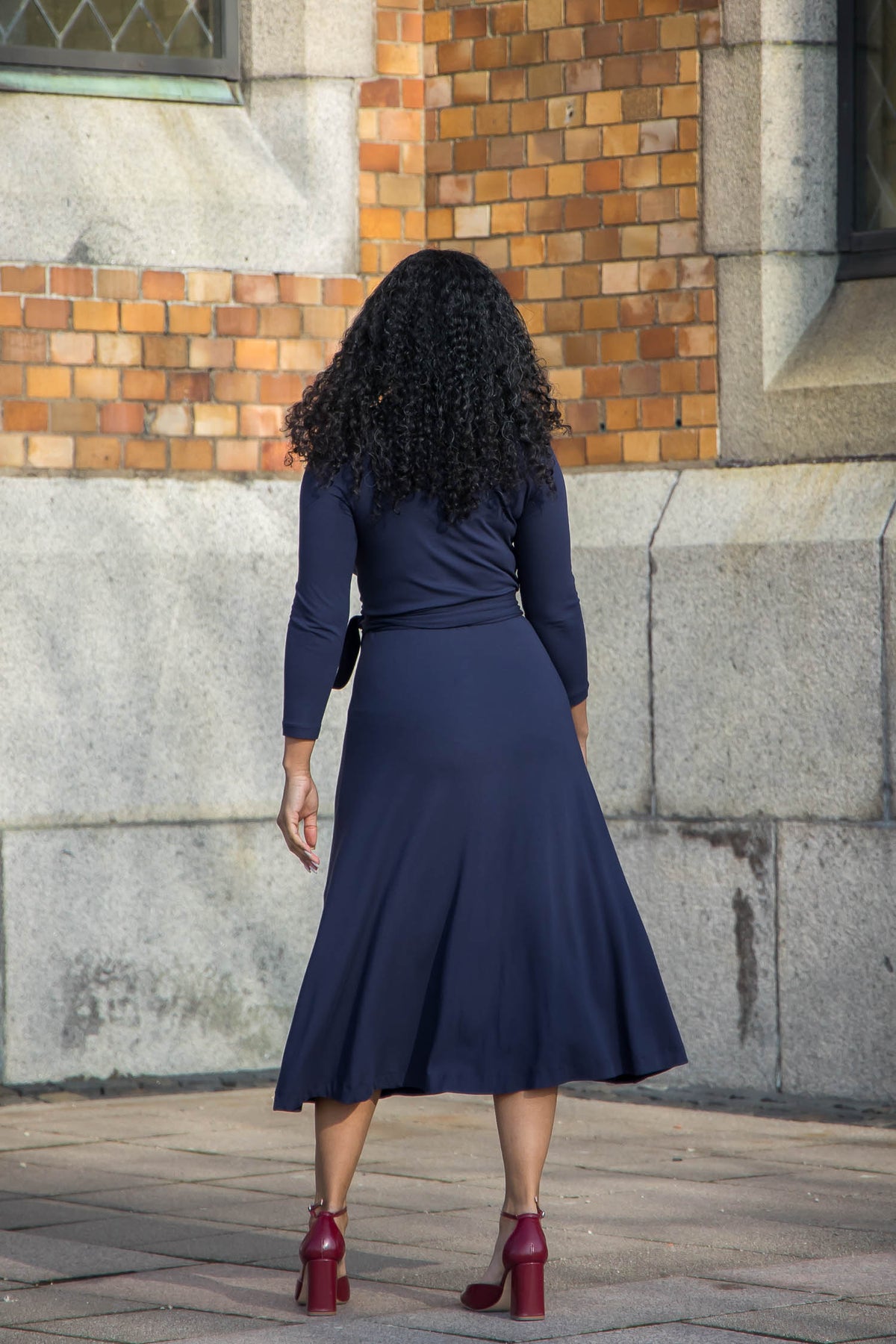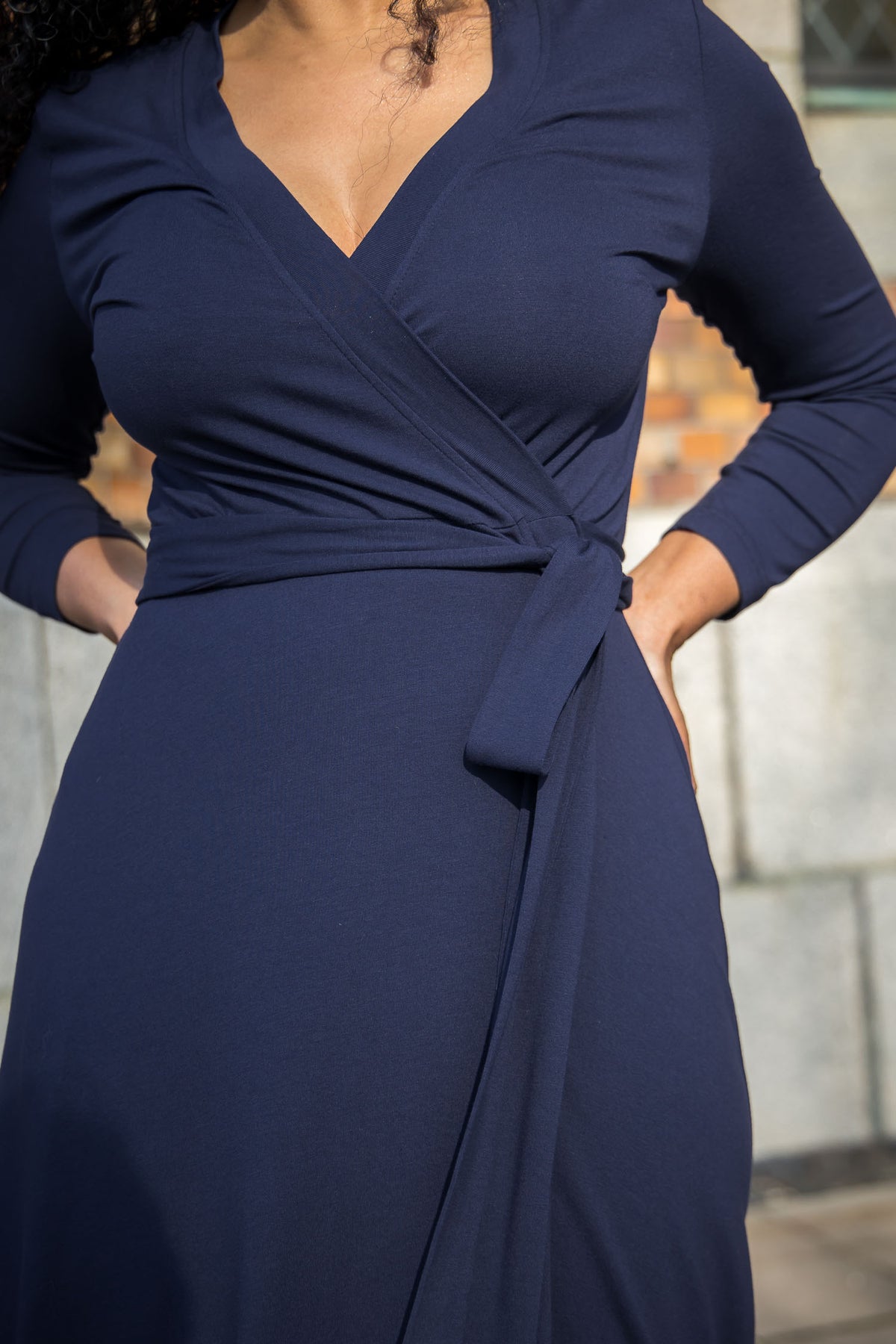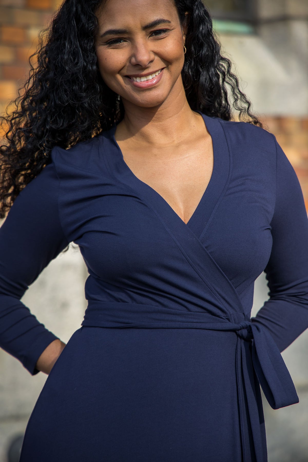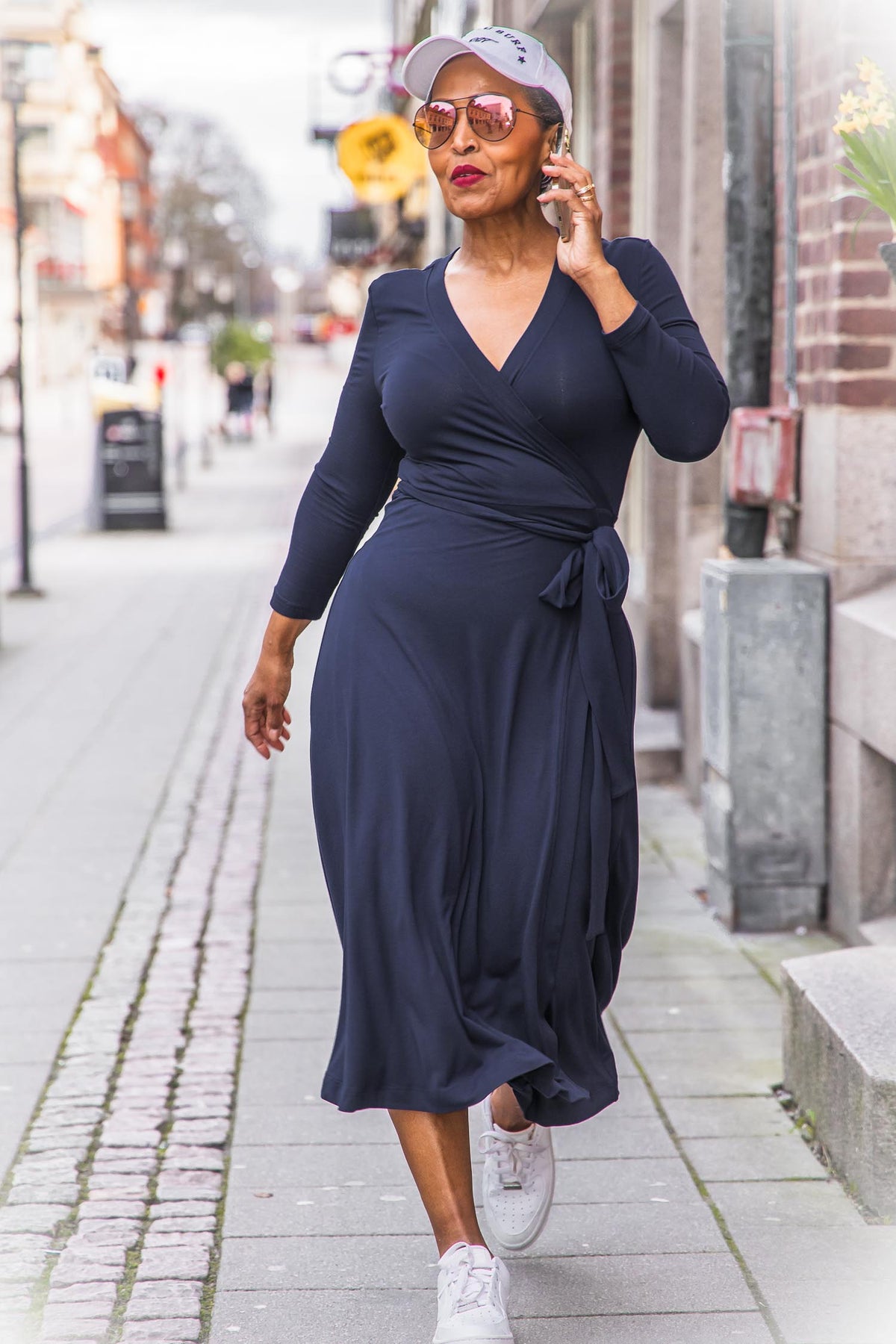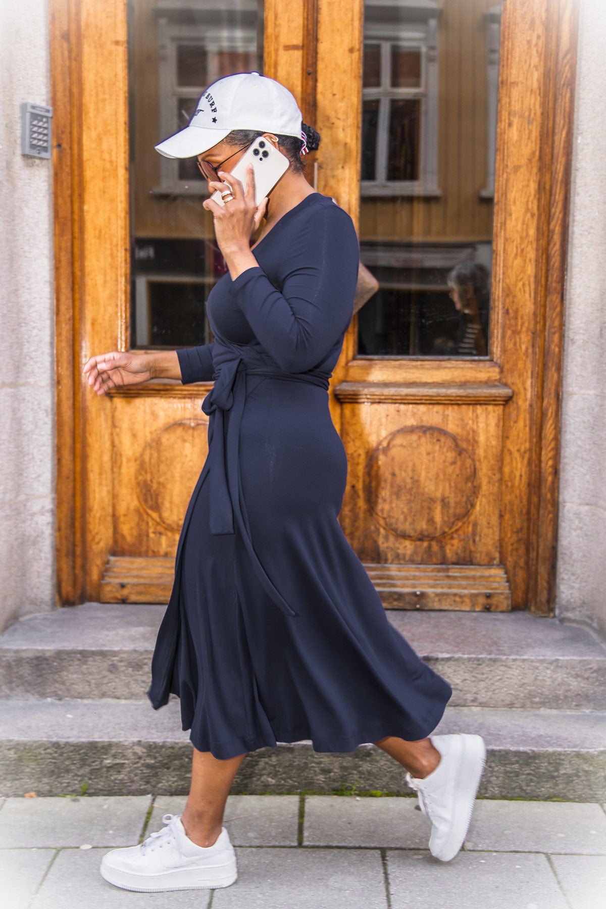 Omlottklänningar i trikå är verkligen kurvornas bästa vän! De faller fint, sitter åt på de rätta ställena och går att knyta utefter eget tycke och smak. Här är en vadlång modell sydd i mjuk trikå med knyt i midjan och vidd i kjolen. Bestie wrap dress återkommer i vår kollektion och är en av våra mest omtyckta klänningar.
