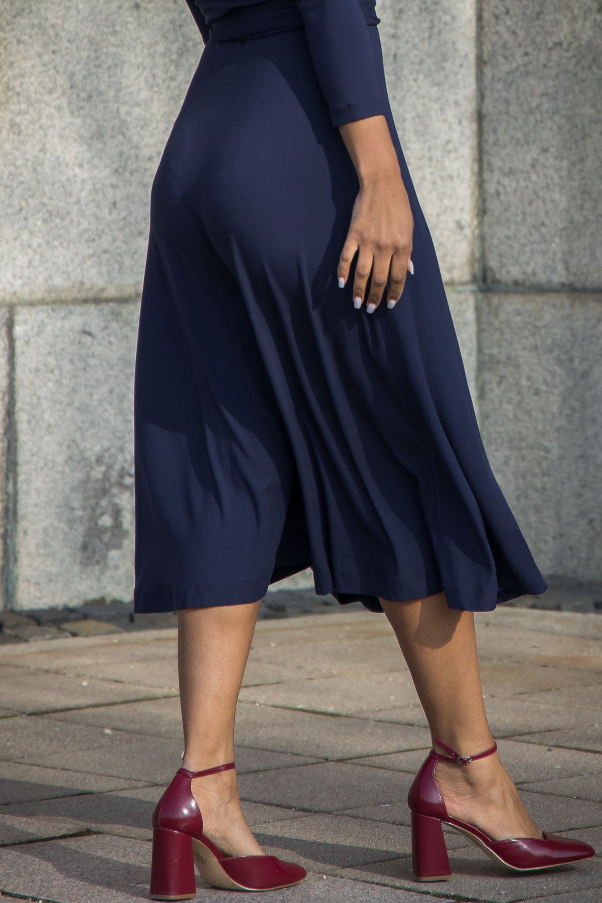 • Vadlång kjol som är rundskuren vilket ger härlig vidd nertill runtom kjolen.