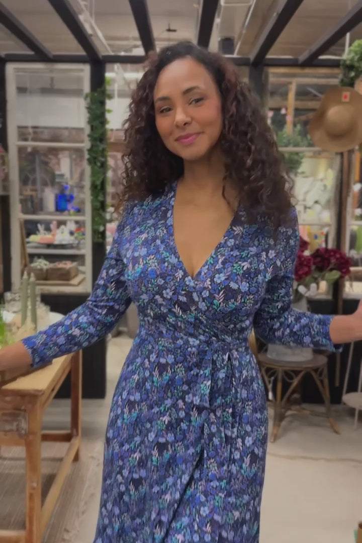 Bestie midi wrap jersey dress - Blue flowers