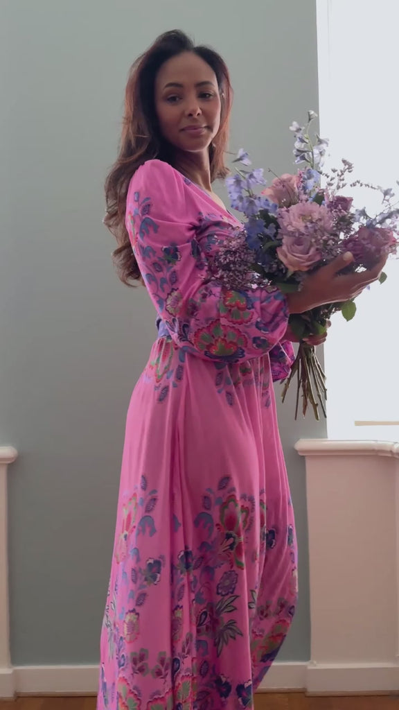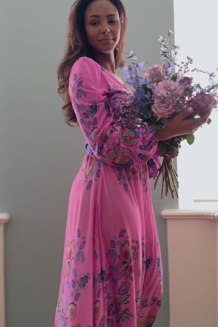 Loose fit midi wrap jersey dress - Pink