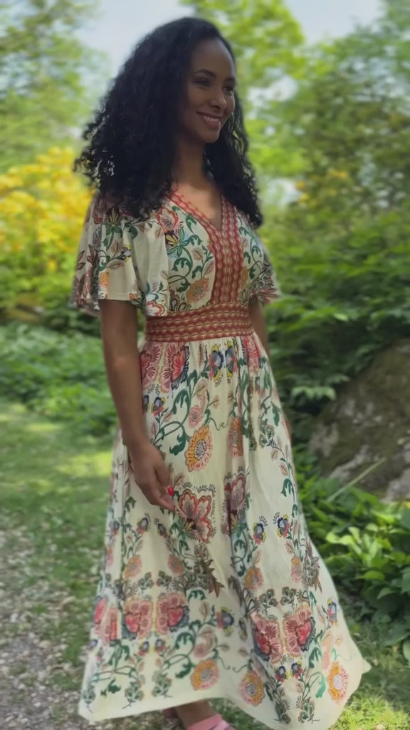 Flounce dobby midi dress - Red Flower