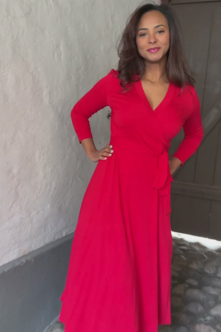 Bestie midi wrap jersey dress - True Red