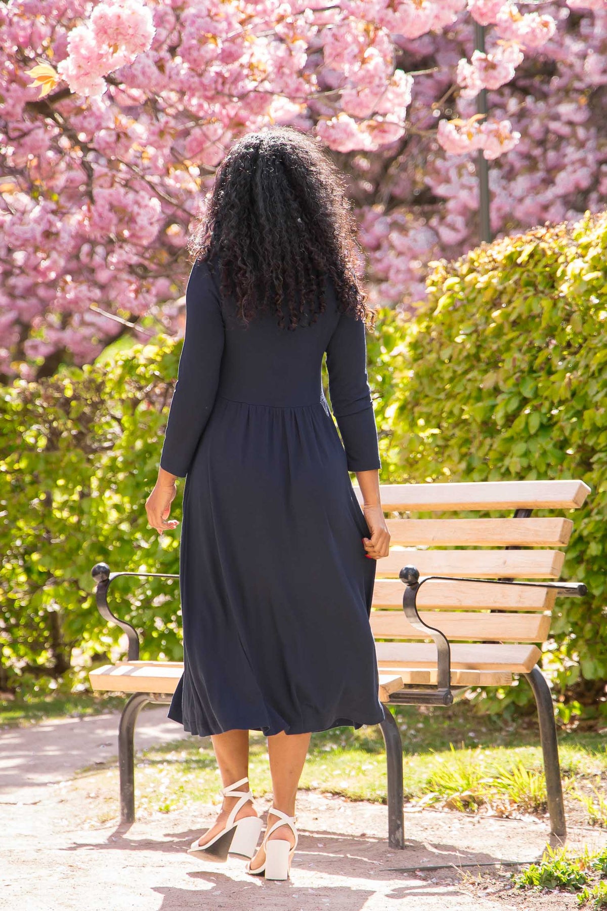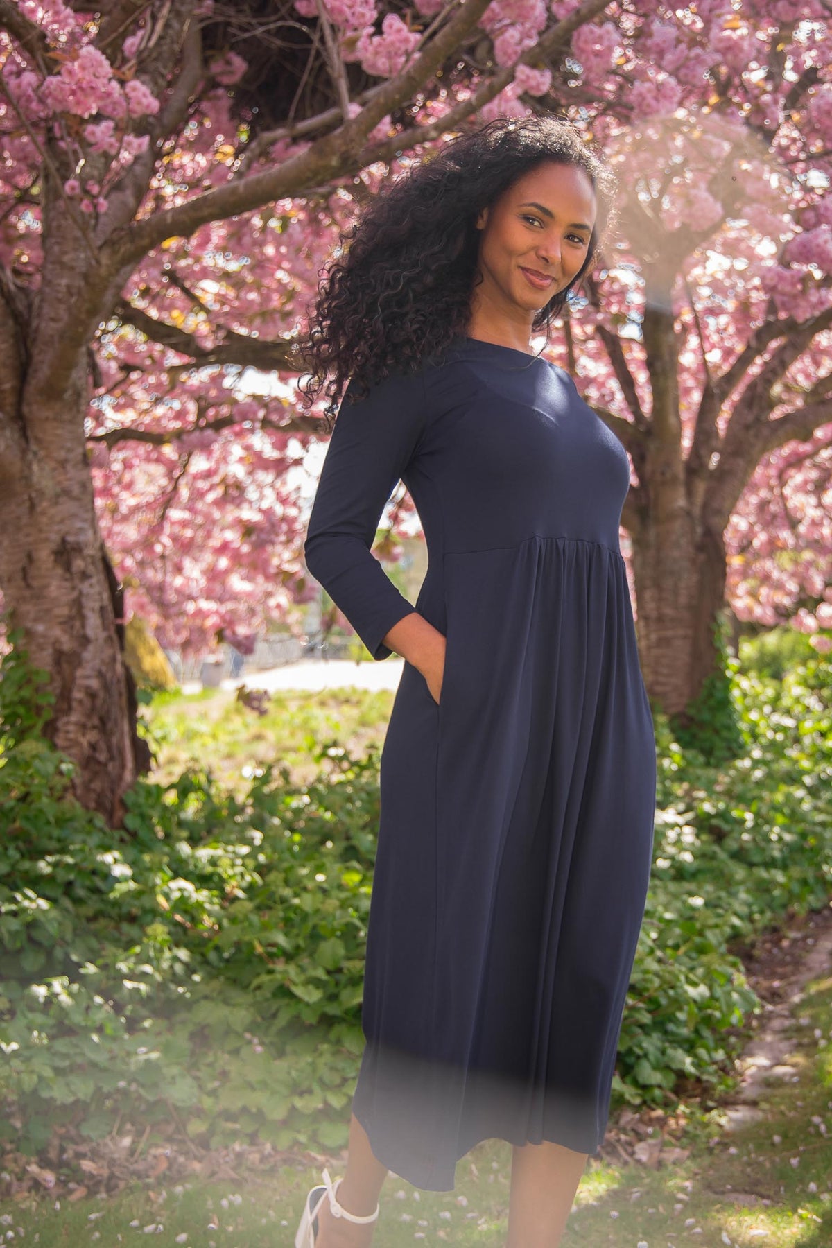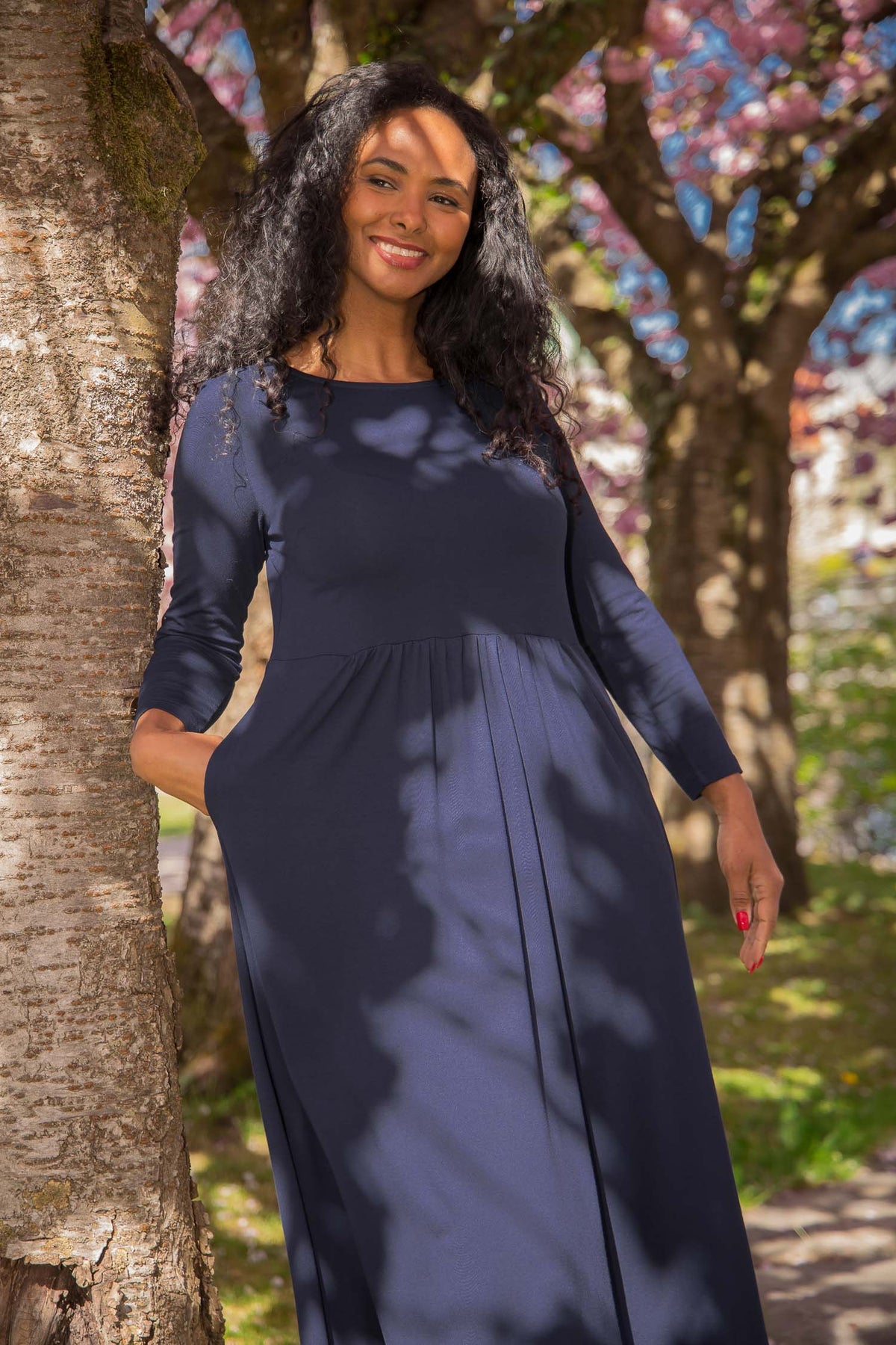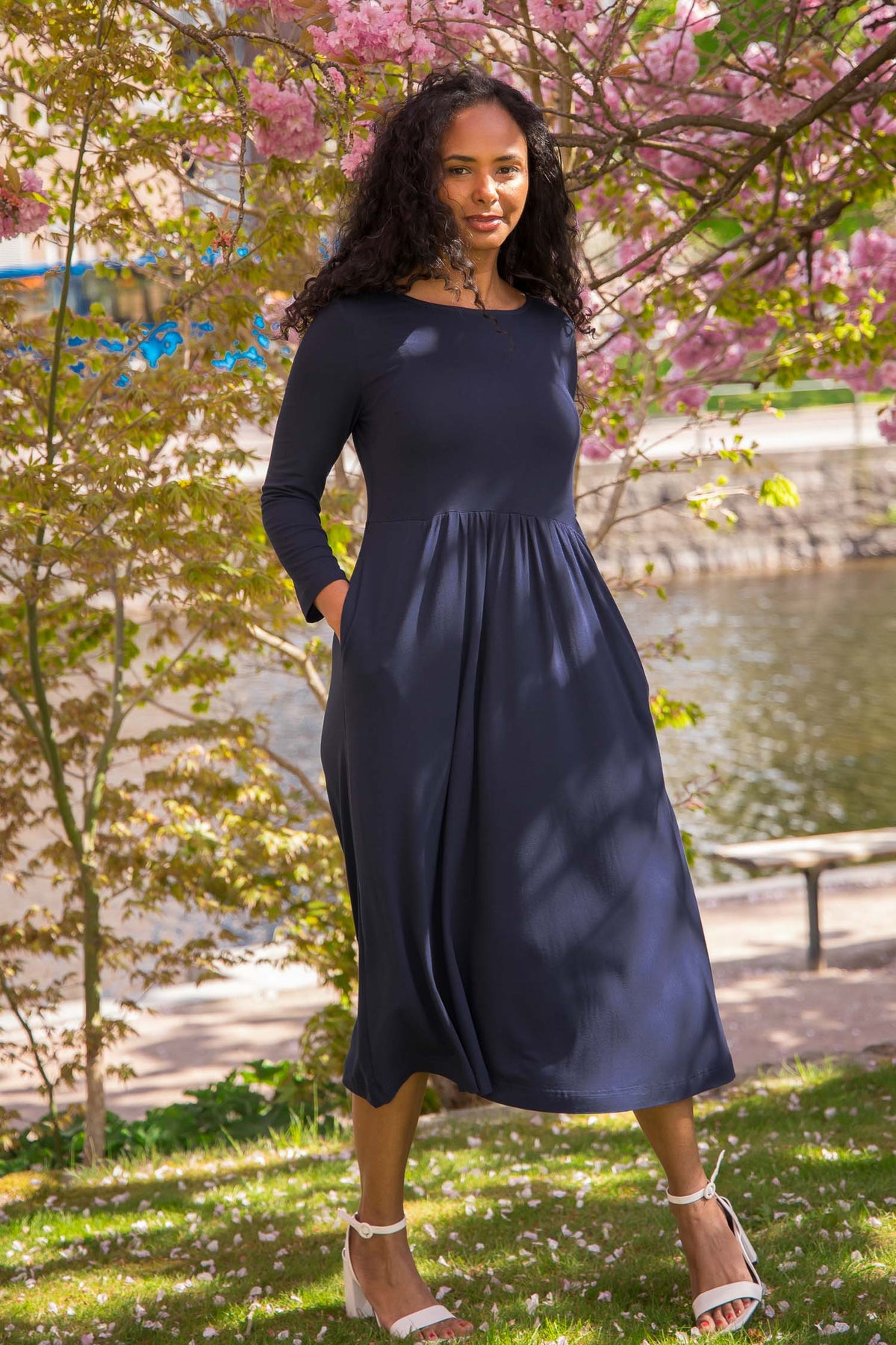 Our much-loved Ideal dress is finally here in solid colours – with the same wonderfully comfortable fit. The dress is made in soft viscose jersey with a beautifully heavy drape. It is fitted at the top, with a looser waist, a higher cut seam and a flared skirt that falls gently around the body. Perfect for those days when you want to feel relaxed yet put-together.