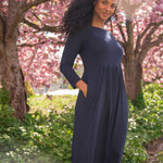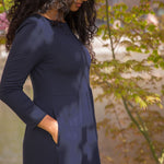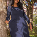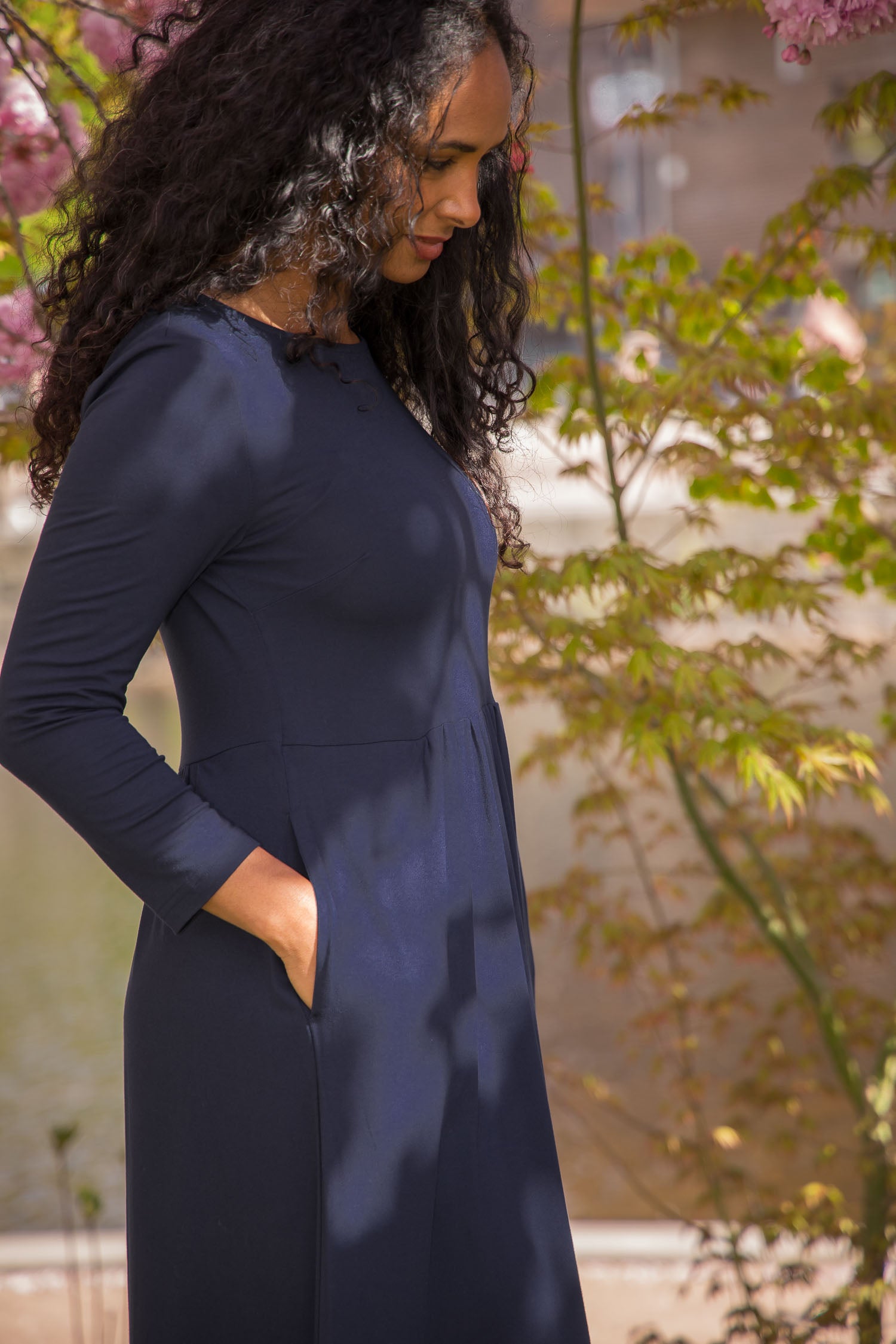 Vår omtyckta Ideal dress finns äntligen även i enfärgat, med samma sköna passform. Klänningen är sydd i mjuk viskostrikå med tungt, fint fall. Den är figurnära upptill, med en vidare midja och avskärning ganska högt upp, och en vippig kjol som faller fint runt kroppen. Perfekt när du vill känna dig bekväm men ändå klädd.