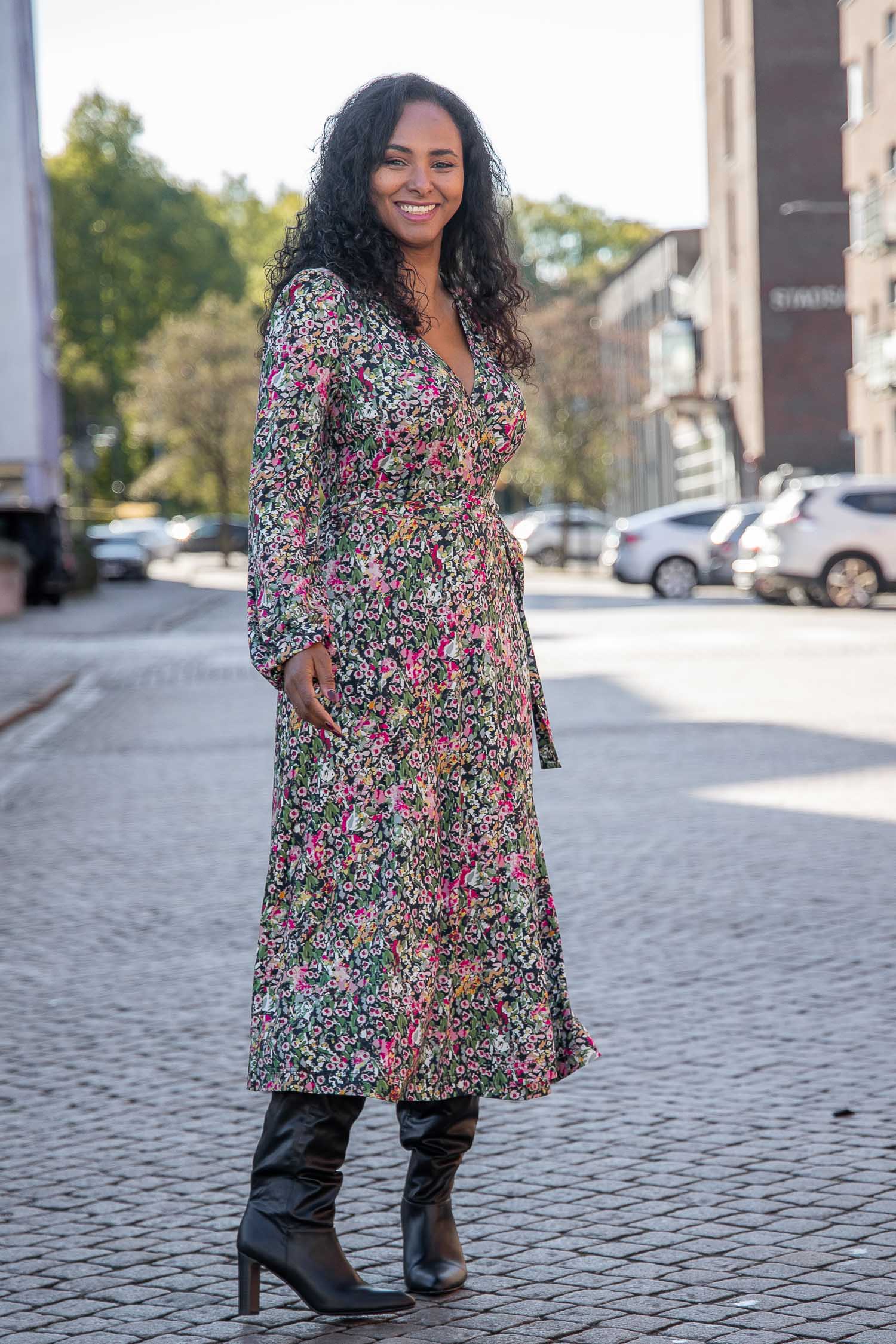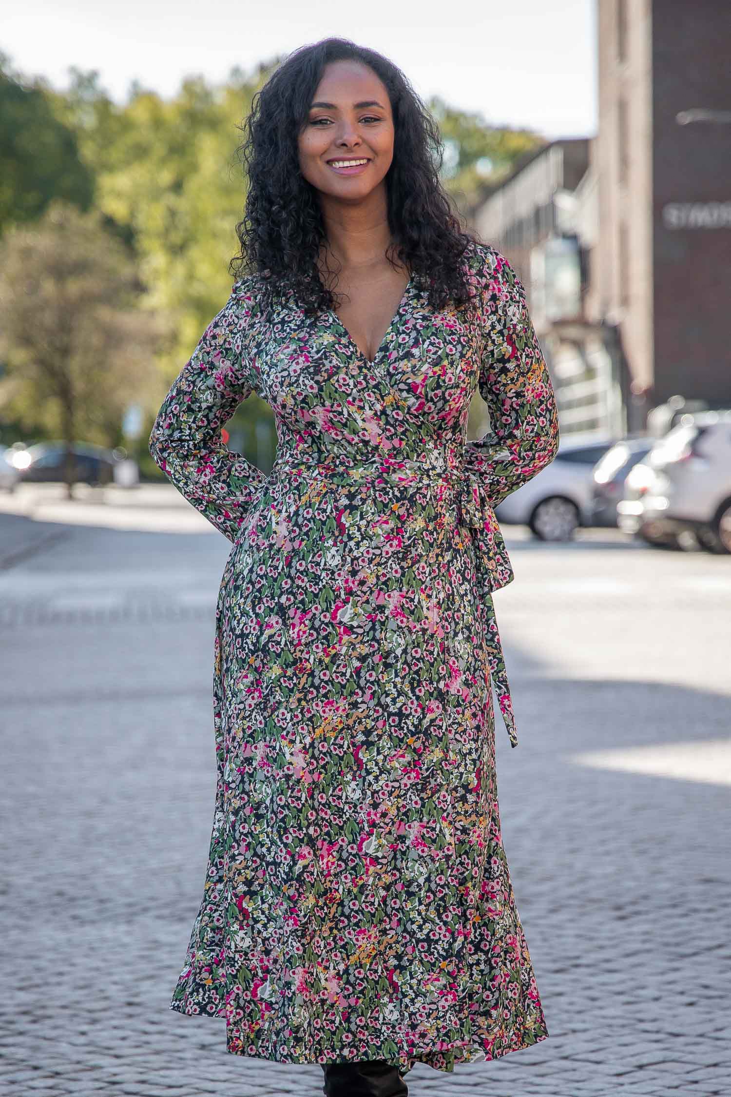 Genom åren har vår kärlek till omlottklänningar inspirerat oss att ta fram olika modeller av omlottklänningar med perfekt passform. Passion och lång erfarenhet har gett oss en stark kompetens och dessutom förstår vi hur viktigt det är att en omlottklänning sitter perfekt. Att säkerställa att våra klänningar har rätt passform är alltid av högsta prioritet för oss. Vi har lyssnat på de utmaningar som många har upplevt, såsom att klänningen kan glida isär eller inte erbjuda tillräcklig täckning. Vår målsättning har varit att lösa dessa problem och erbjuda klänningar som omsluter halsen och axlarna på ett säkert och elegant sätt. Vi snålar inte på tyget över bysten och i kjolen för att säkerställa att omlottklänningen håller sig på plats precis där den ska.