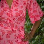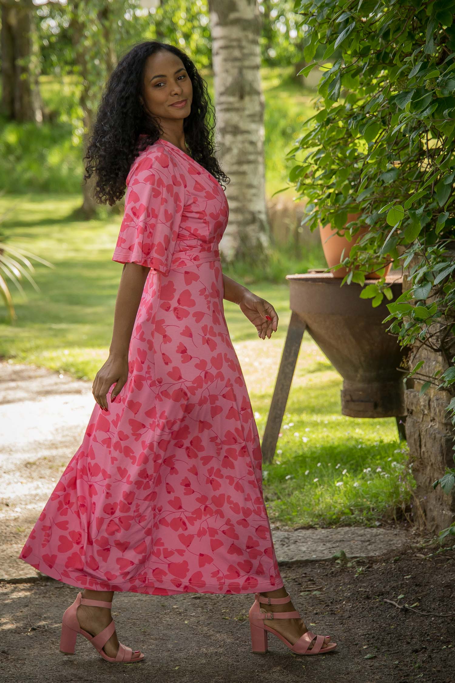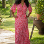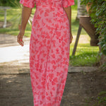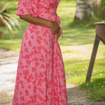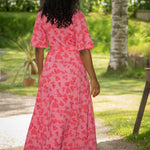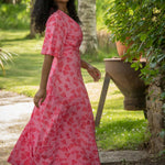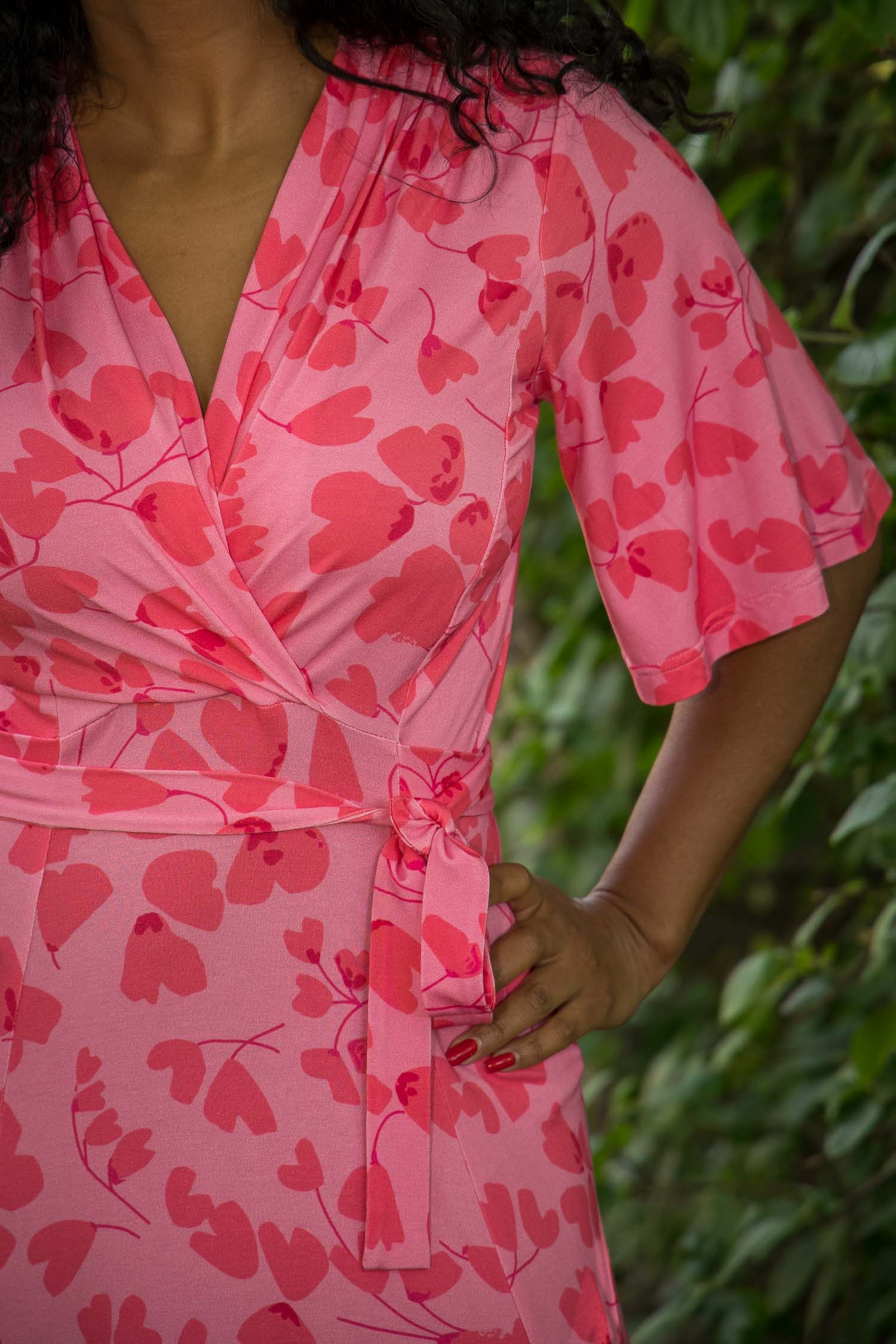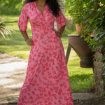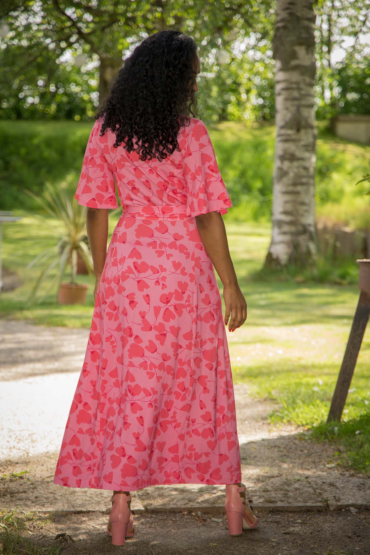 Voilà, här är Essential – vår ankellånga trikåklänning, nu i ett sprudlande mönster i korallrosa på rosa botten. Det här är klänningen du alltid kan lita på – lika snygg på fest som till vardags.