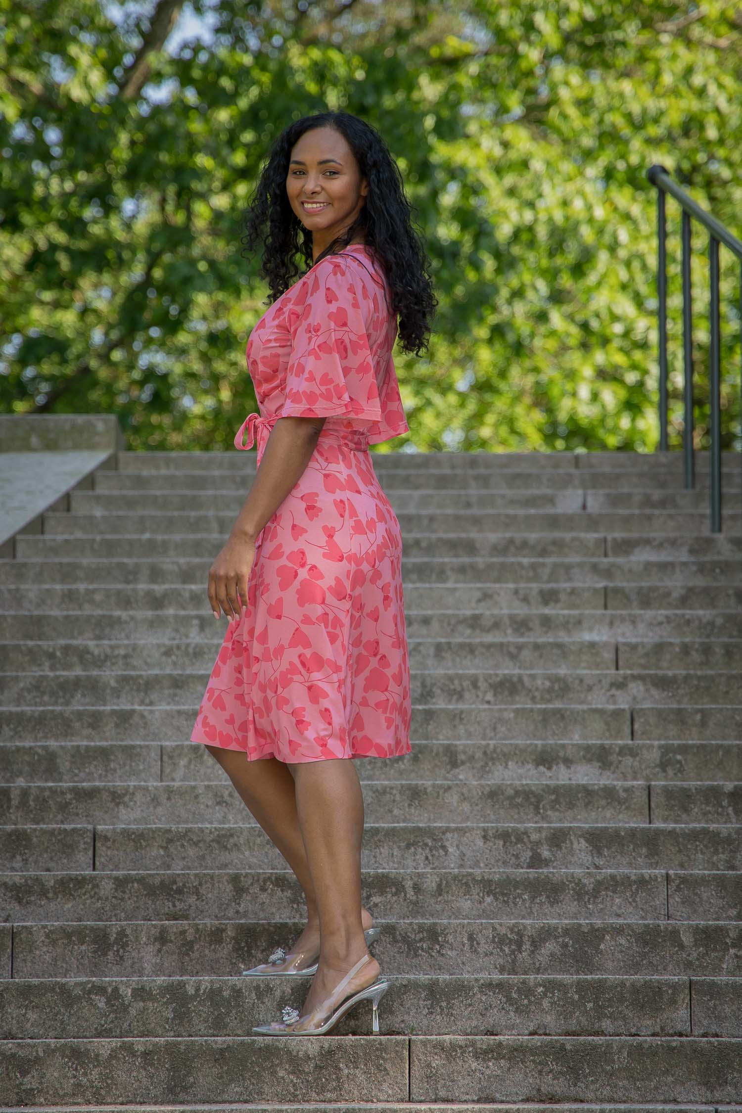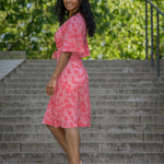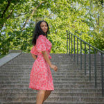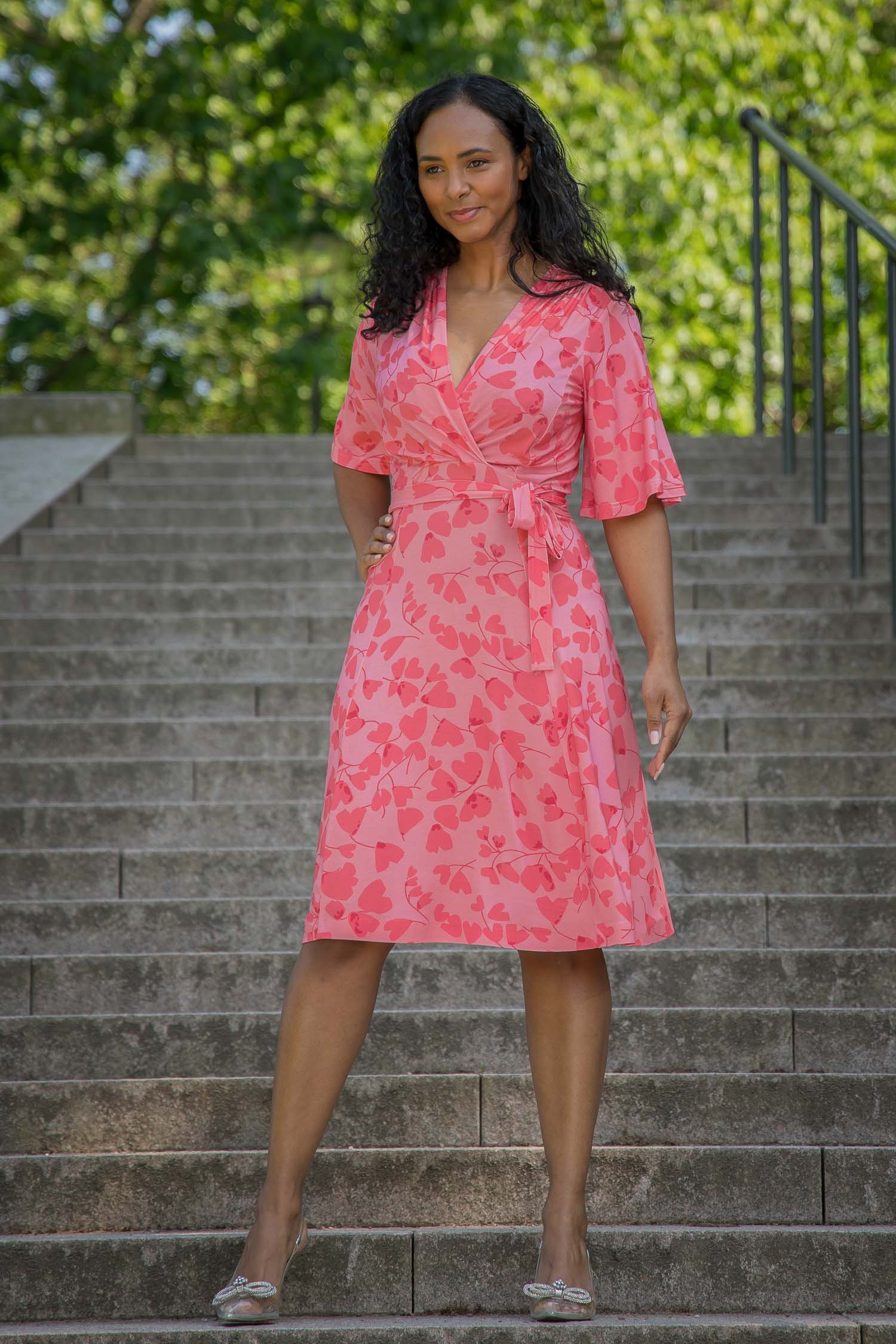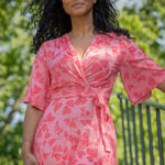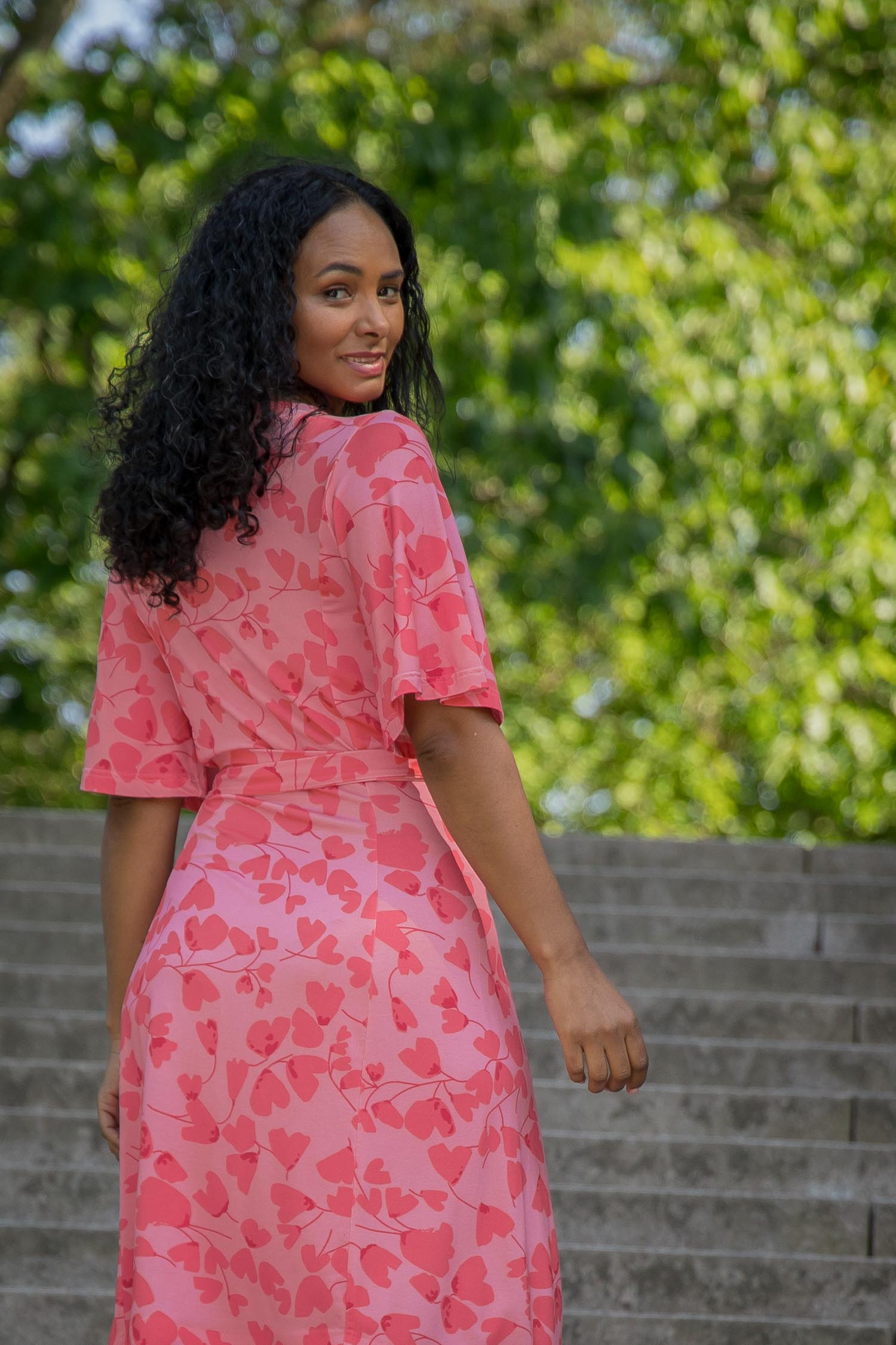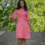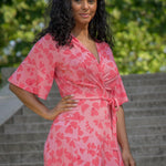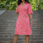 Voilà, här är Essential – vår ankellånga trikåklänning, nu i ett sprudlande mönster i korallrosa på rosa botten. Det här är klänningen du alltid kan lita på – lika snygg på fest som till vardags.