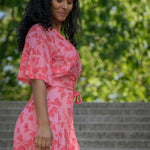 Essential bell sleeve short jersey dress - Pink