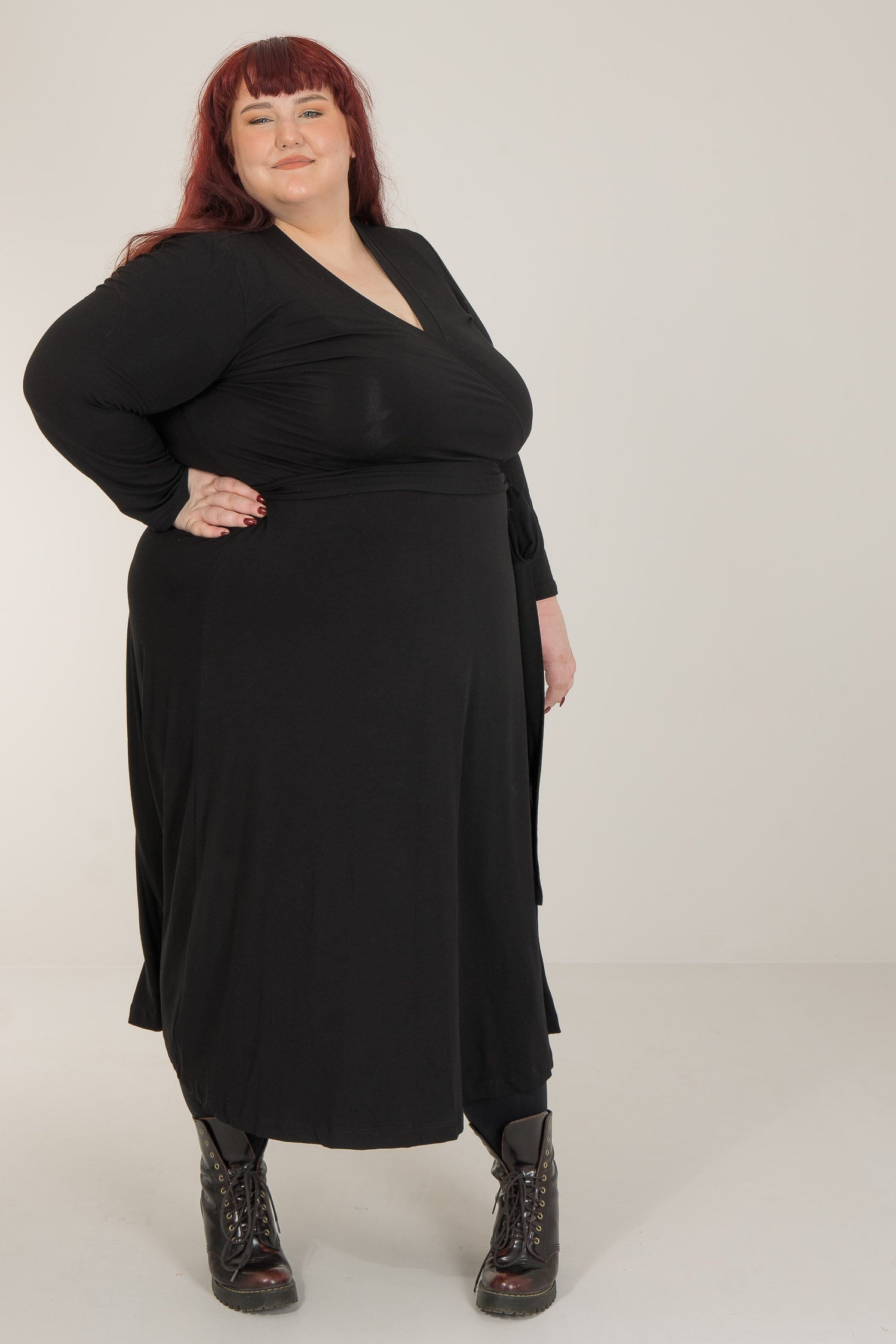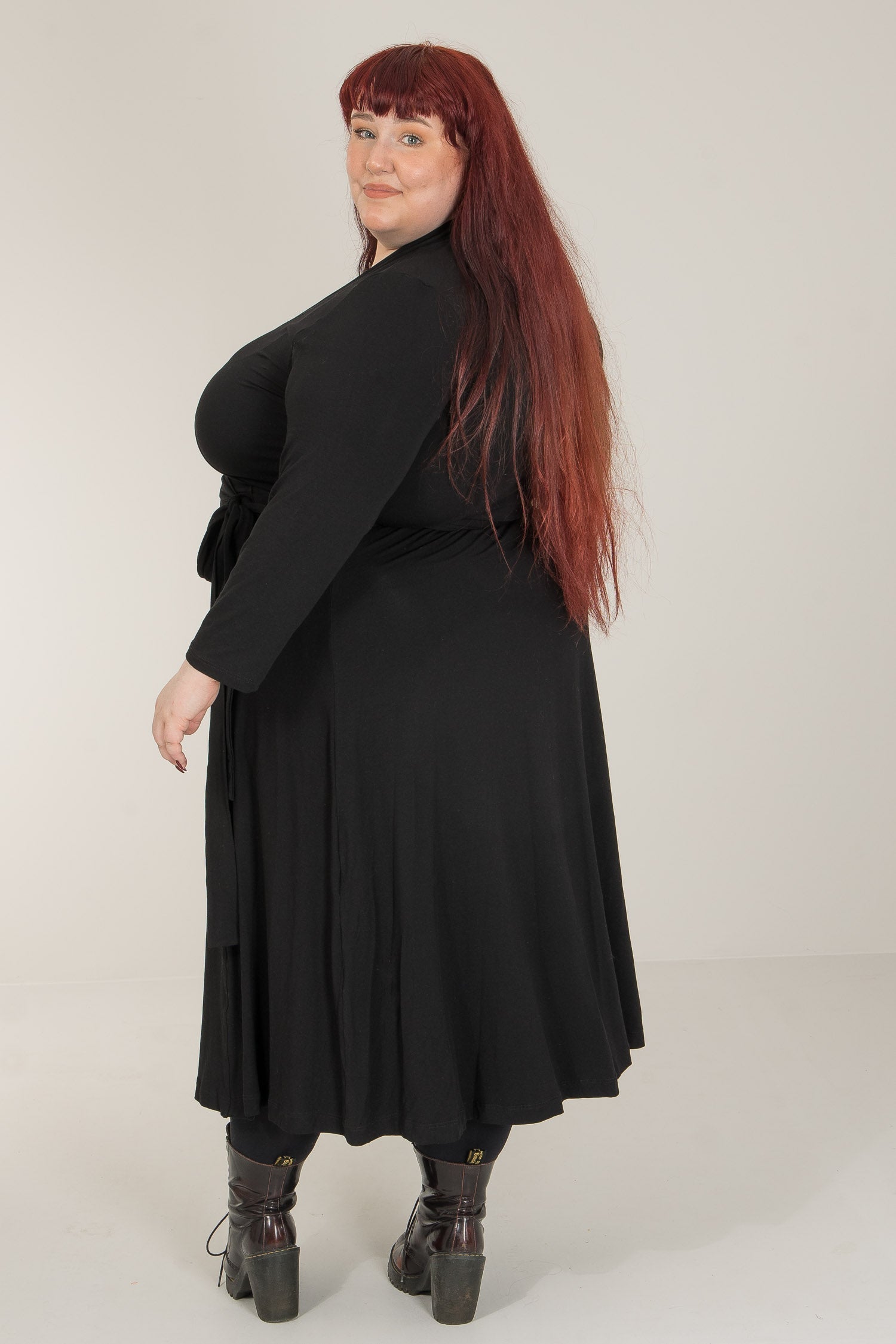 Omlottklänningar i trikå är verkligen kurvornas bästa vän! De faller fint, sitter åt på de rätta ställena och går att knyta utefter eget tycke och smak. Här är en vadlång modell sydd i mjuk trikå med knyt i midjan och vidd i kjolen. Bestie wrap dress återkommer i vår kollektion och är en av våra mest omtyckta klänningar.