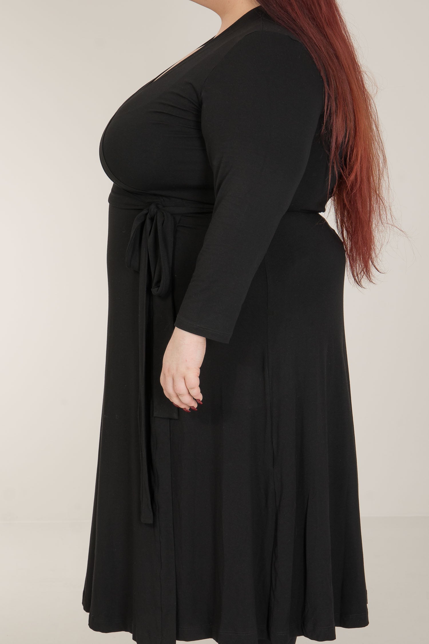 • Omlottklänning (öppen omlott) med knytband i sidan att knyta runt midjan.