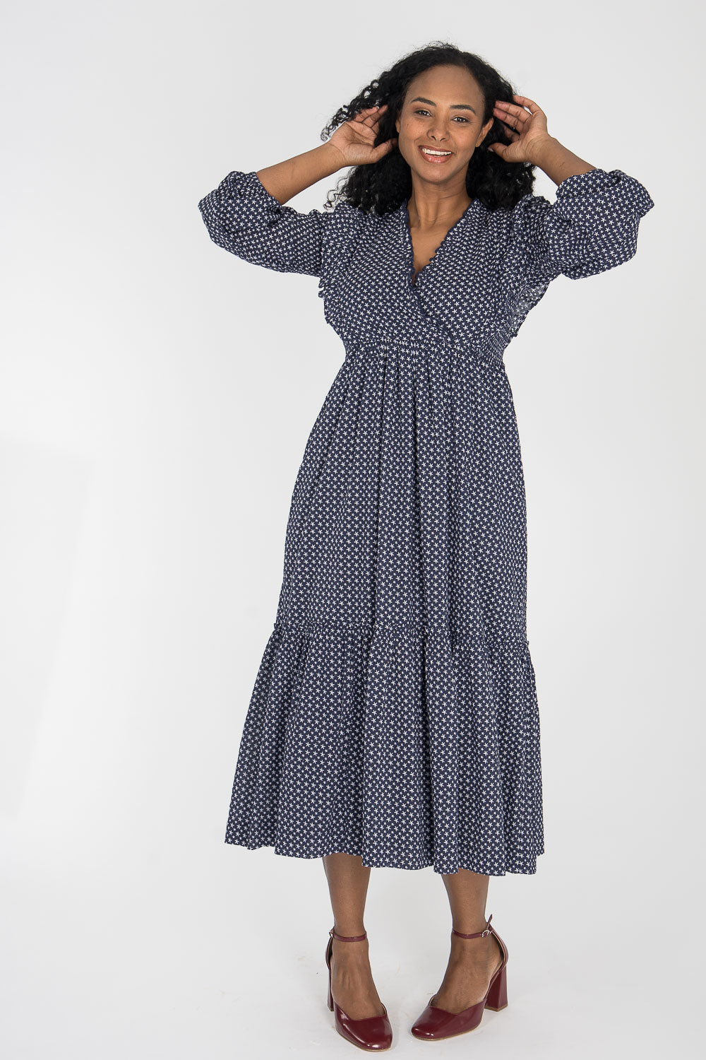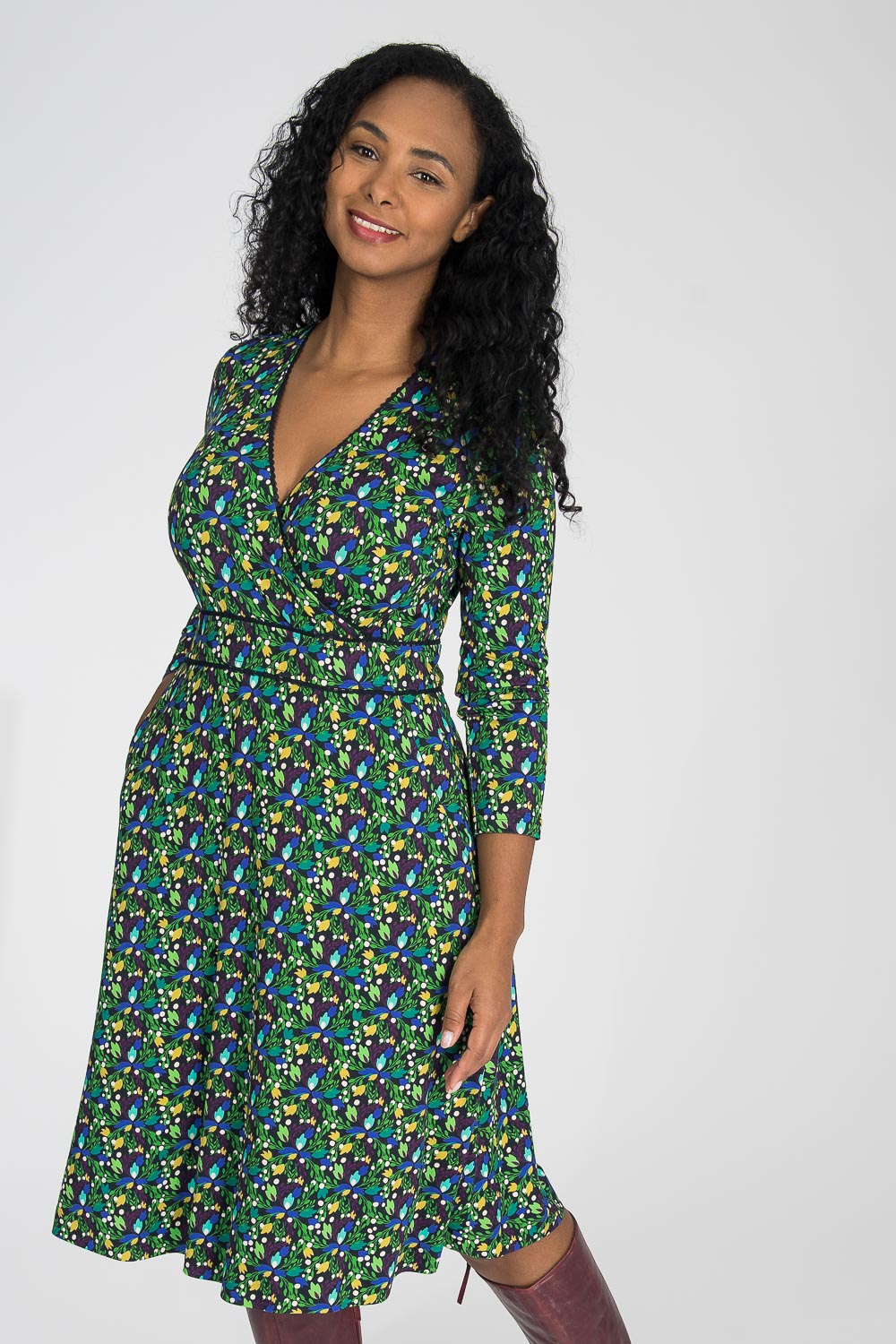 Om du läser att en klänning är sydd i stretchigt tyg med tungt fall, så är det en av våra kvaliteter som vi är mest kända för och som vi använder till många av våra klänningar.