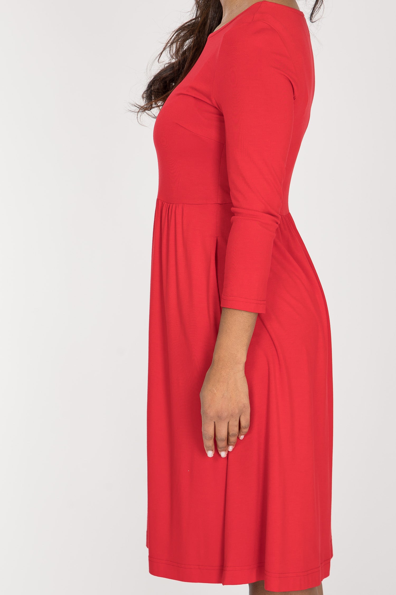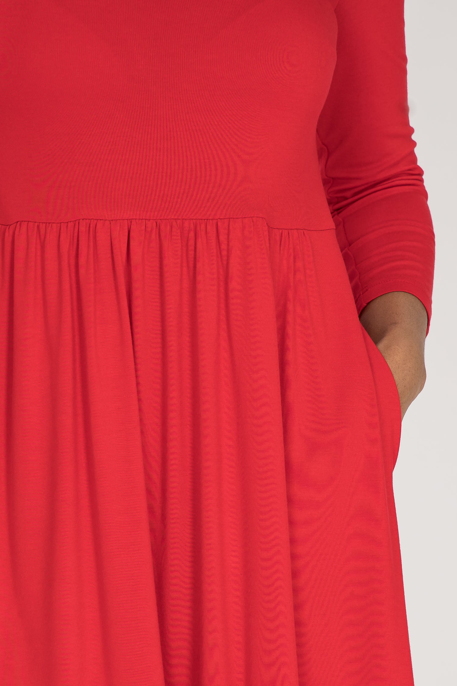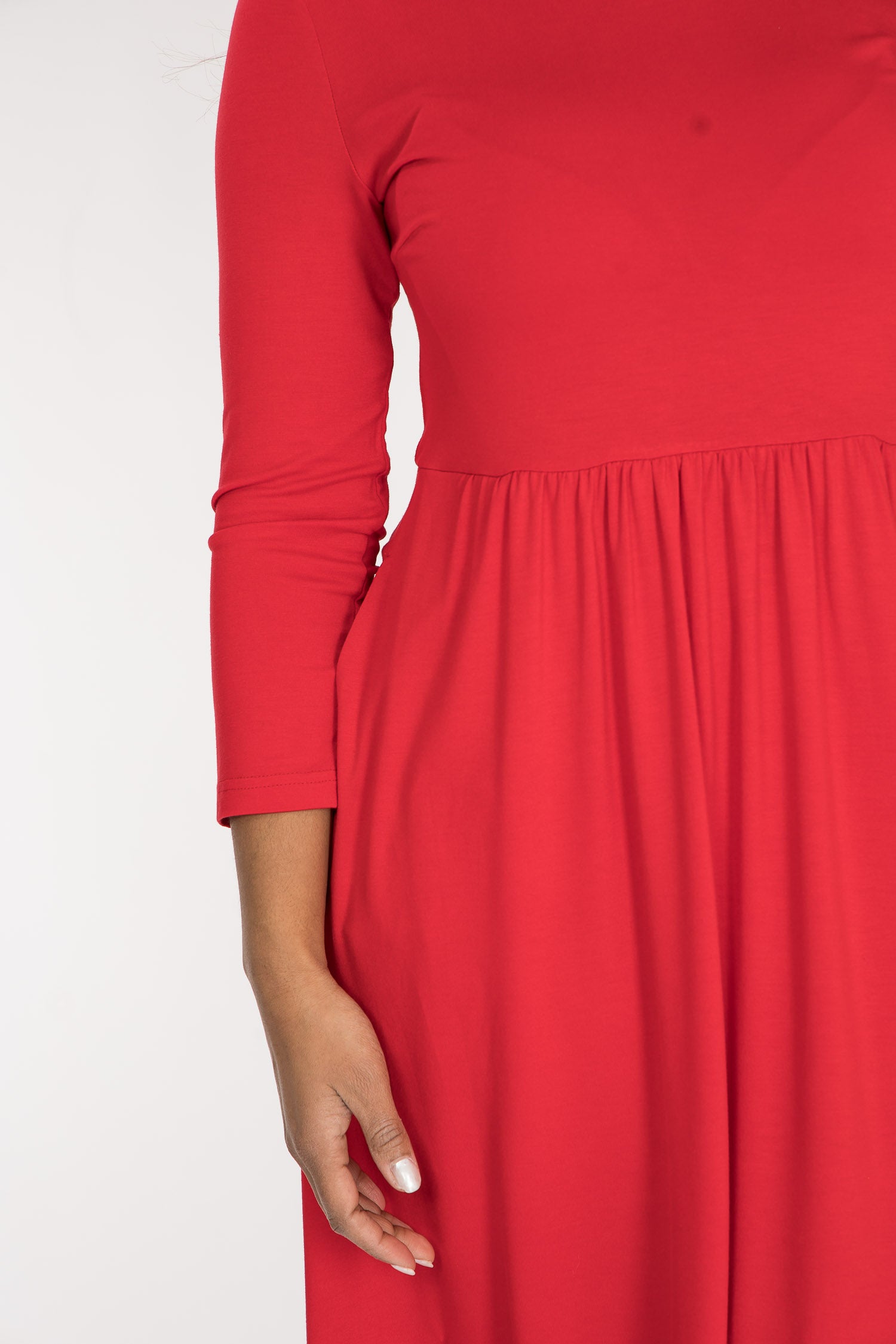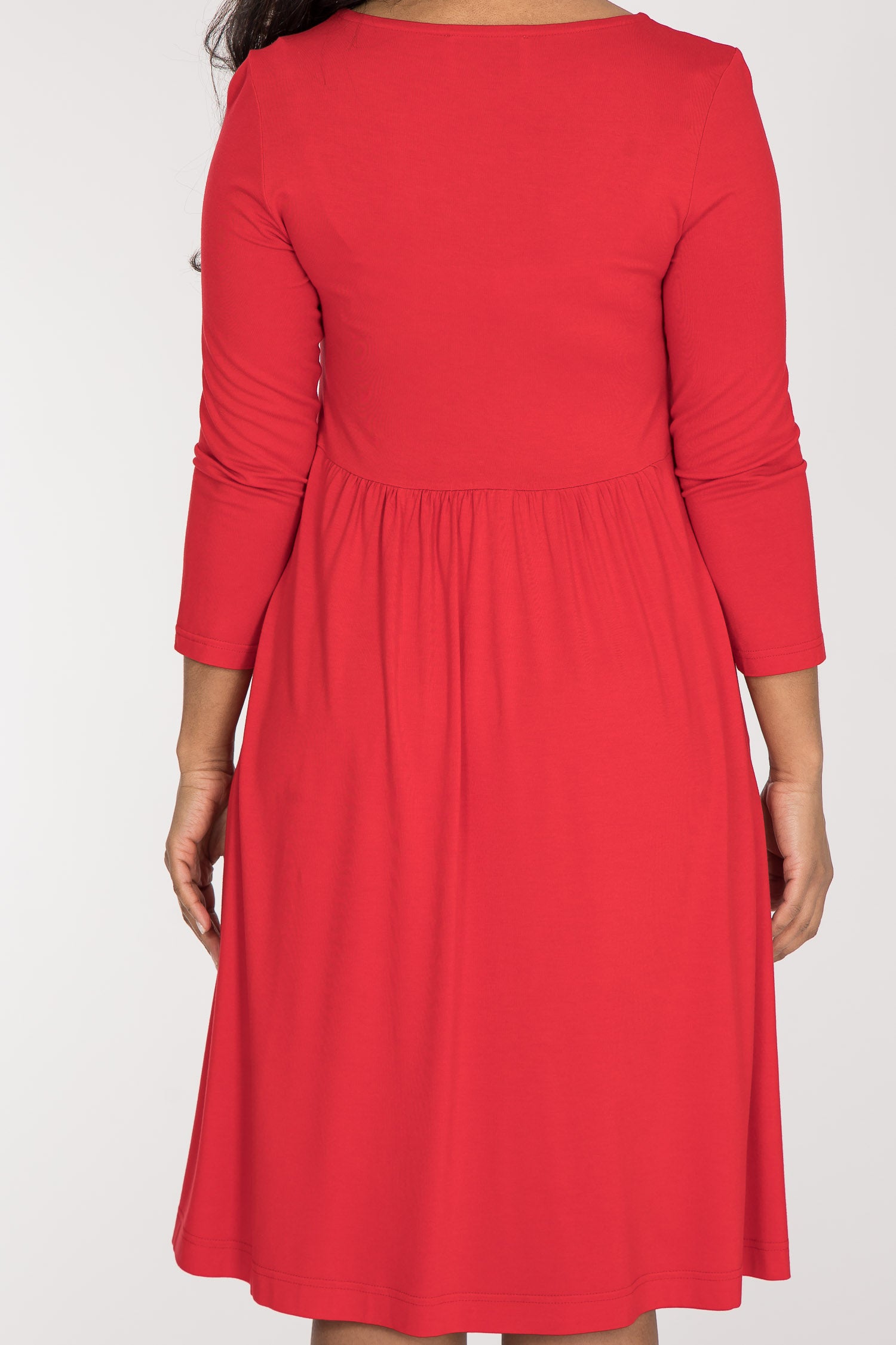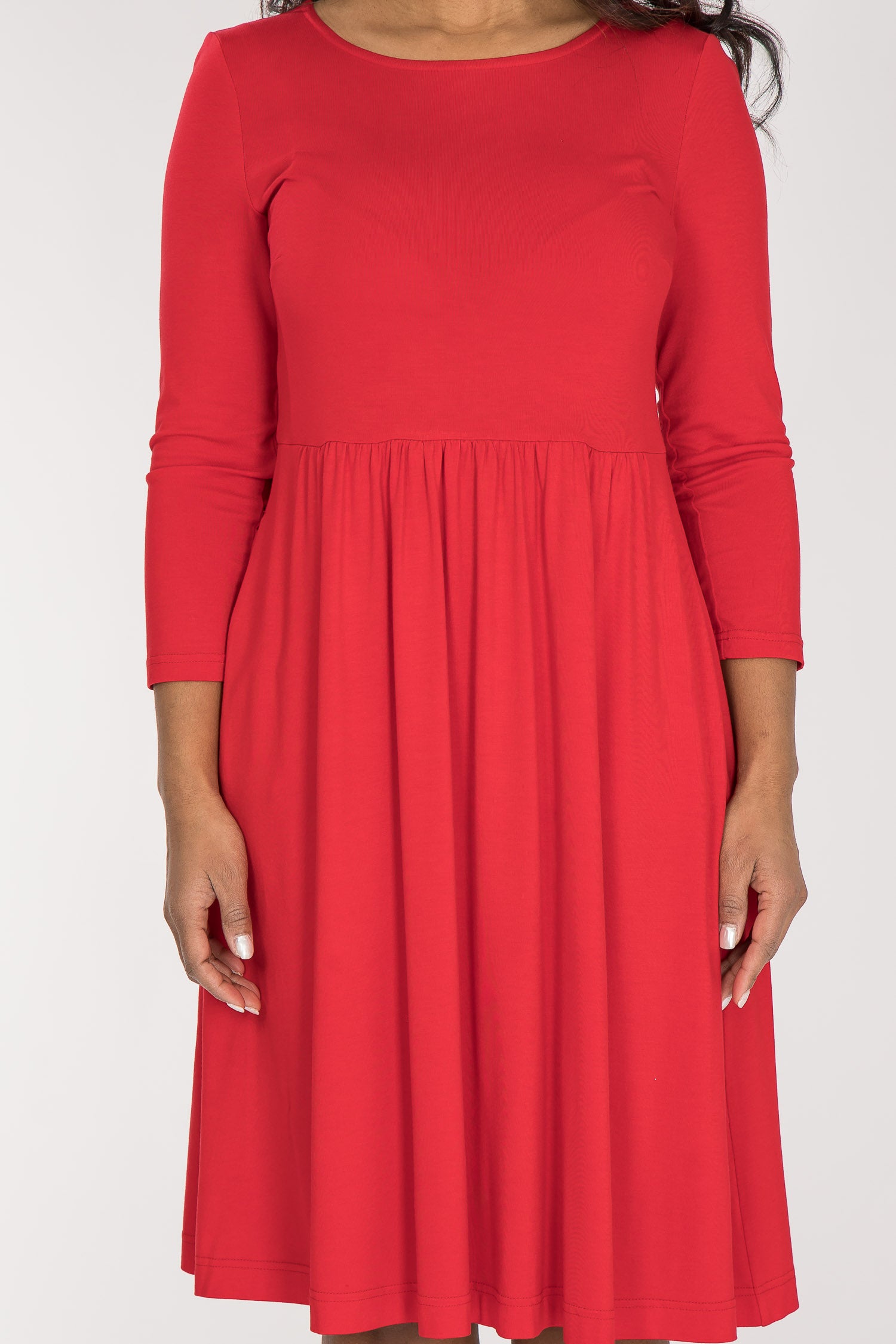 En klänning i True Red är enkel att styla med svart, marinblått eller krispigt vitt för ett modernt intryck. Vill du mjuka upp den fungerar även kall beige eller stengrått. Silvriga accessoarer förstärker det neutrala och klara uttrycket.