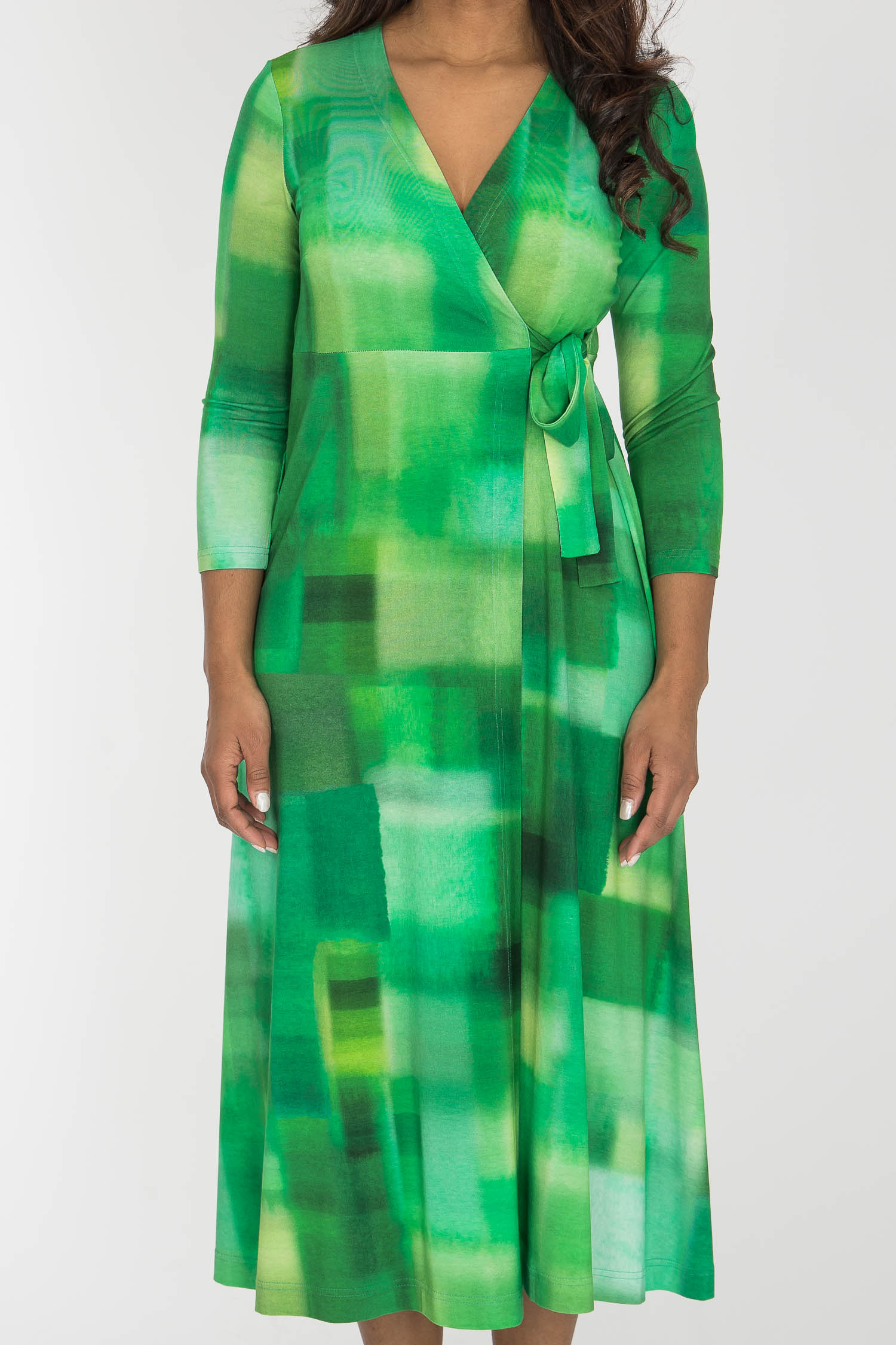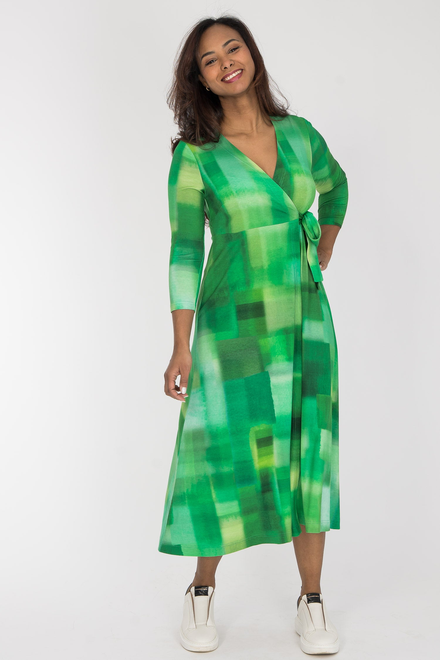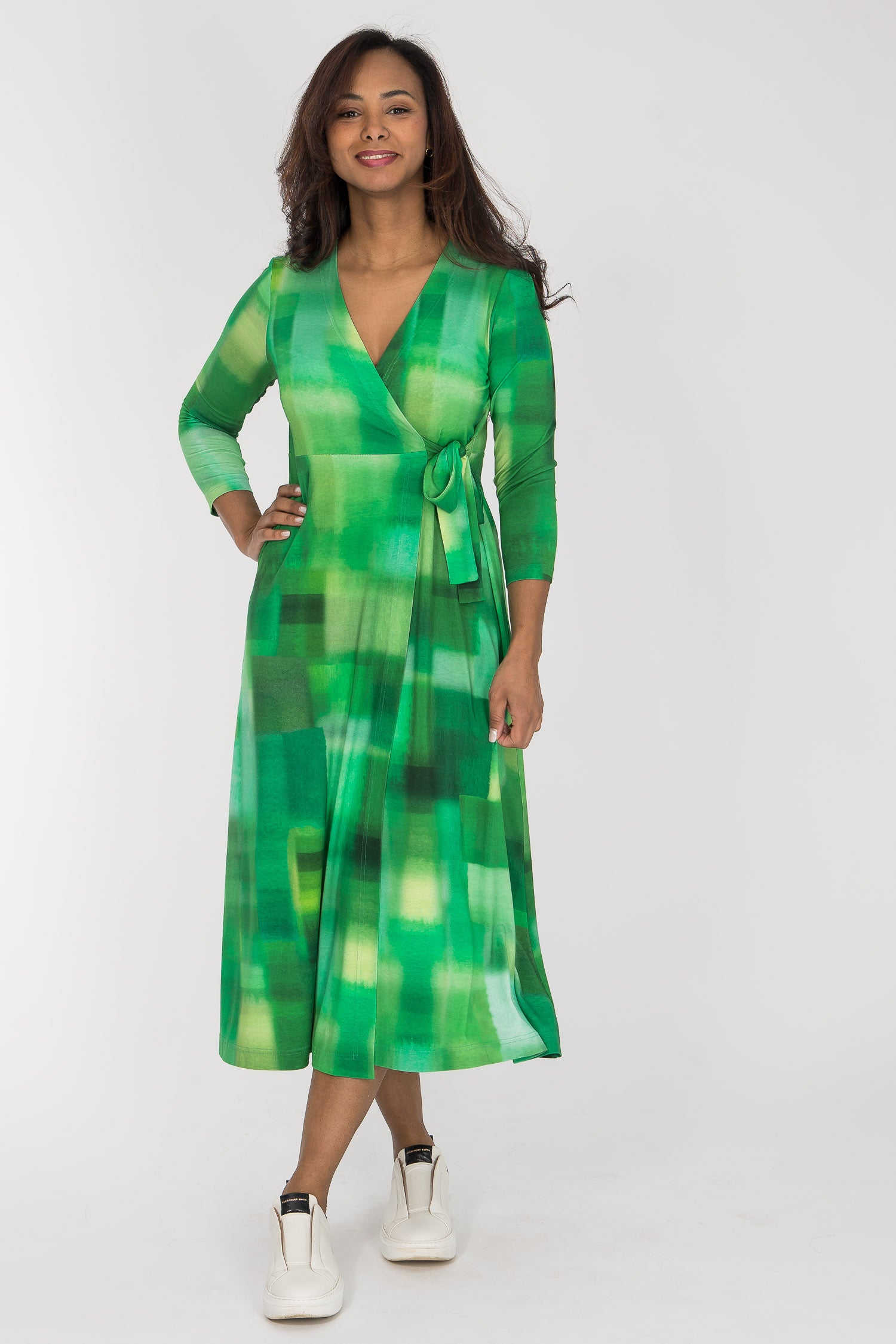 För att du ska kunna hitta den perfekta klänningslängden för dig, finns den här omlottklänningen i två varianter – en som når vaden och en som går till knäet.