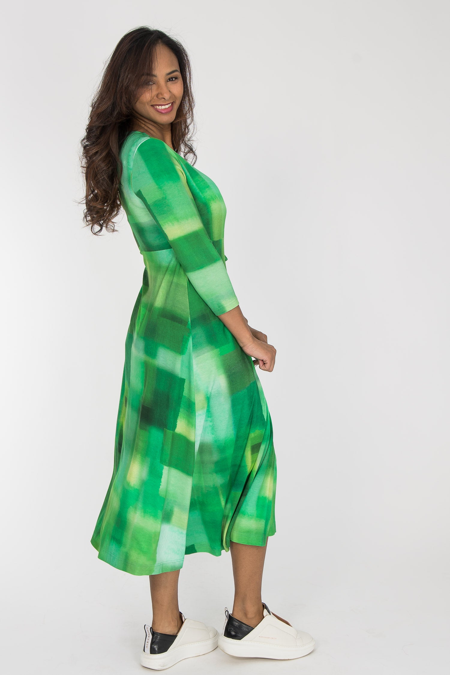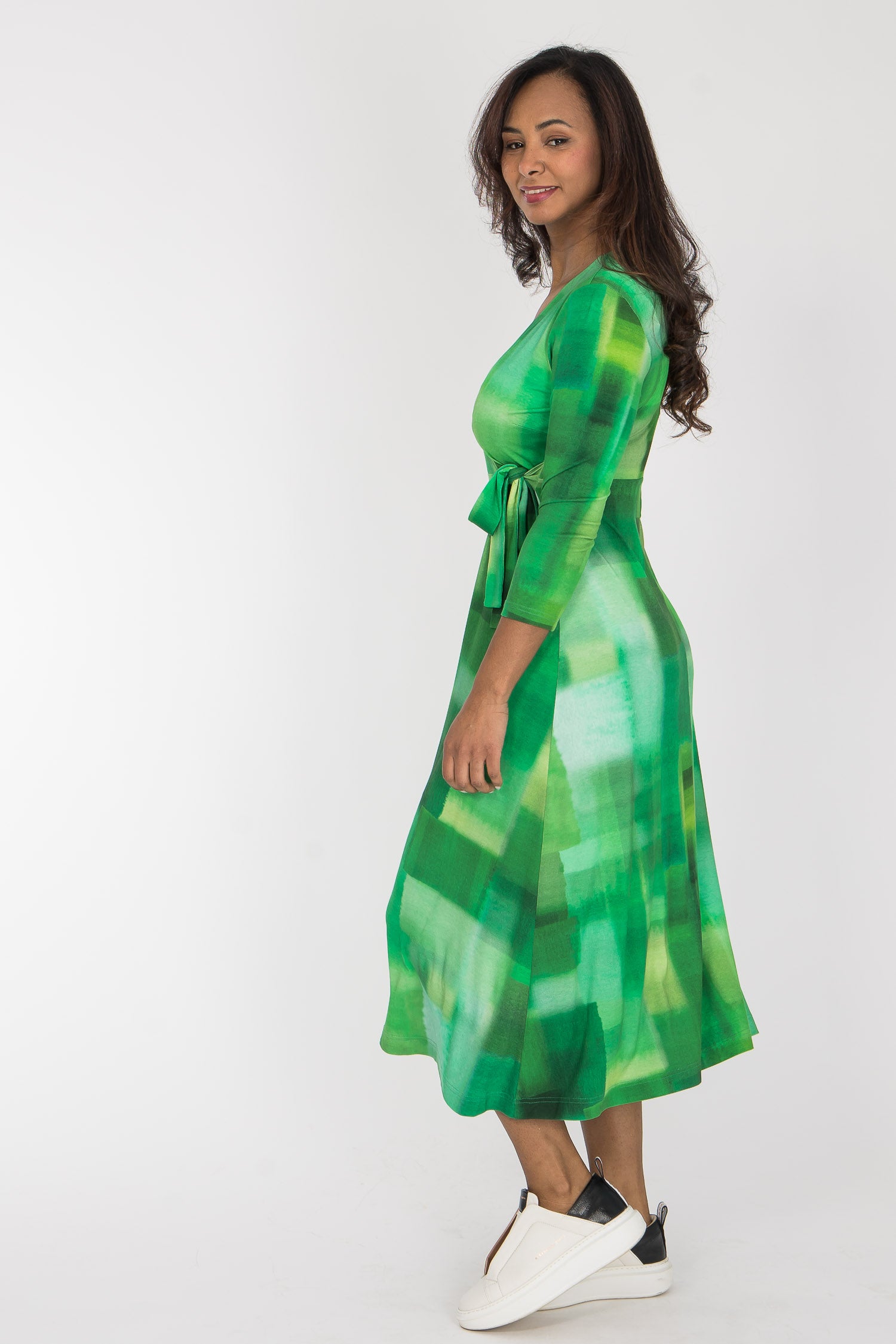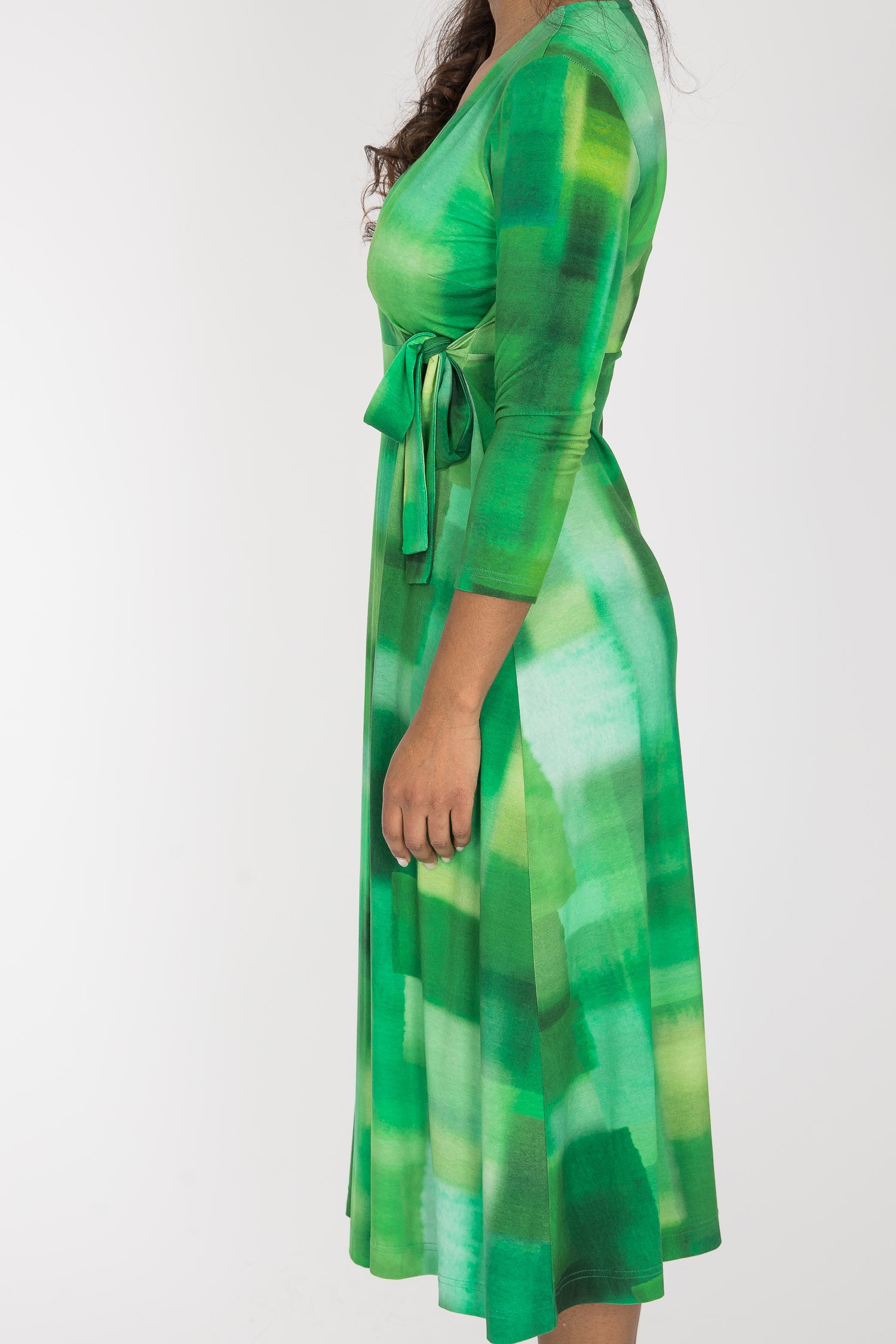 För att du ska kunna hitta den perfekta klänningslängden för dig, finns den här omlottklänningen i två varianter – en som når vaden och en som går till knäet.