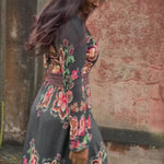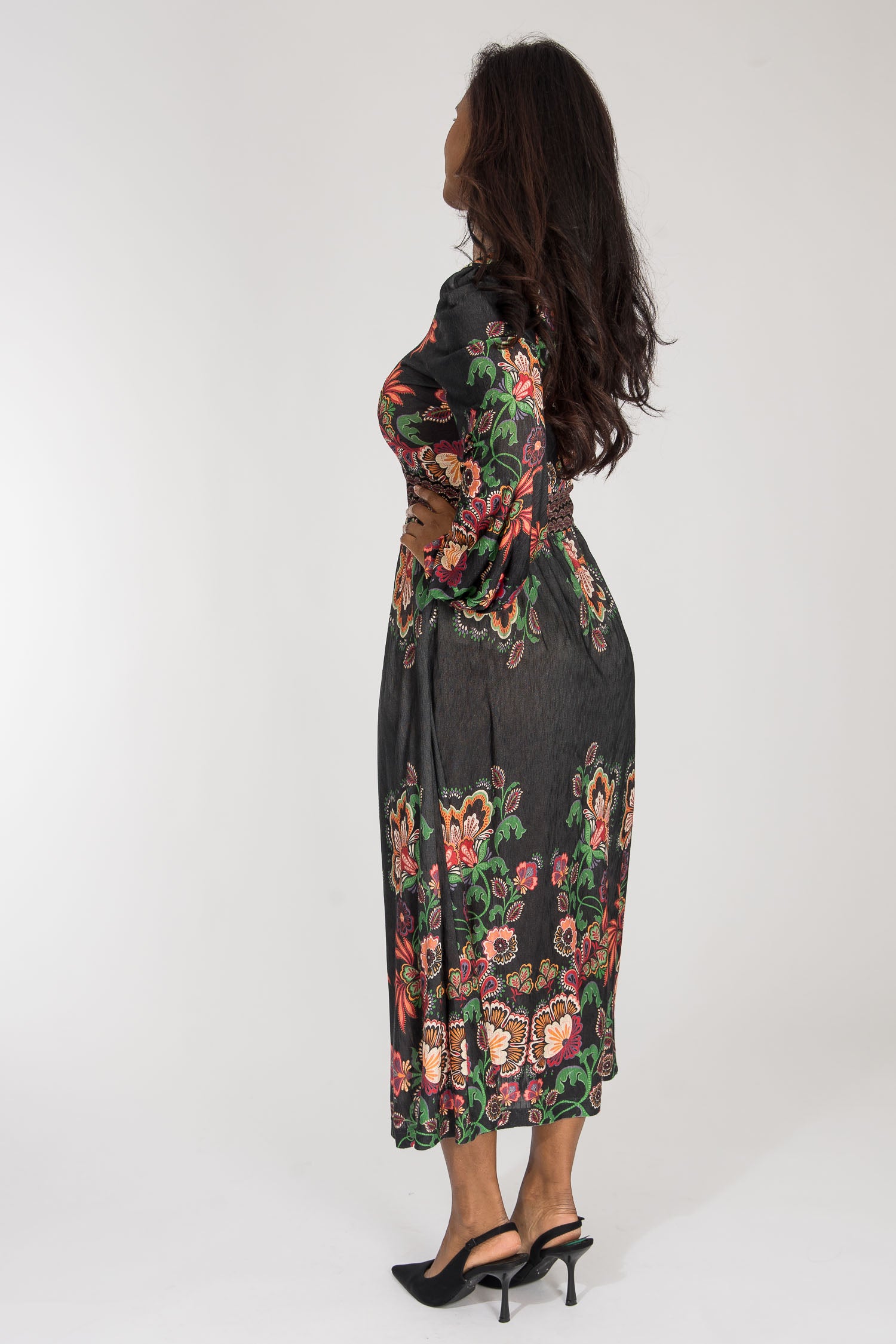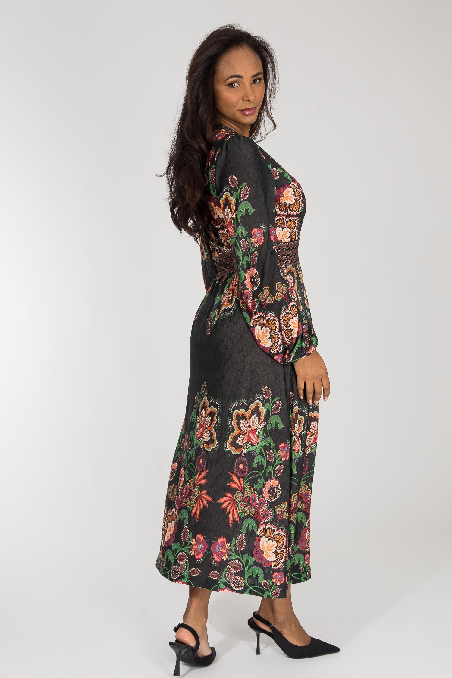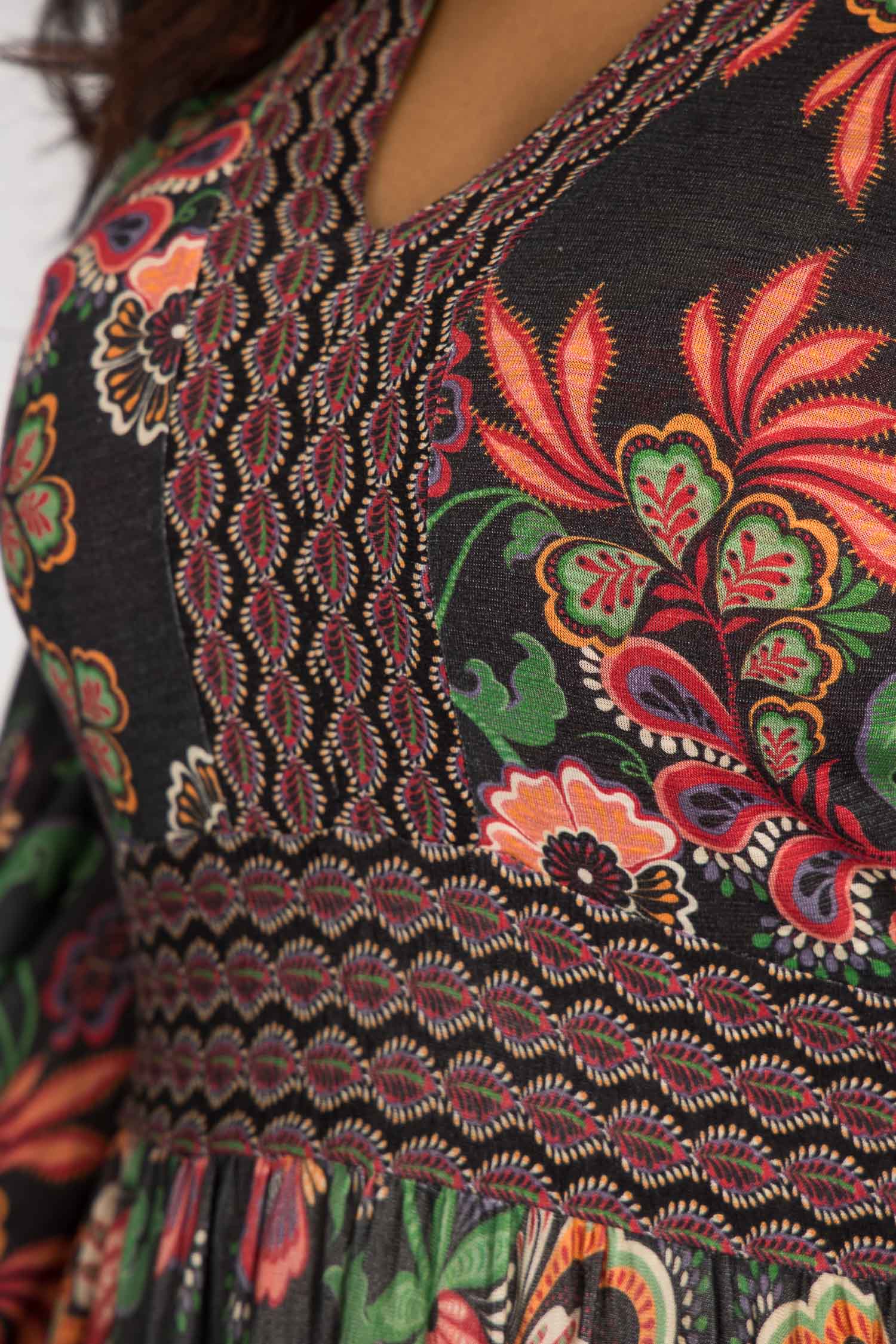 Voilà! Vår Pure Boho är tillbaka i ett nytt, helt underbart mönster. Sydd i mjuk viskostrikå med ett färgstarkt blommotiv i folklore-inspirerad stil och färger som känns helt rätt för december och vinterns alla tillfällen.