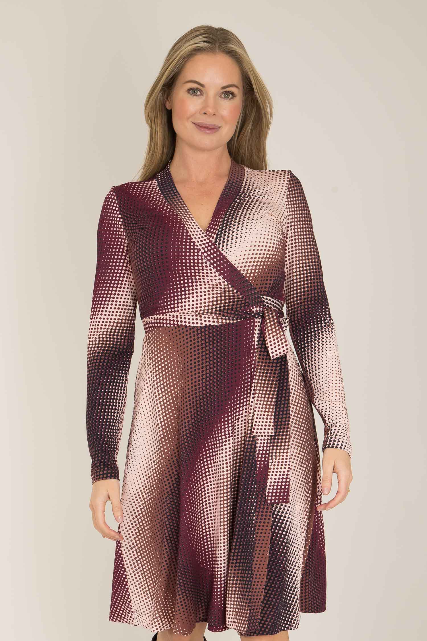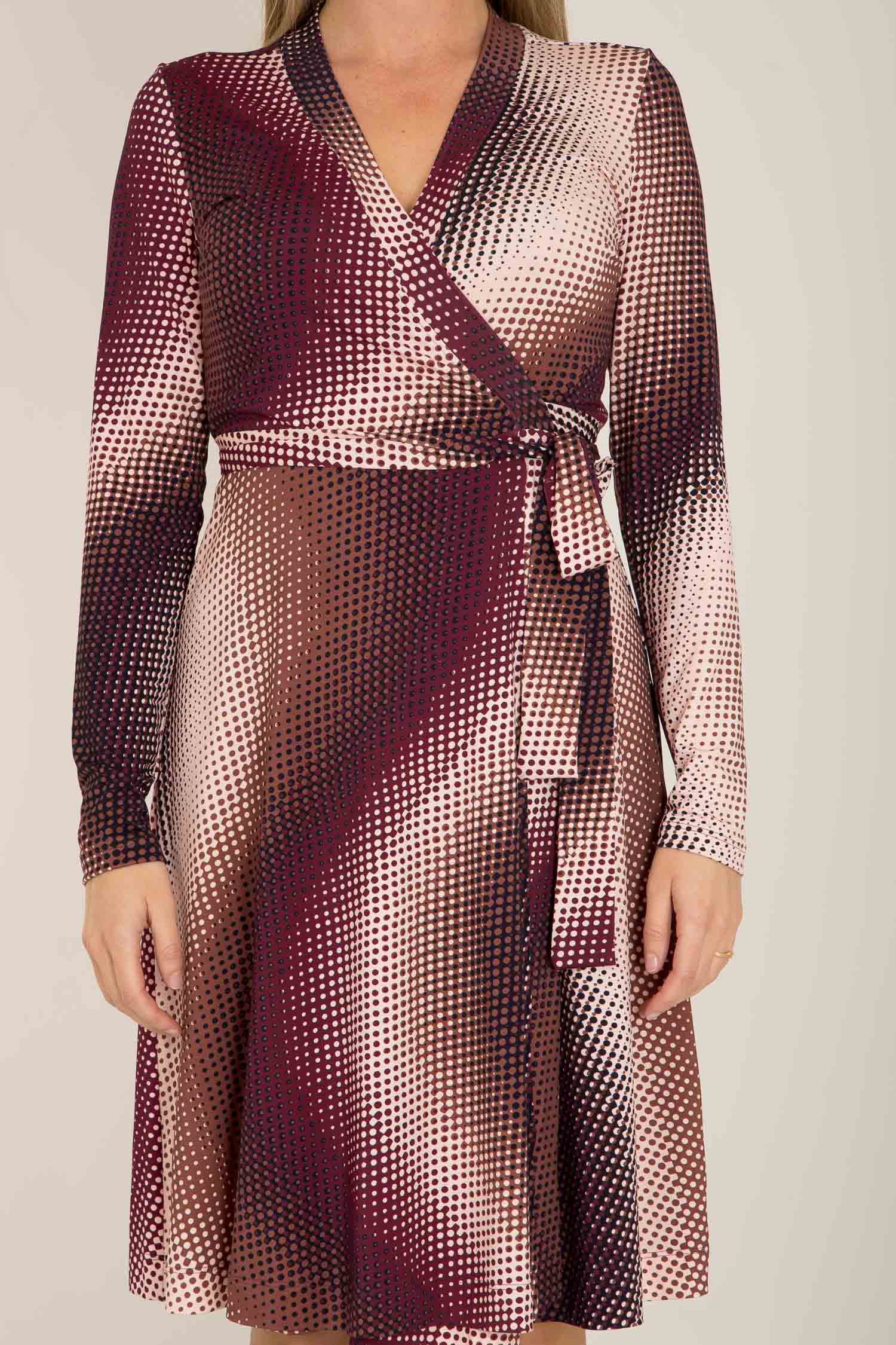 • Knälång omlottklänning (öppen omlott).