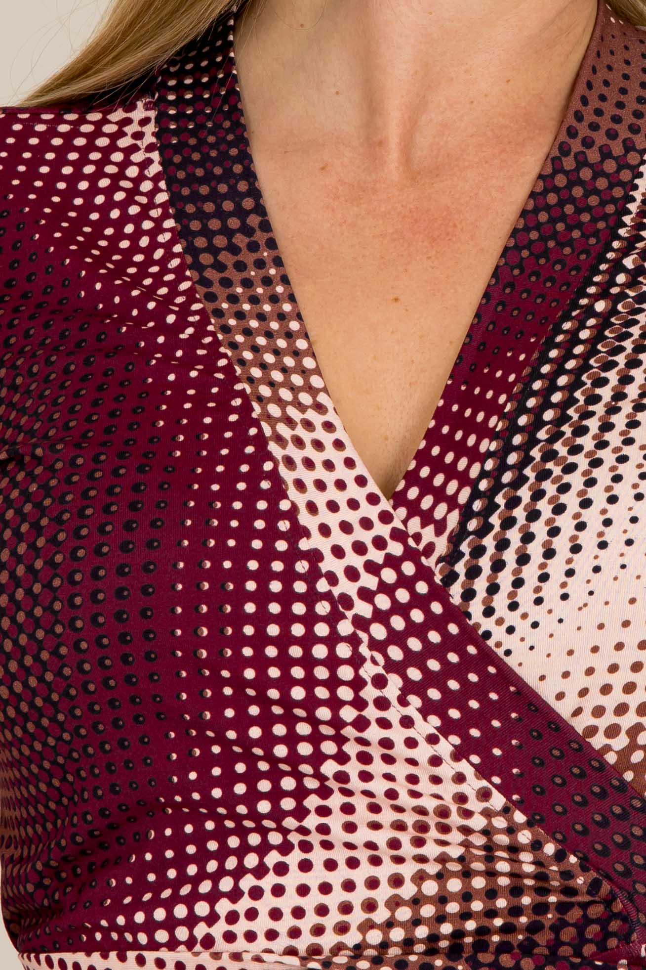 Omlottklänningen är sydd i en stretchig trikå av viskos och elastan. Kvalitén är mjuk med lite tyngd, följsam, nopprar inte och håller både formen och färg tvätt efter tvätt. Med andra ord – här har du en klänning gjort för att användas mycket (och länge)