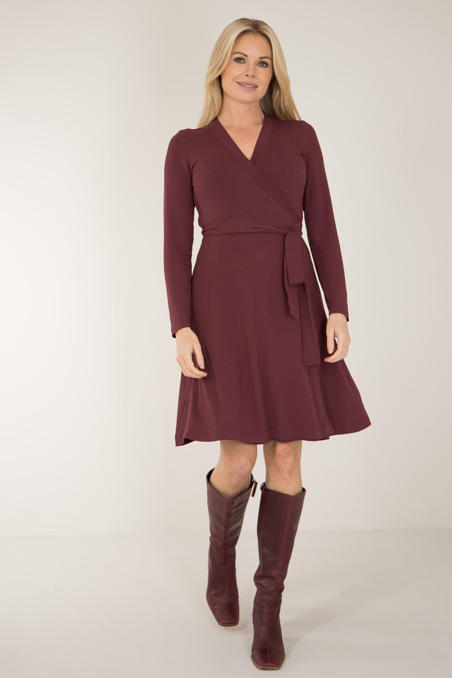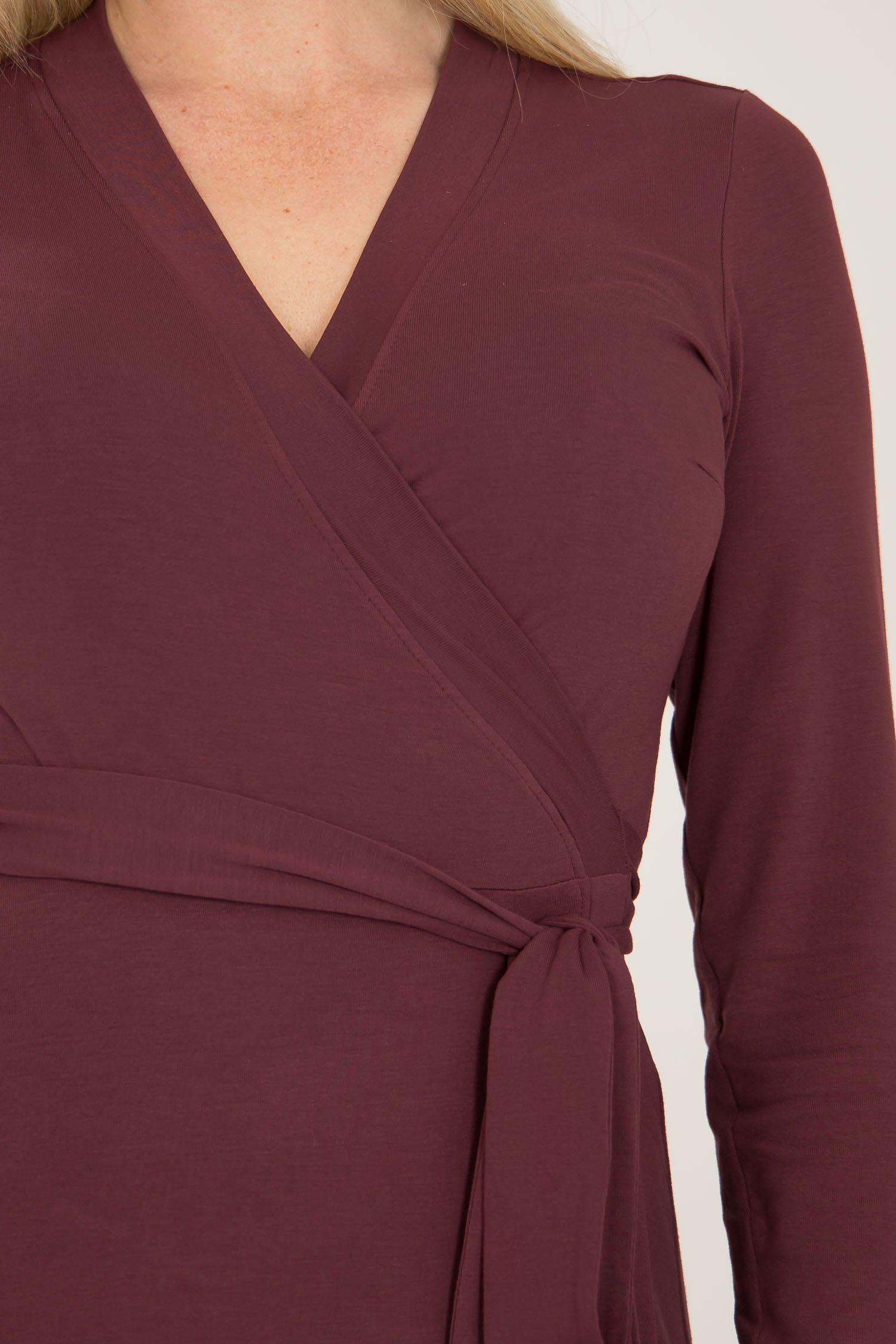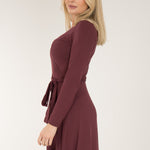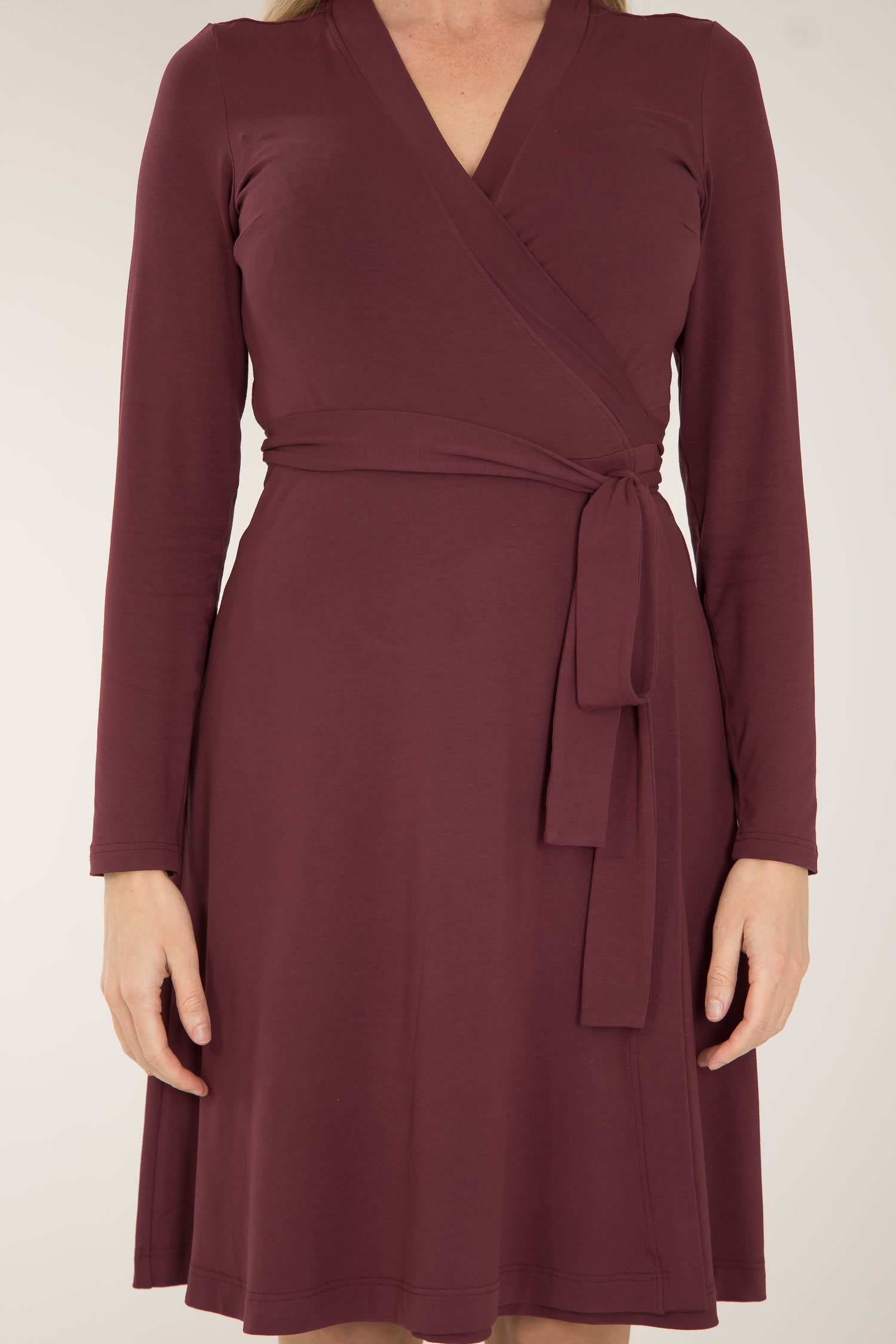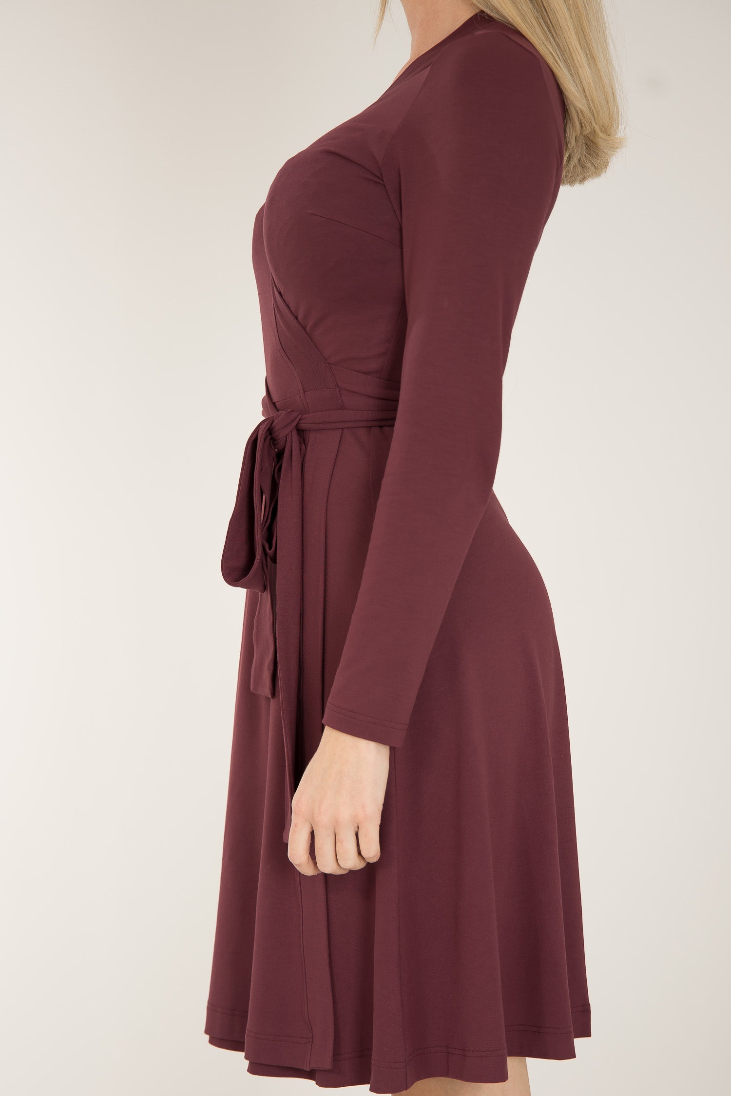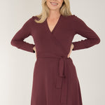 Bestie short wrap jersey dress - Burgundy - Knälång, brunröd omlottklänning i trikå