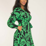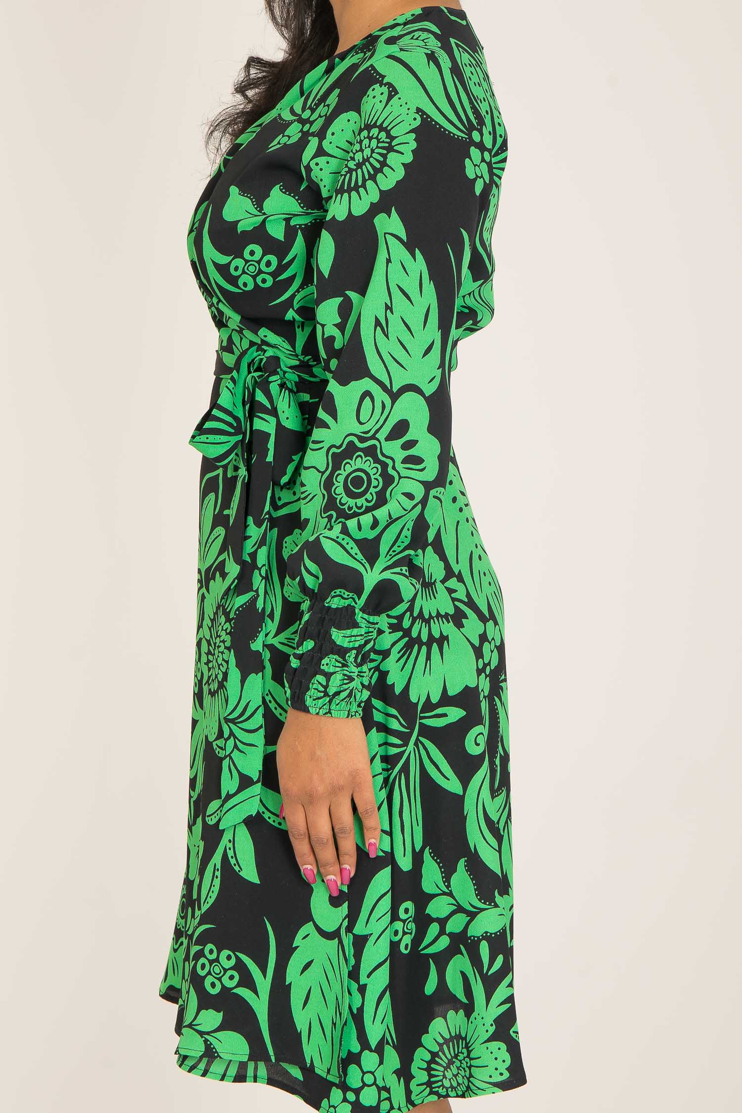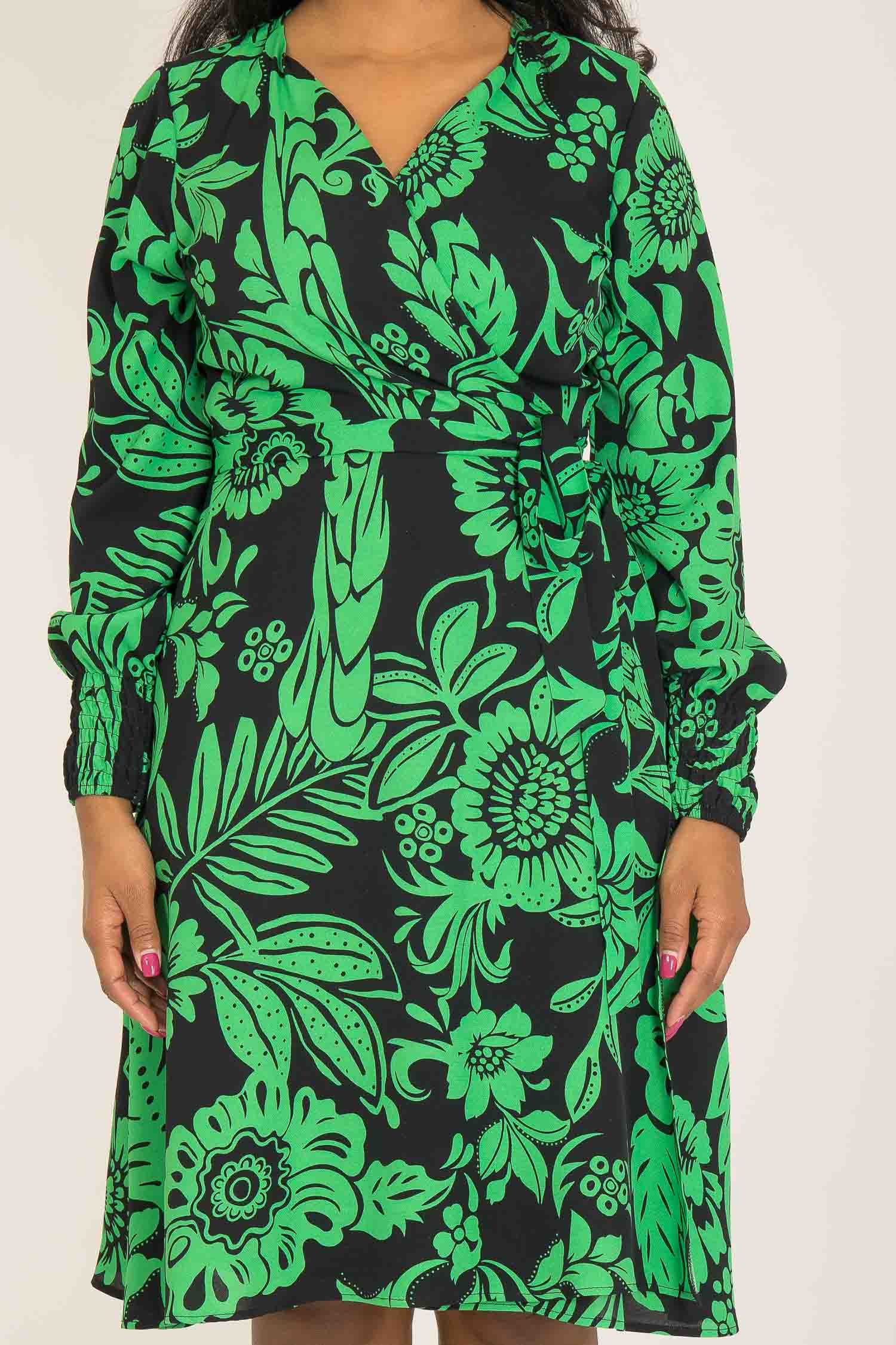 Kelly green wrap short dress - Green - Mönstrad, knälång omlottklänning