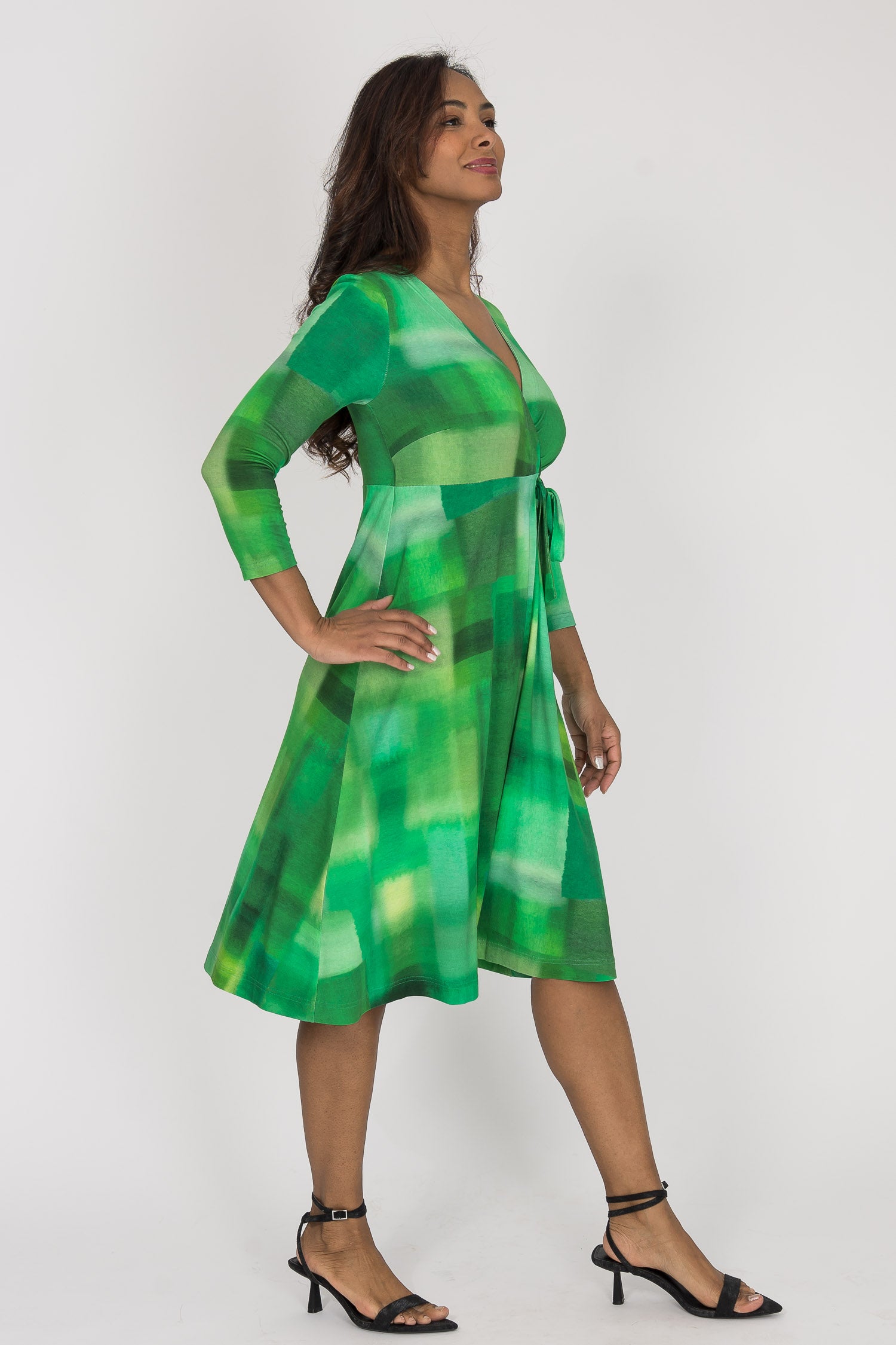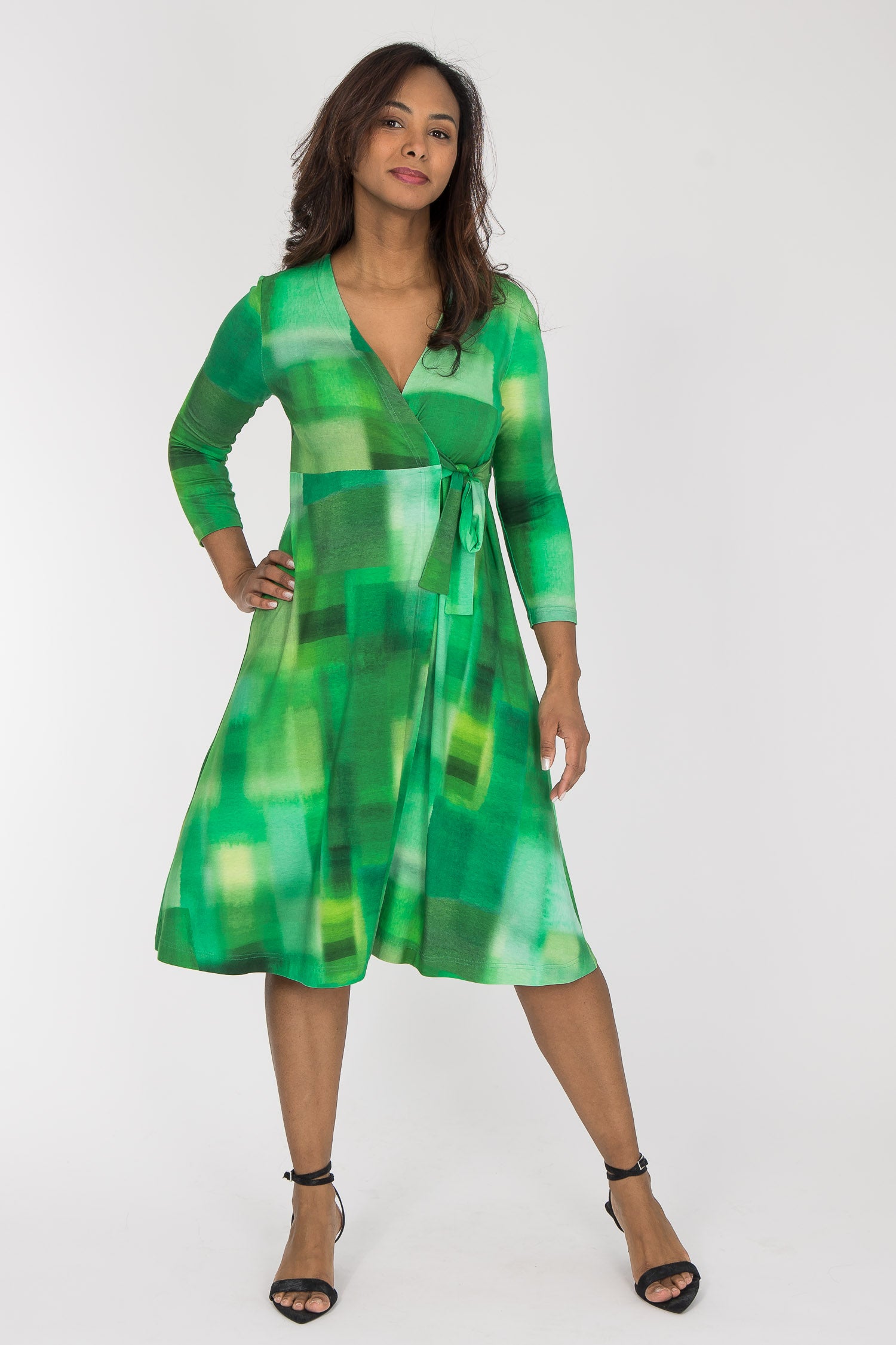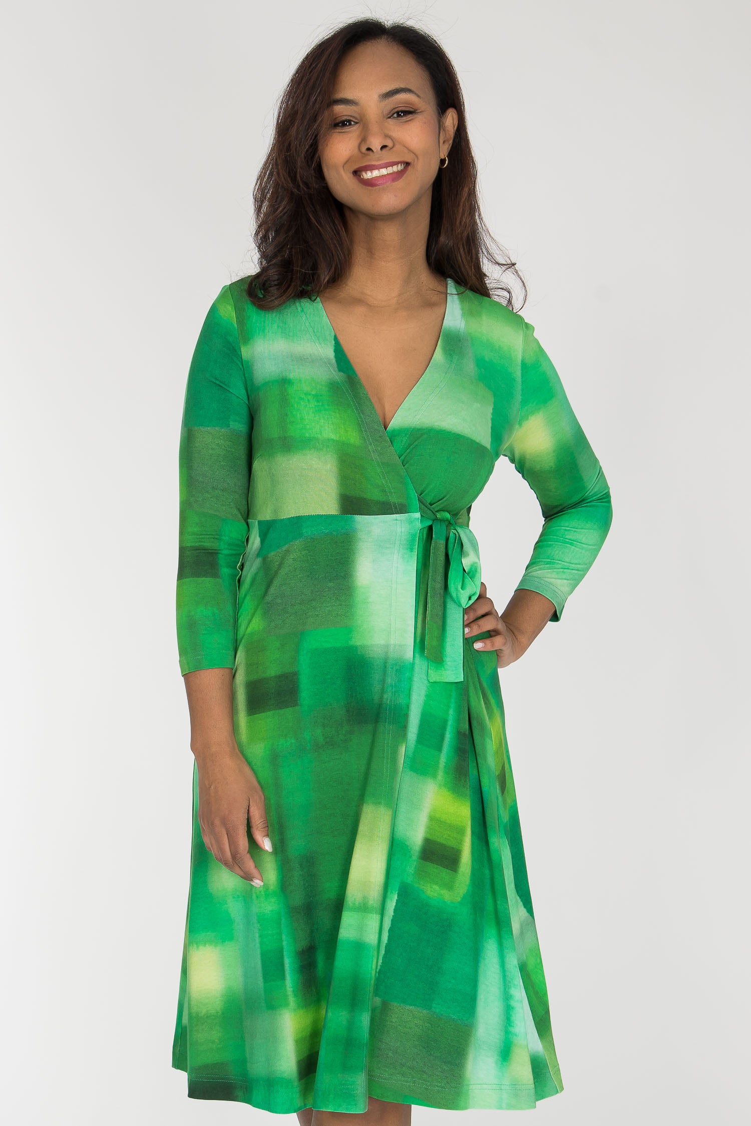 För att du ska kunna hitta den perfekta klänningslängden för dig, finns den här omlottklänningen i två varianter – en som når vaden och en som går till knäet.