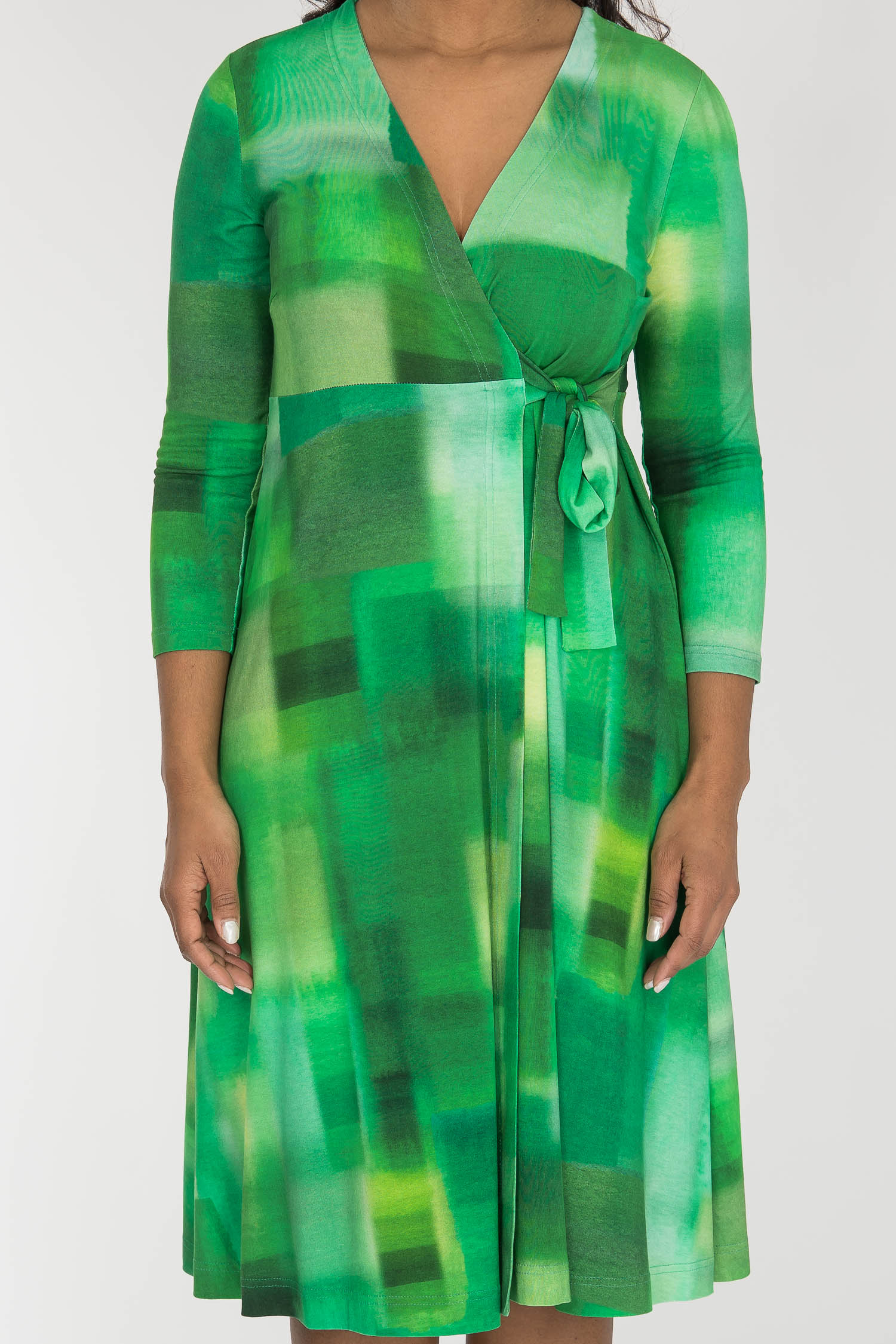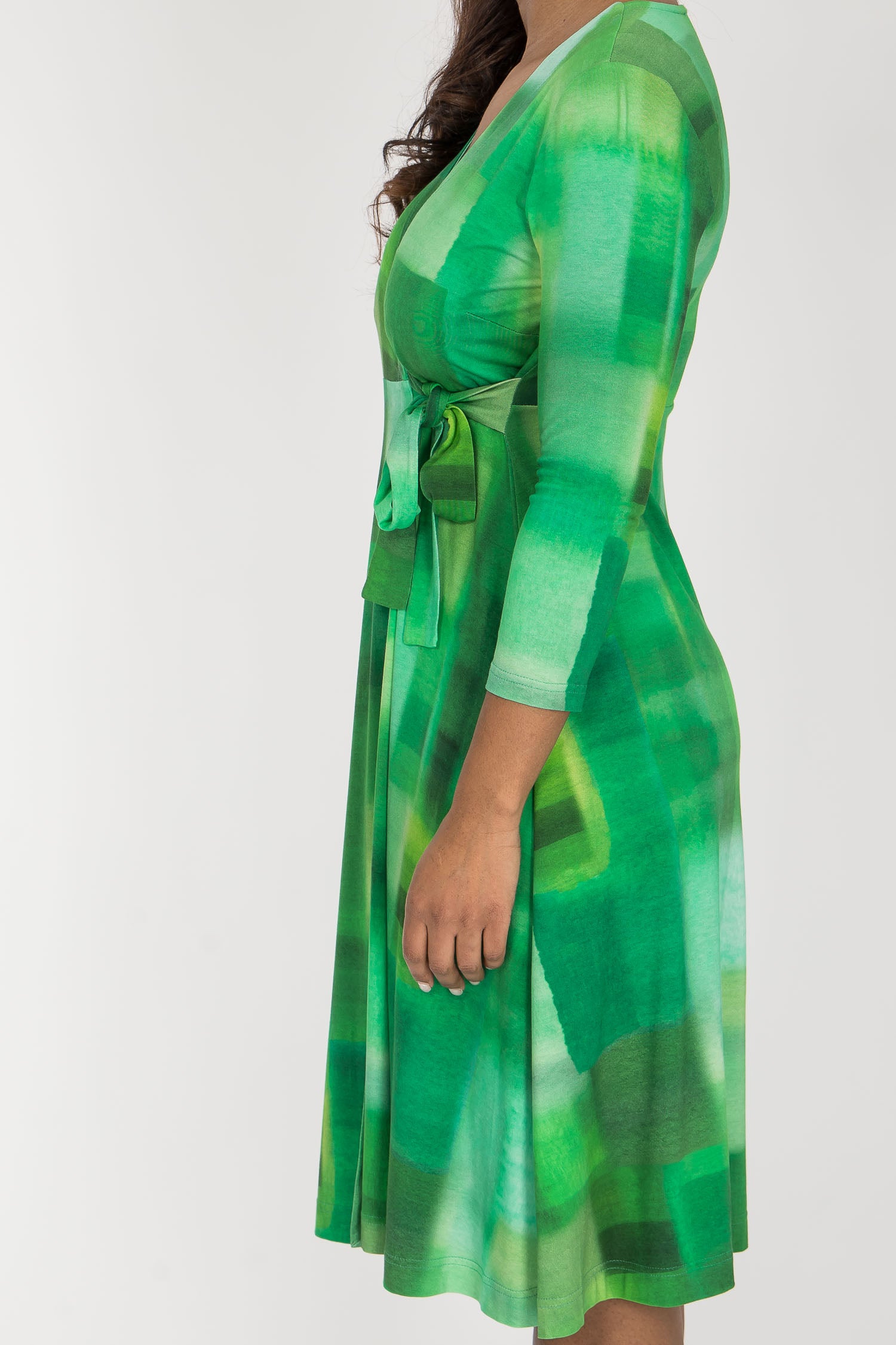 Loose fit short wrap jersey dress - Green