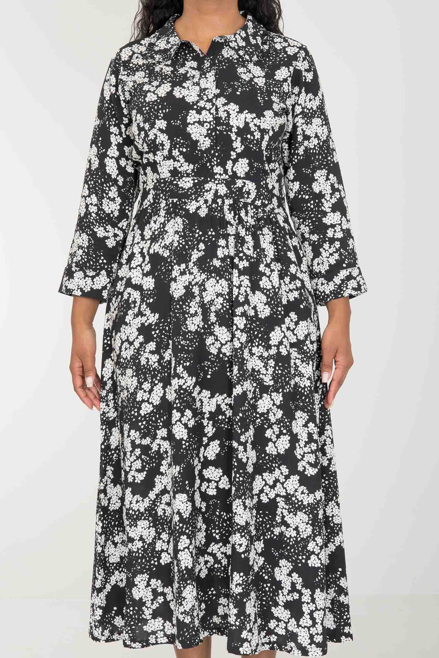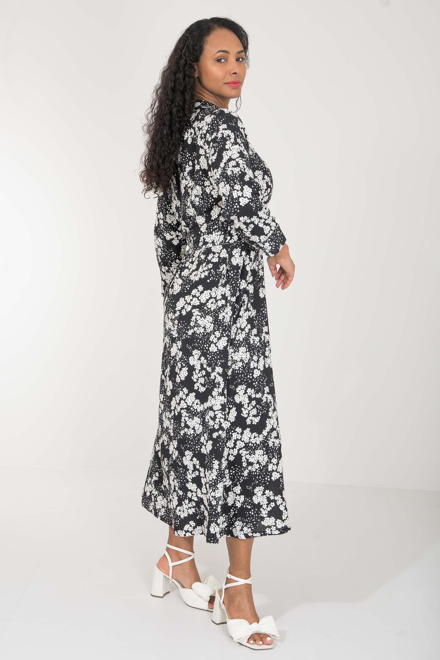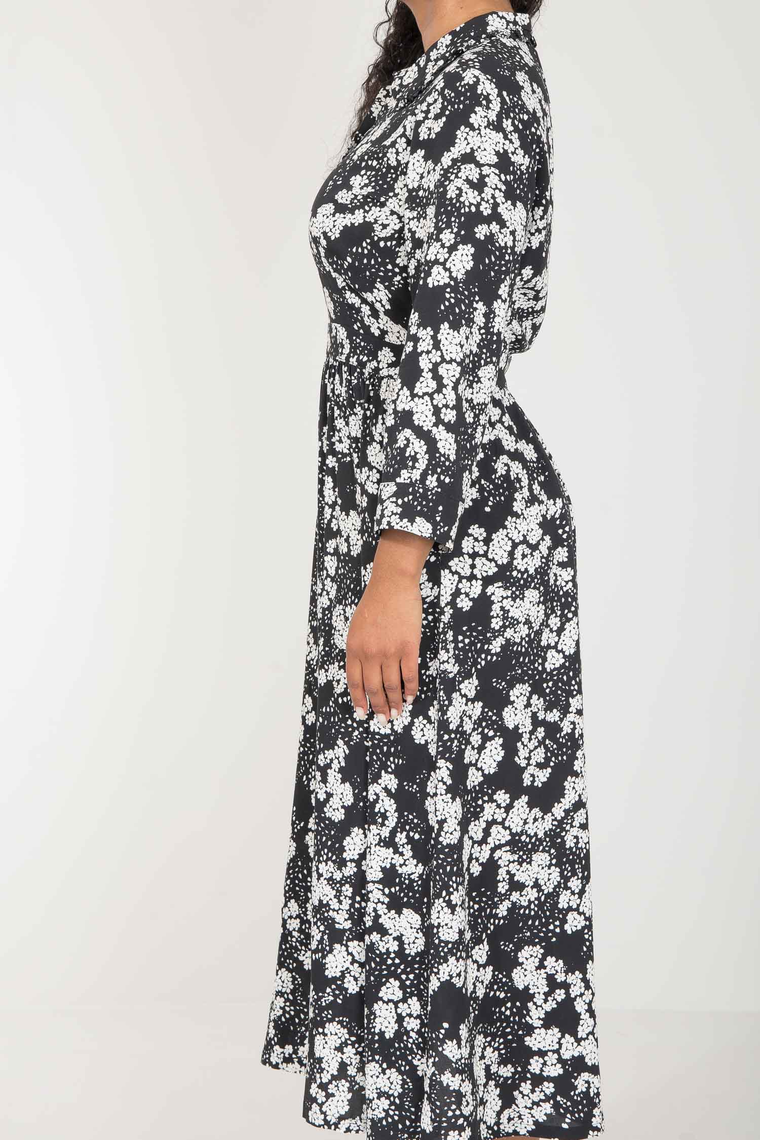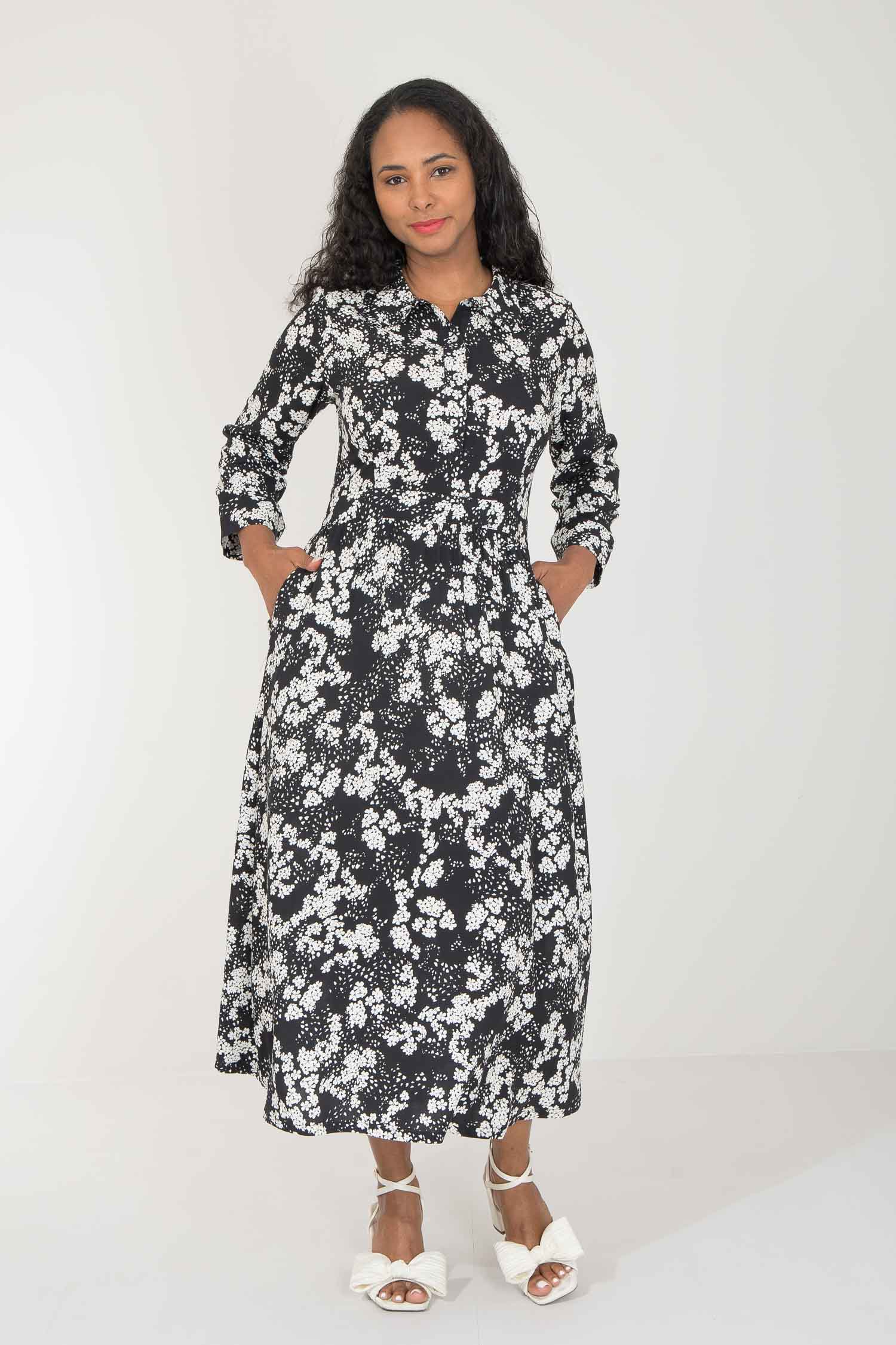 Pure EcoVero woven viscose midi dress - Black - Svart-vit mönstrad, vadlång skjortklänning