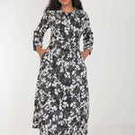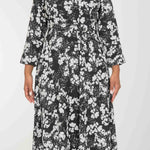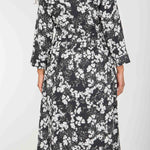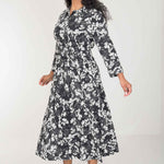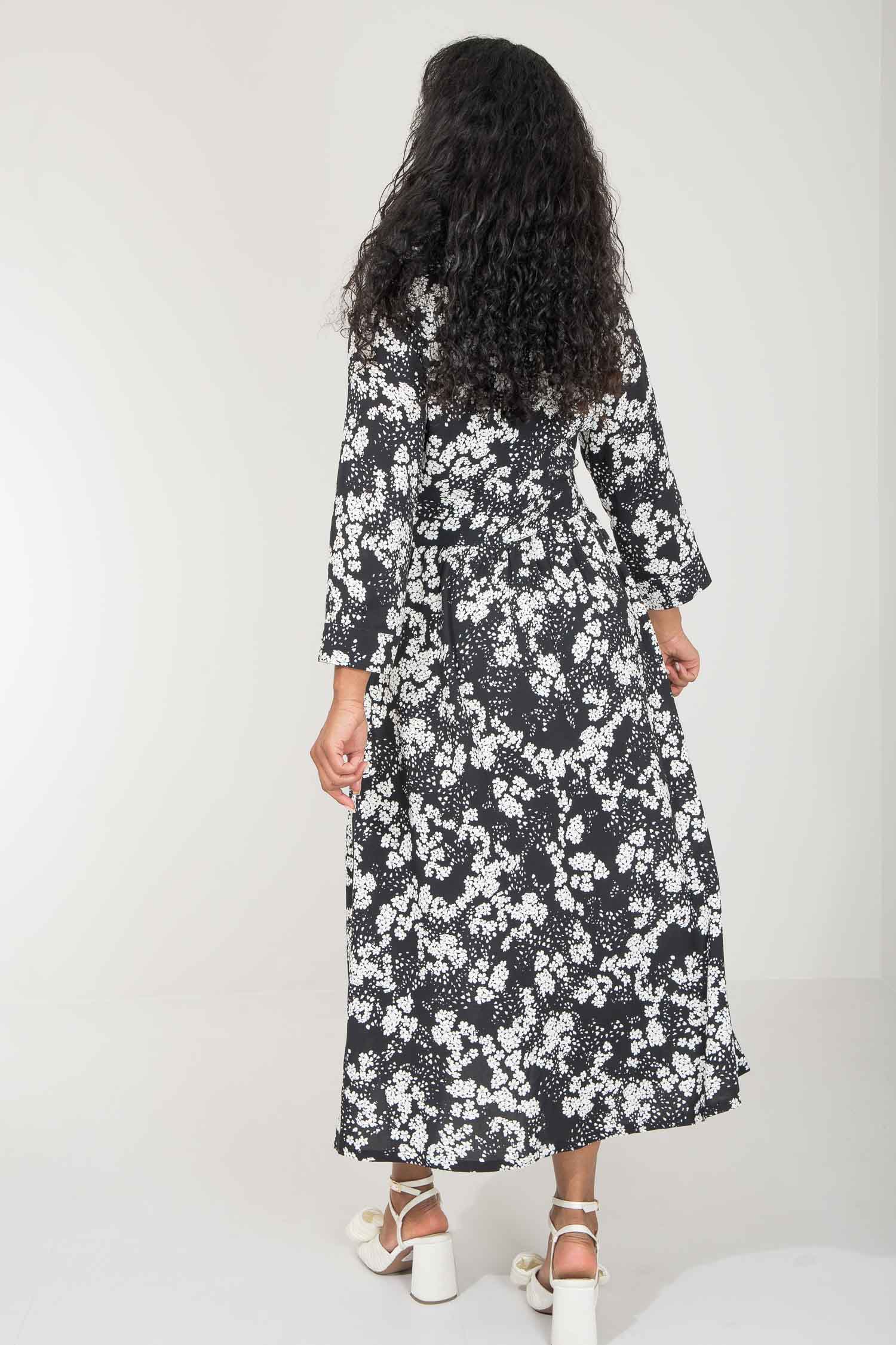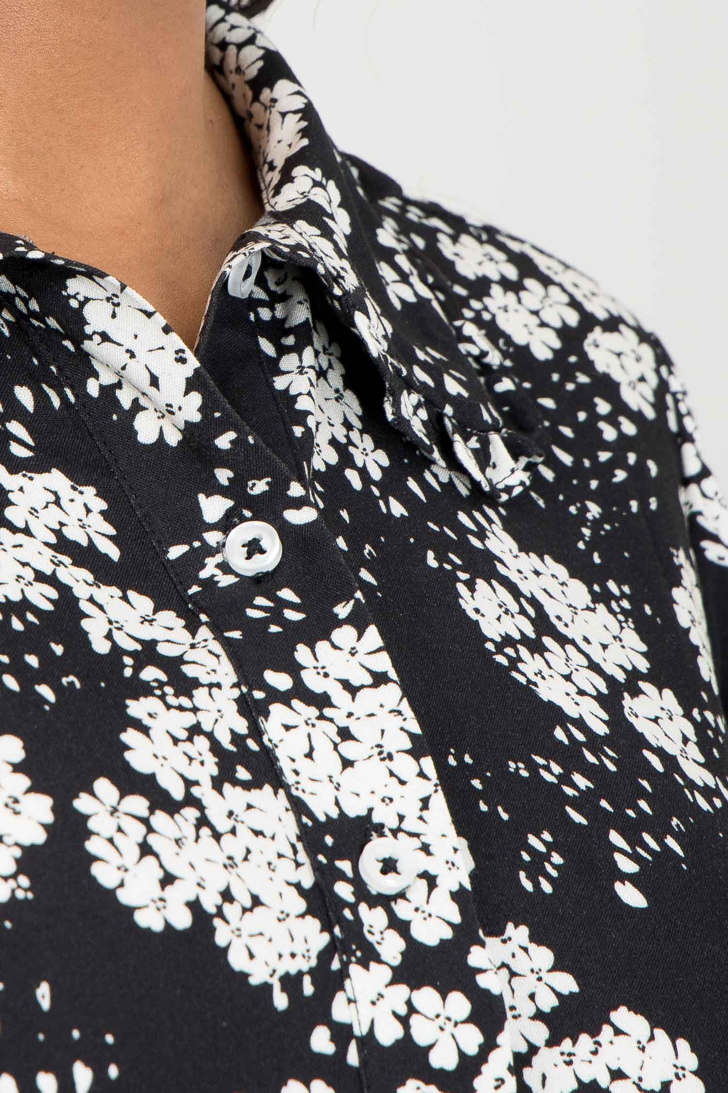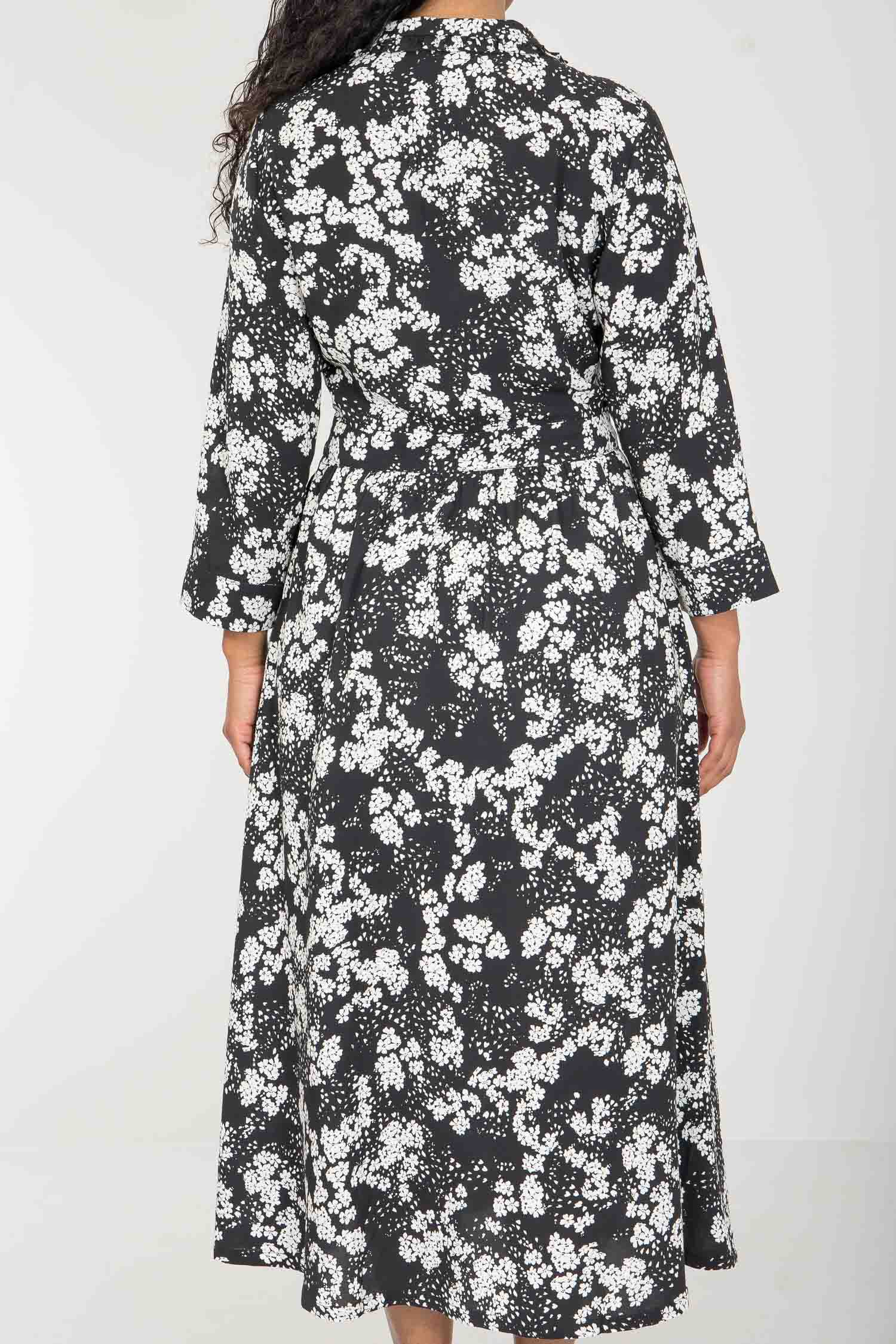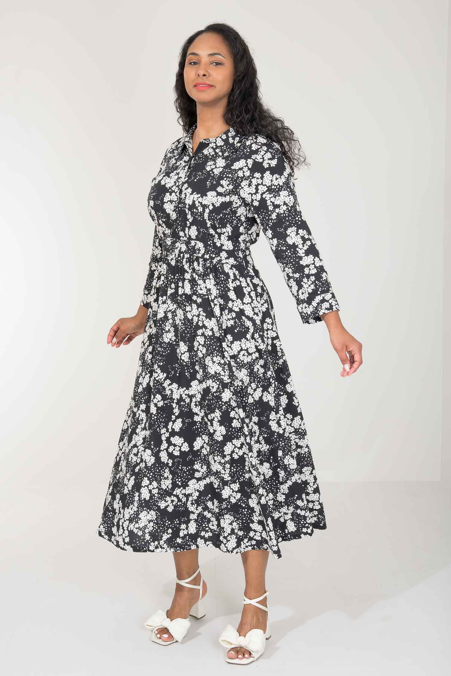 Pure EcoVero woven viscose midi dress - Black - Svart-vit mönstrad, vadlång skjortklänning